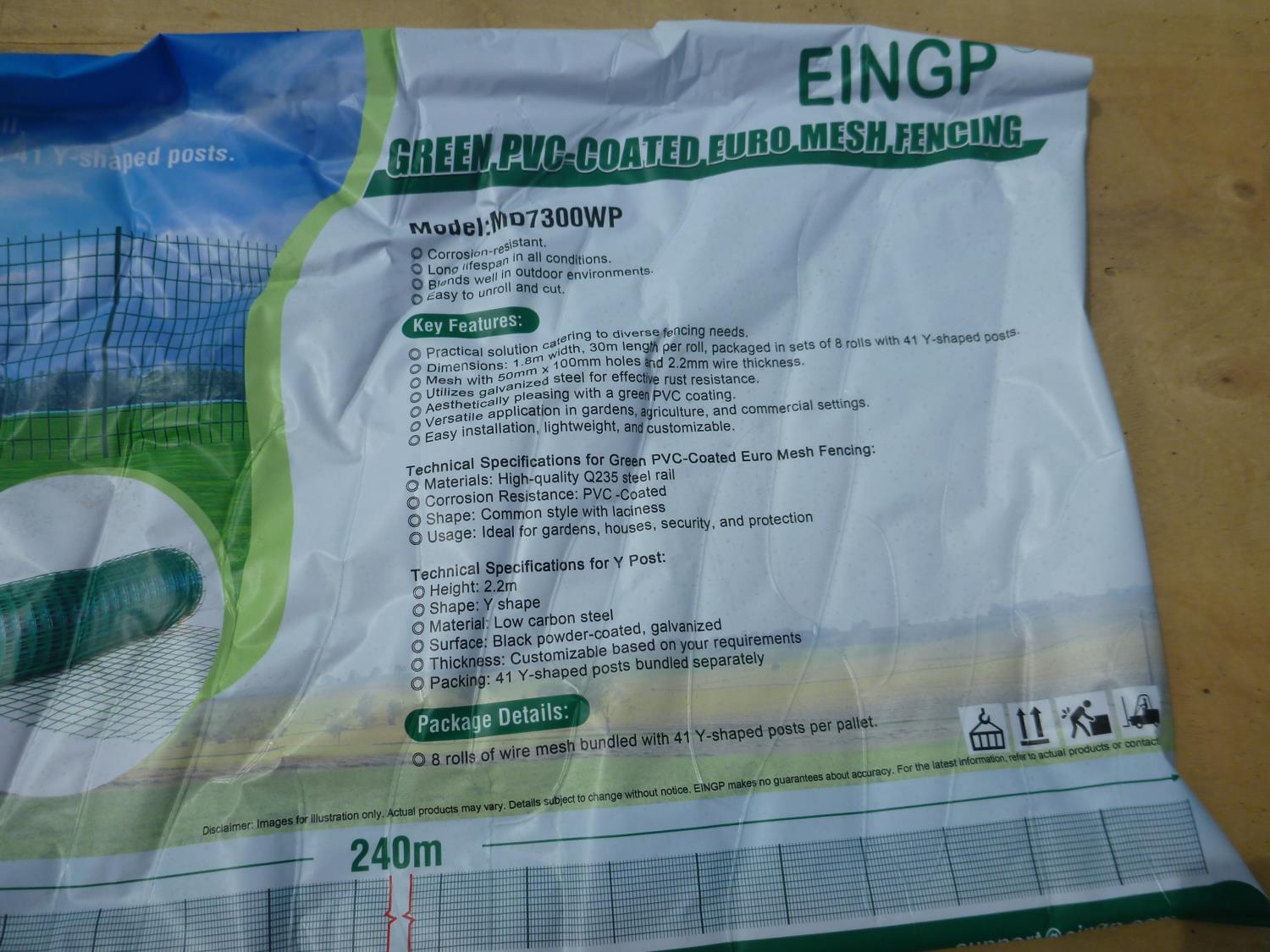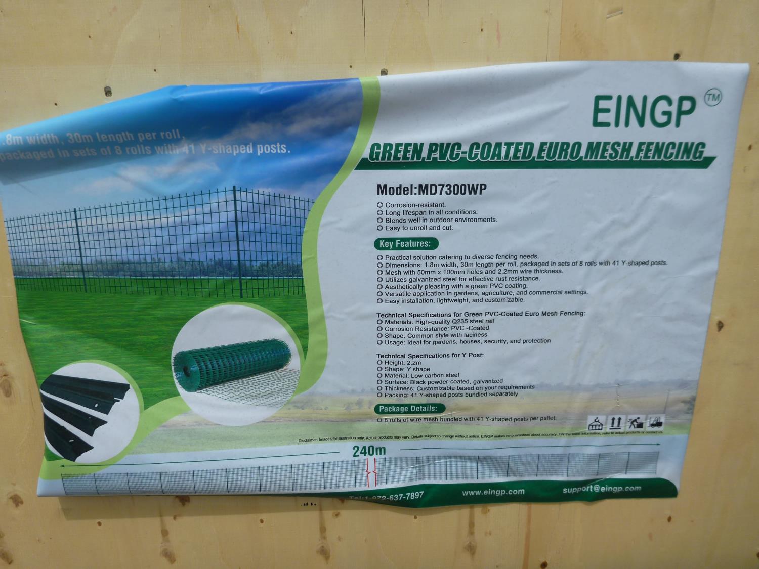 240 M total length, 8 rolls @ 30 m each, 41 Y-shaped posts