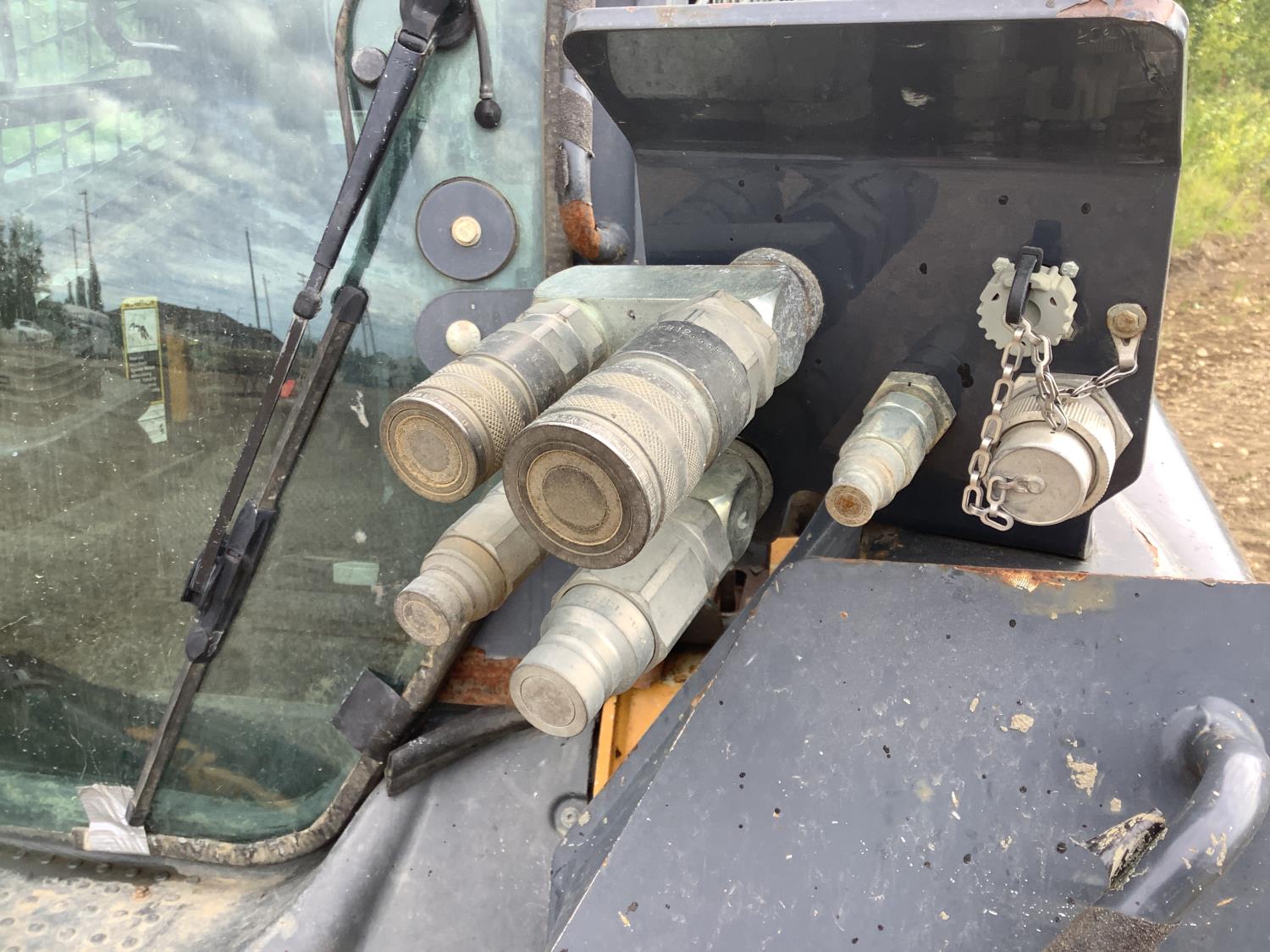 Enclosed cab, smooth bucket, 2 auxiliary hydraulics, rear weights