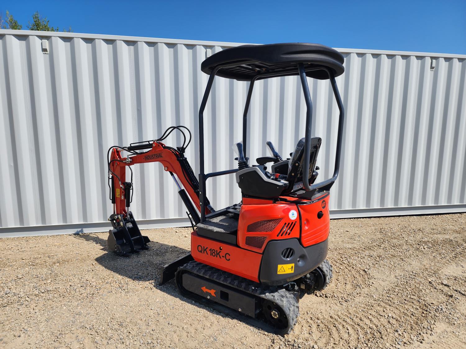 Open station, Kubota diesel engine, canopy, 15 inch dig bucket, hydraulic thumb, 2 Ft 8 inch stick, backfill blade, 7 inch rubber tracks
