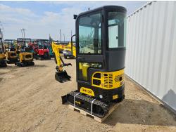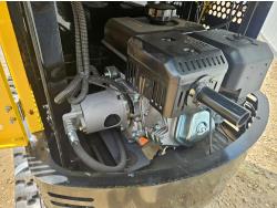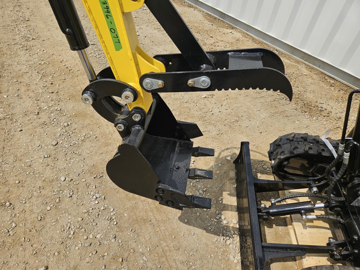 Enclosed cab, gas engine, 15 inch dig bucket, manual thumb, backfill blade, 7 inch rubber tracks