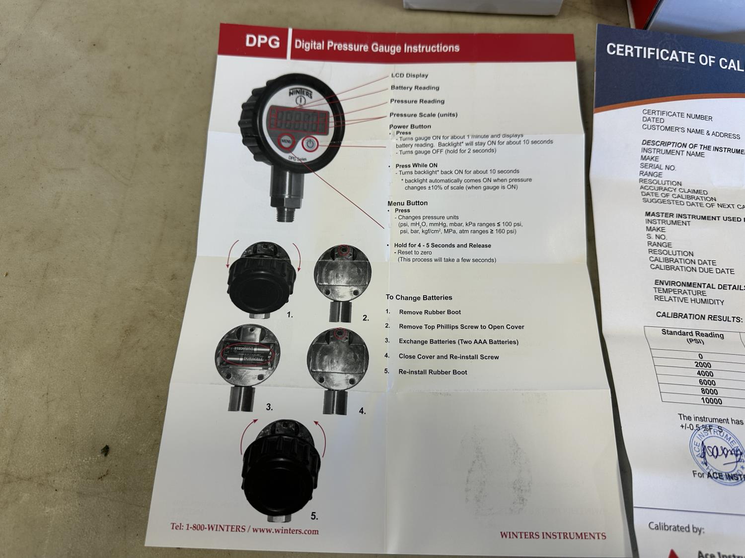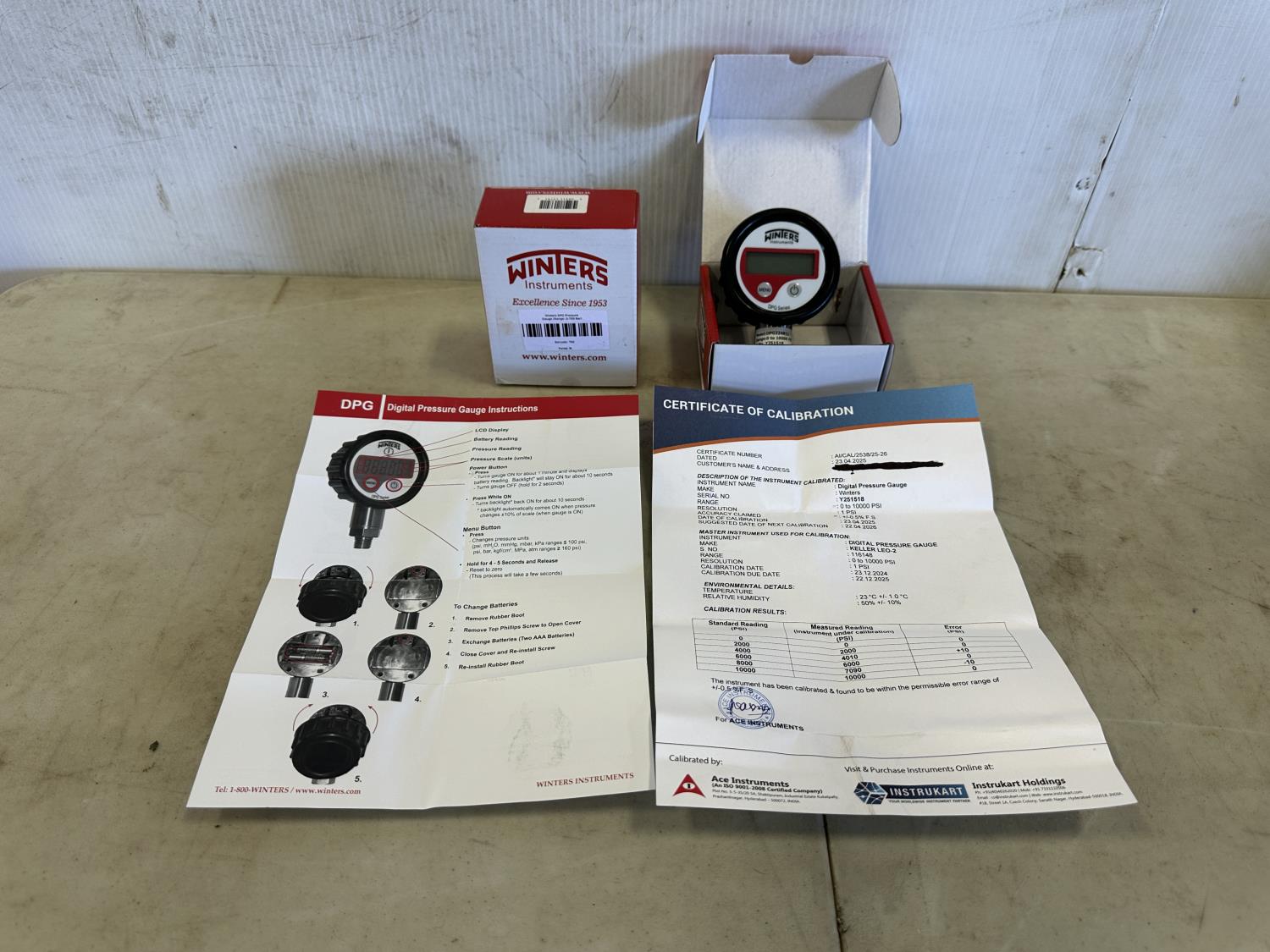 5161 Winters 0-10,000 PSI Digital Gauges with Certificates (Unused)