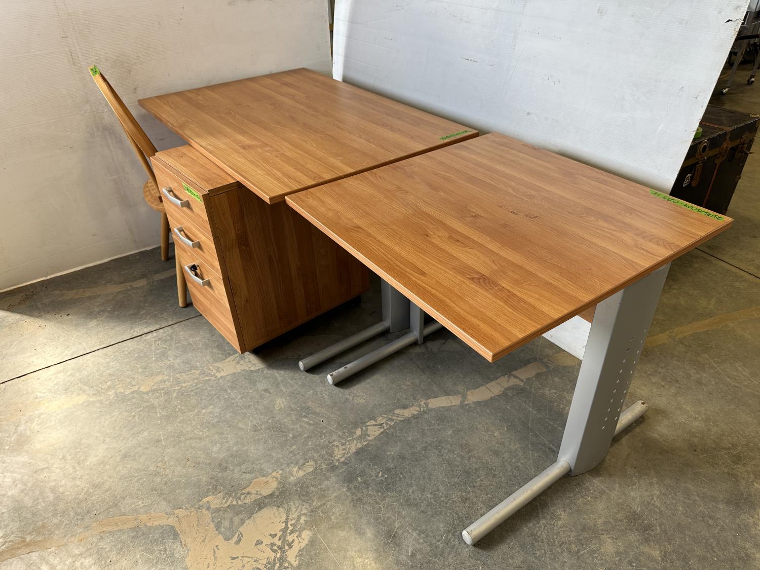 5386 (2) Desks, Chair and 3 Drawer Wheeled Cabinet