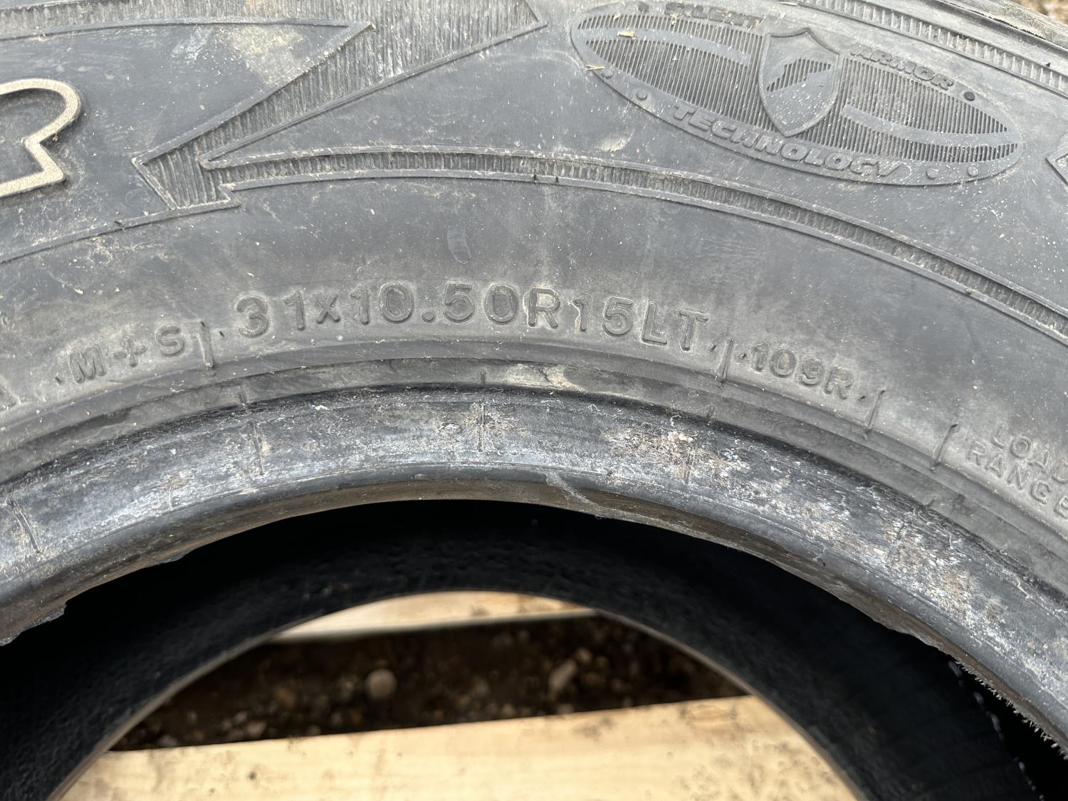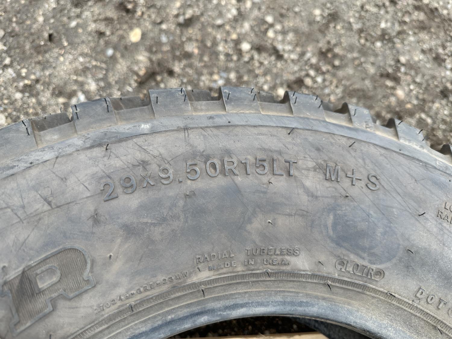 (1) 29x9.5R15, (1) 215/75R16, (1) 31x10.5R15