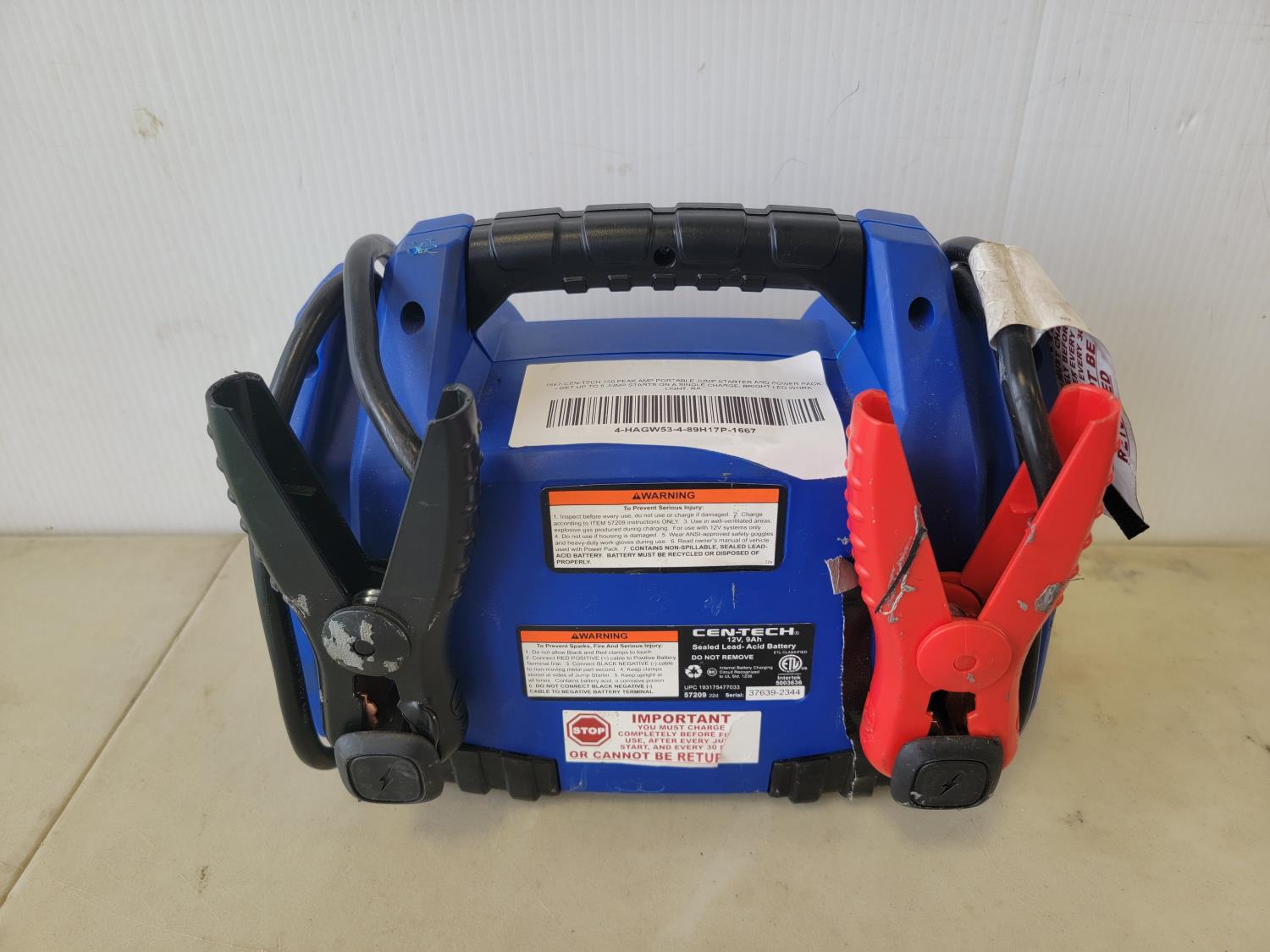 5049 Cen-Tech 750 Peak Amp Portable Jump Starter and Power Pack