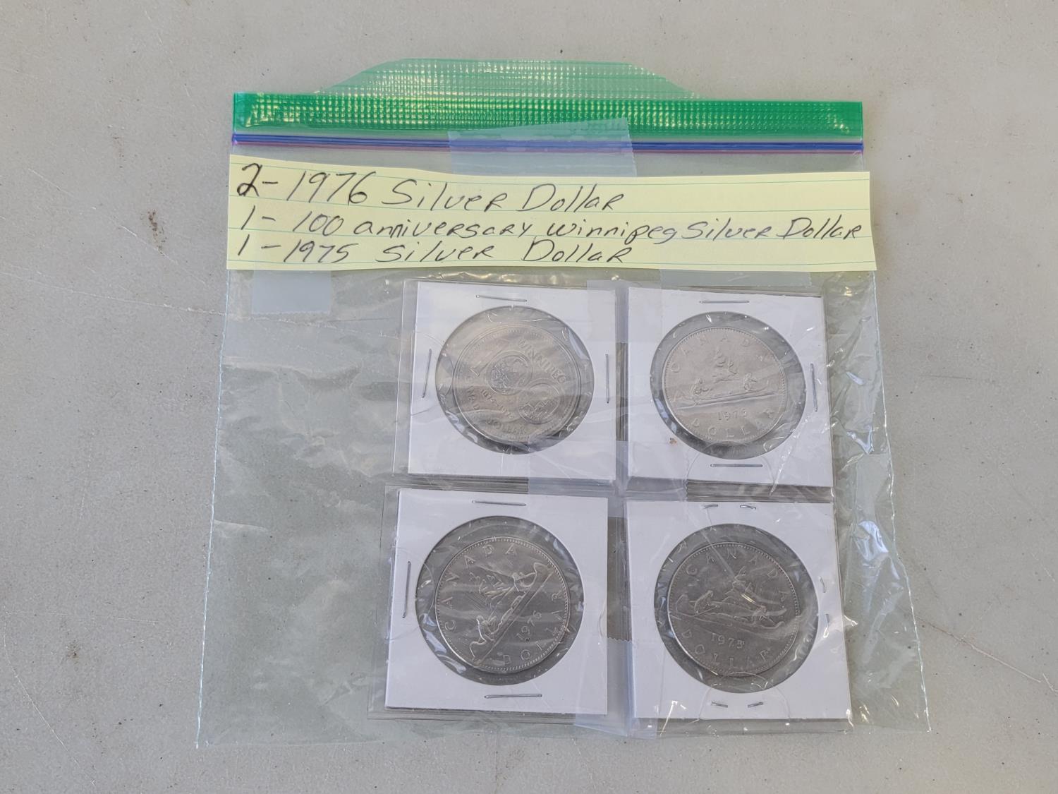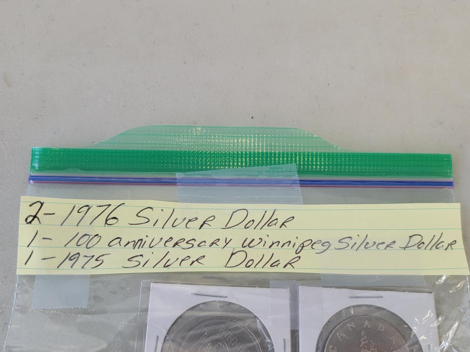 5036 (2) 1976 Silver Dollars, 1975 Silver Dollar and 100 Year Winnipeg Anniversary Silver Dollar