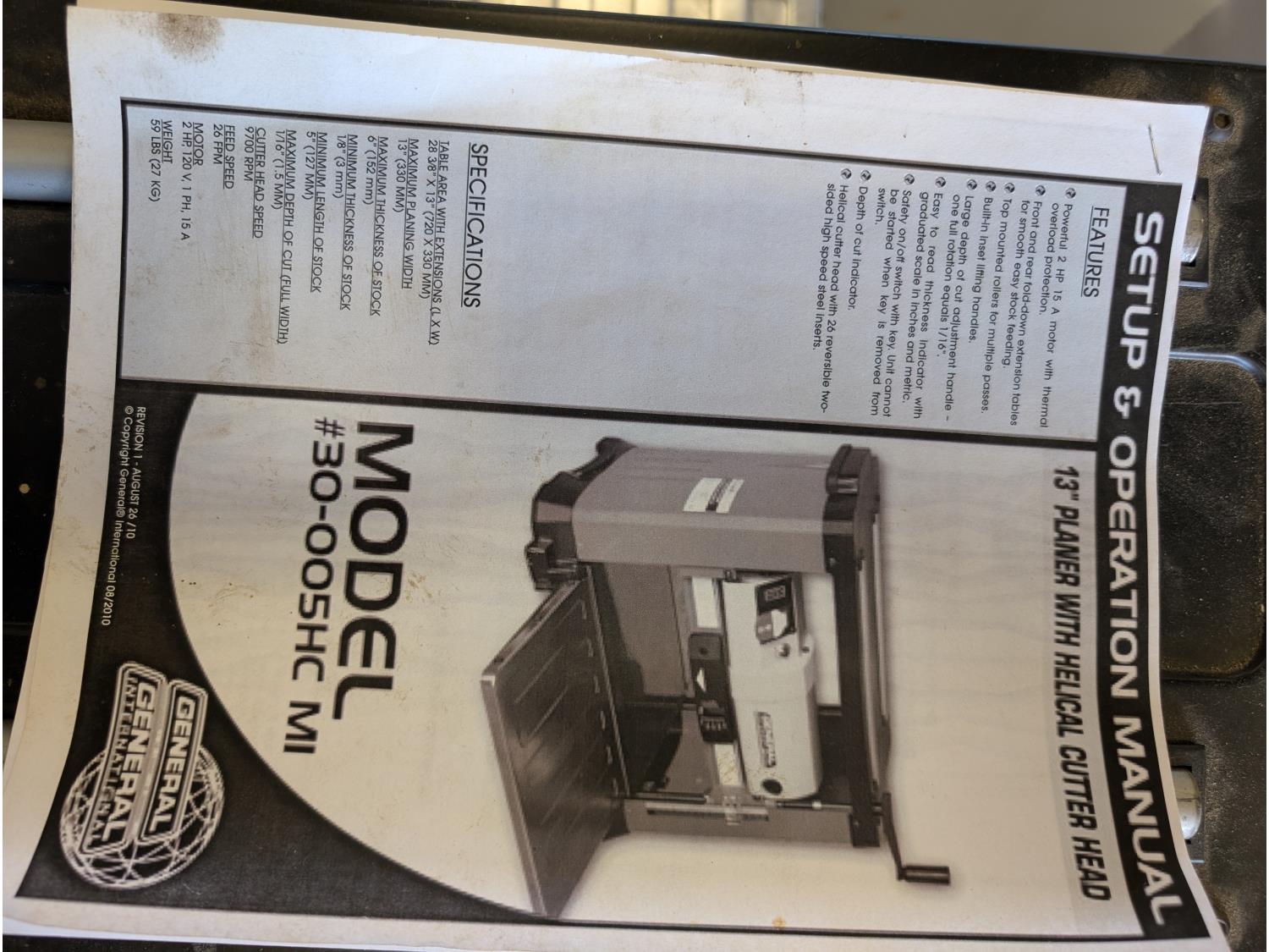 5262 General 13 Inch Planer