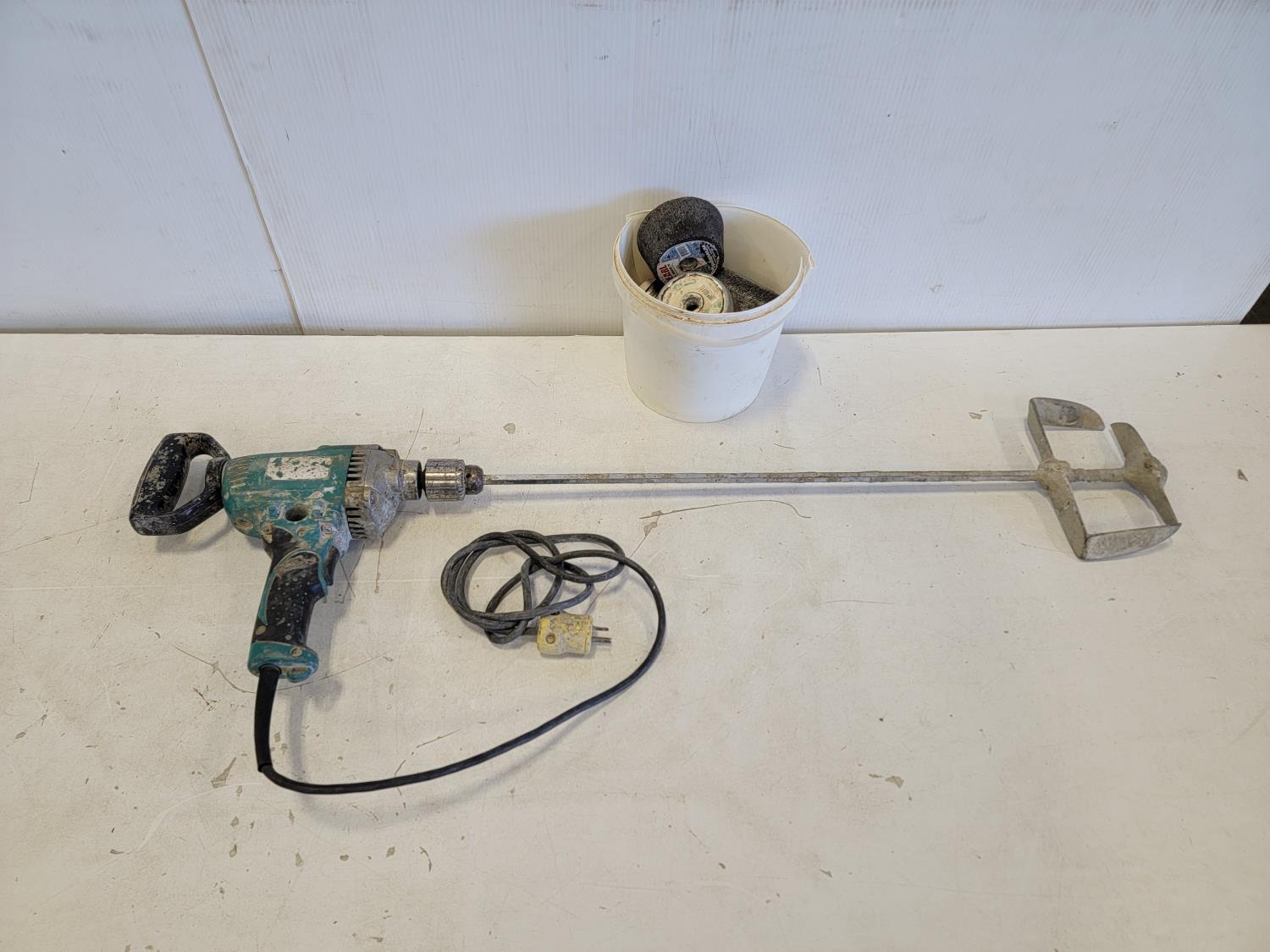 5443 Makita Drill with Mixing Paddle and (6) Grinding Cup Wheels