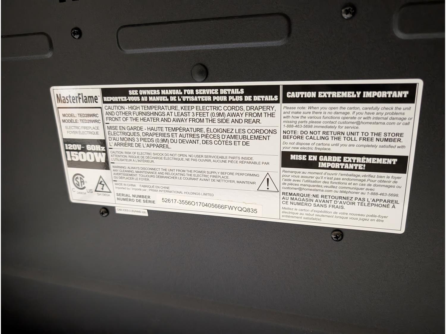 5490 MasterFlame Electric Fireplace Entertainment Stand