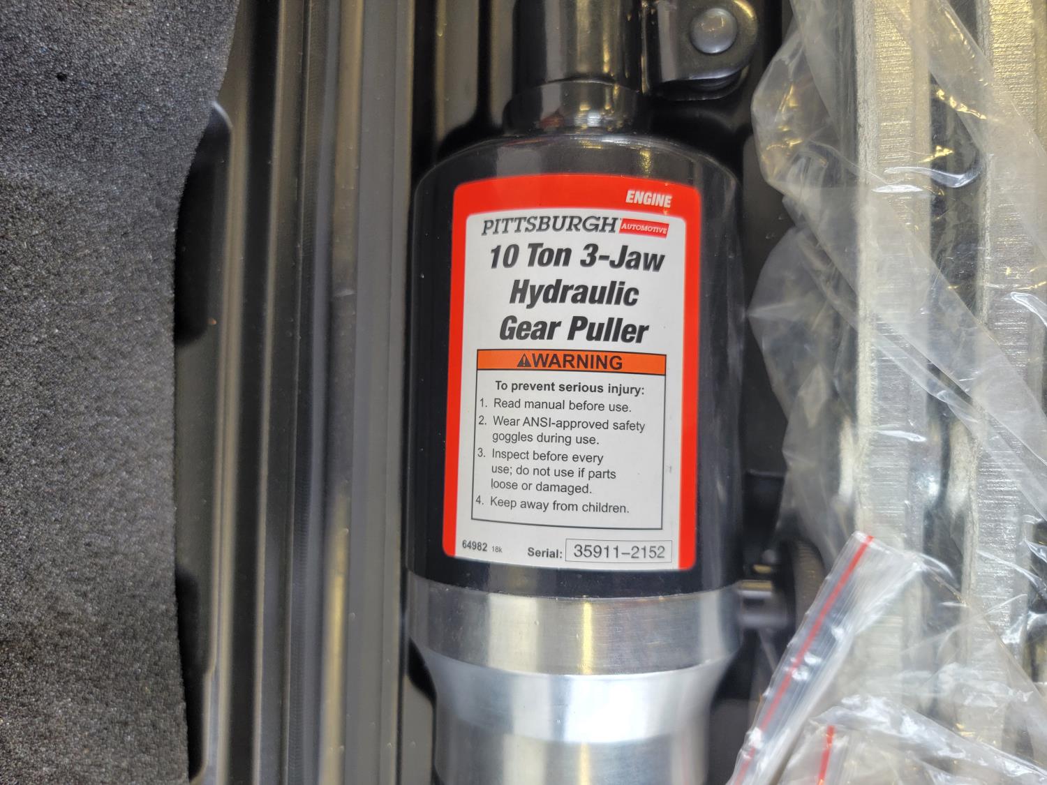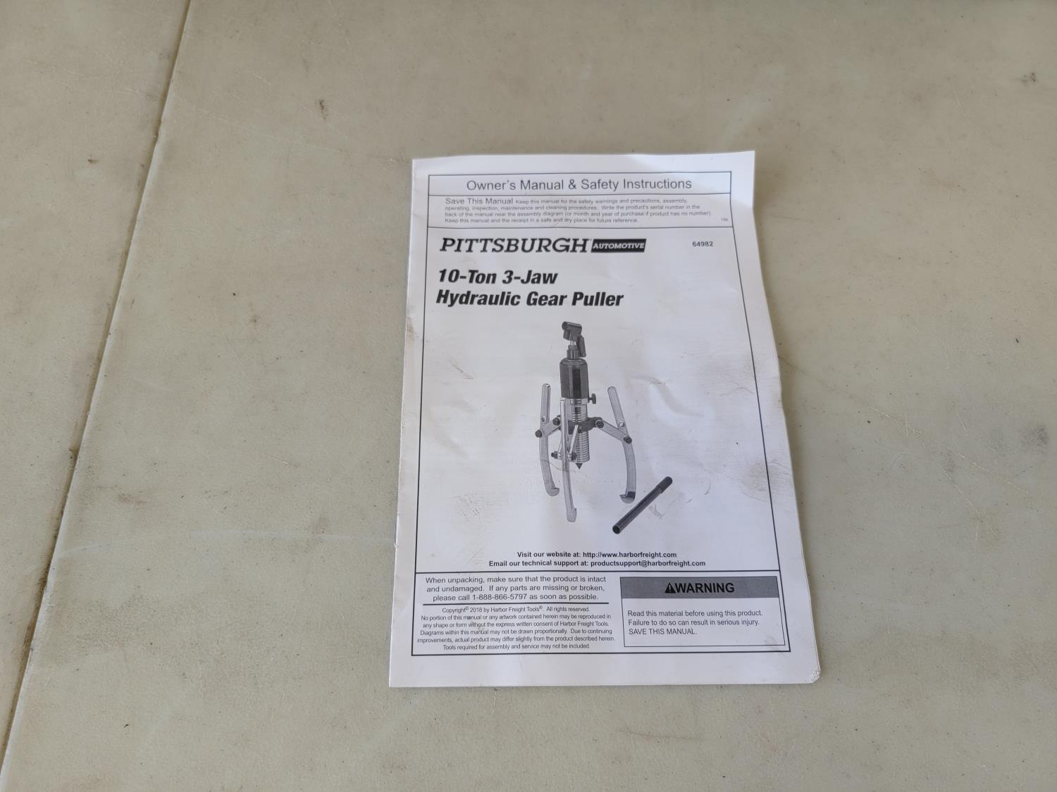 5052 Pittsburgh 10-Ton 3-Jaw Hydraulic Gear Puller