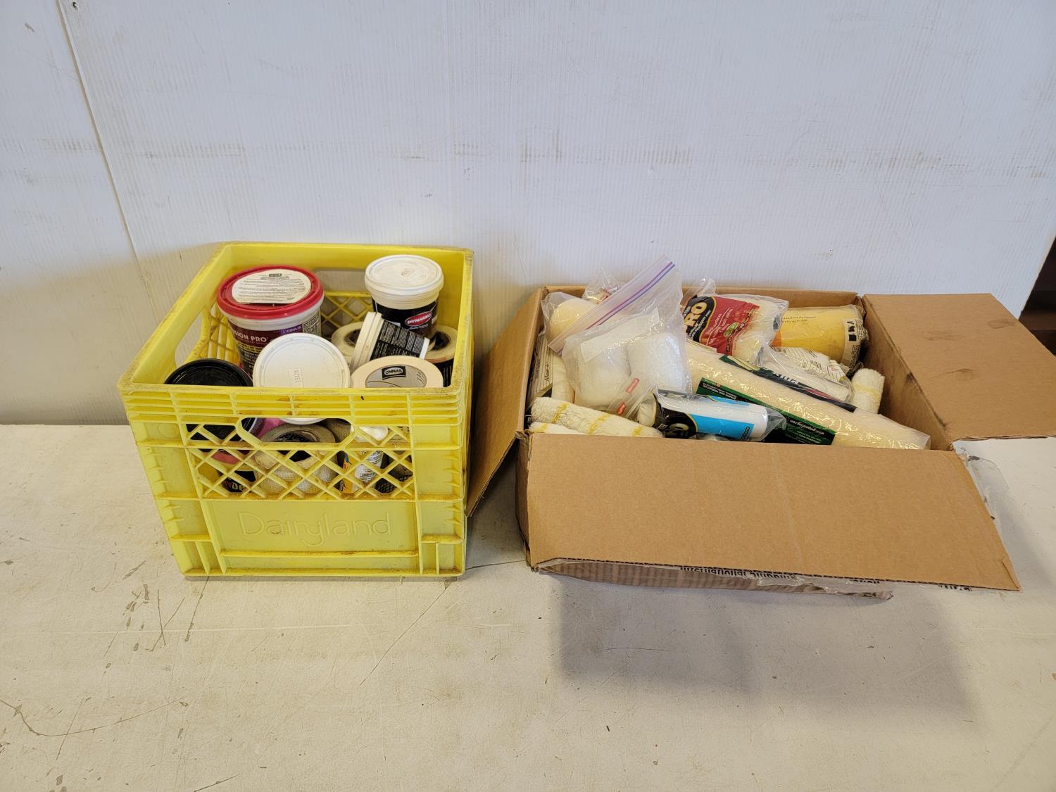 Spackling compound, drywall tape, roller refills