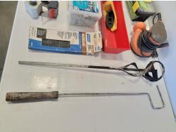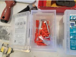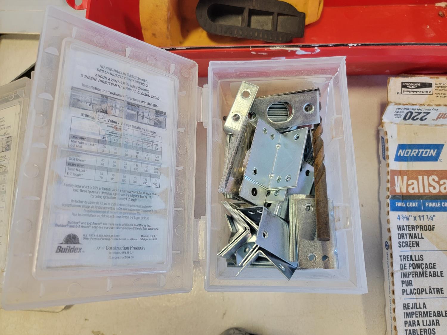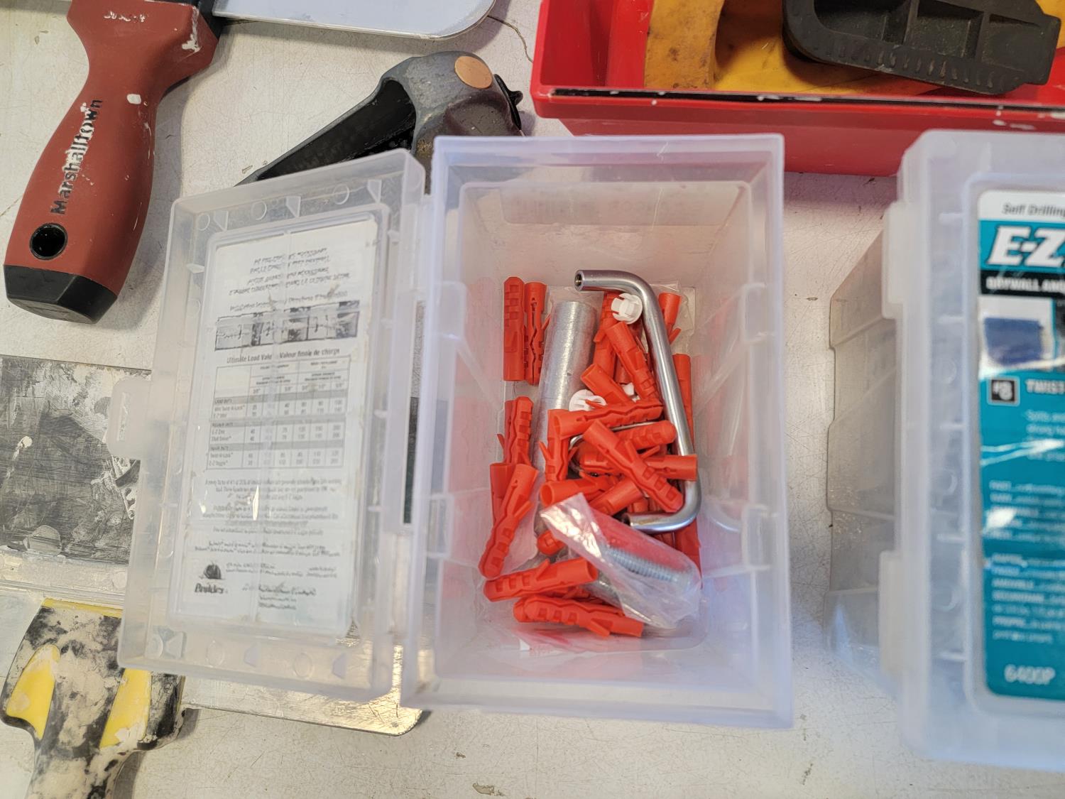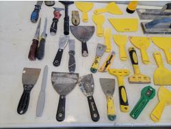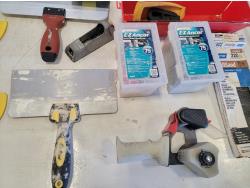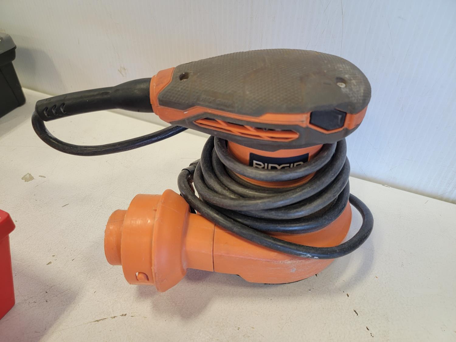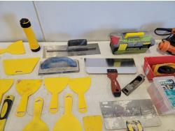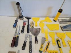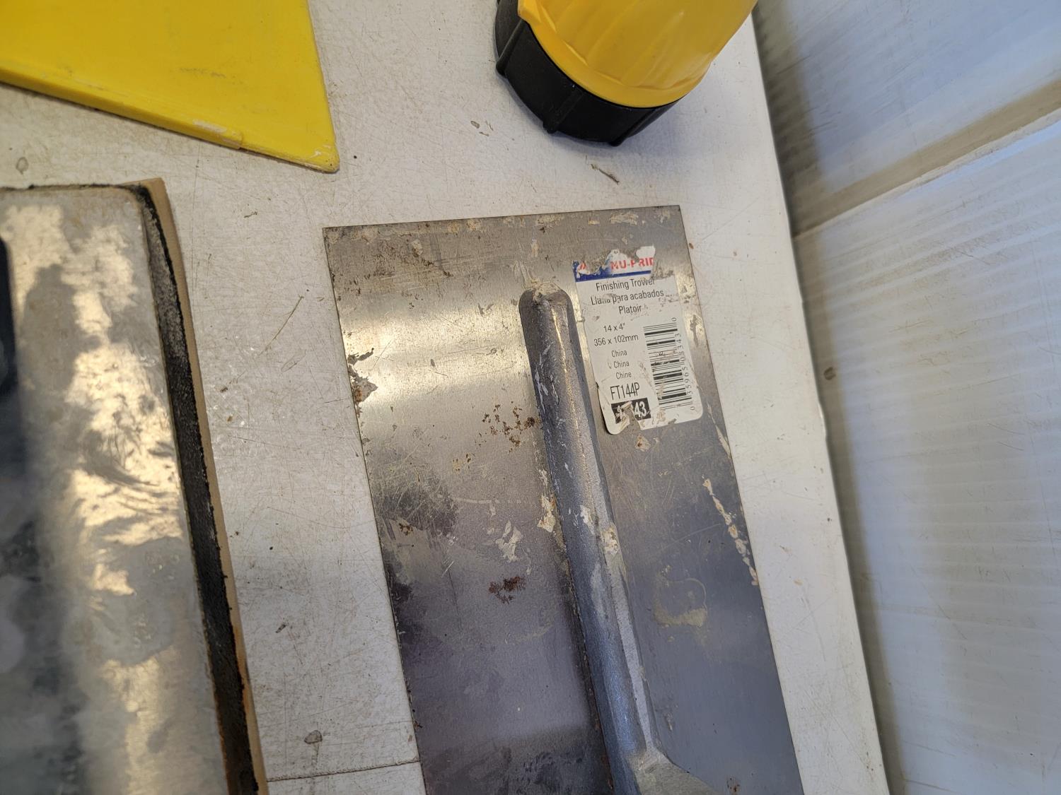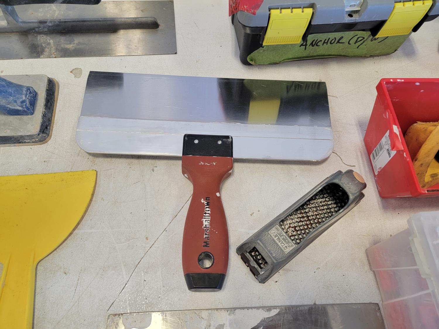 Ridgid palm sander, mixing paddle, anchors, putty knives, trowels
