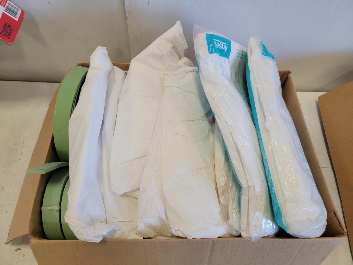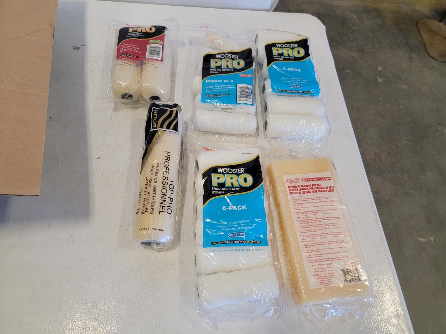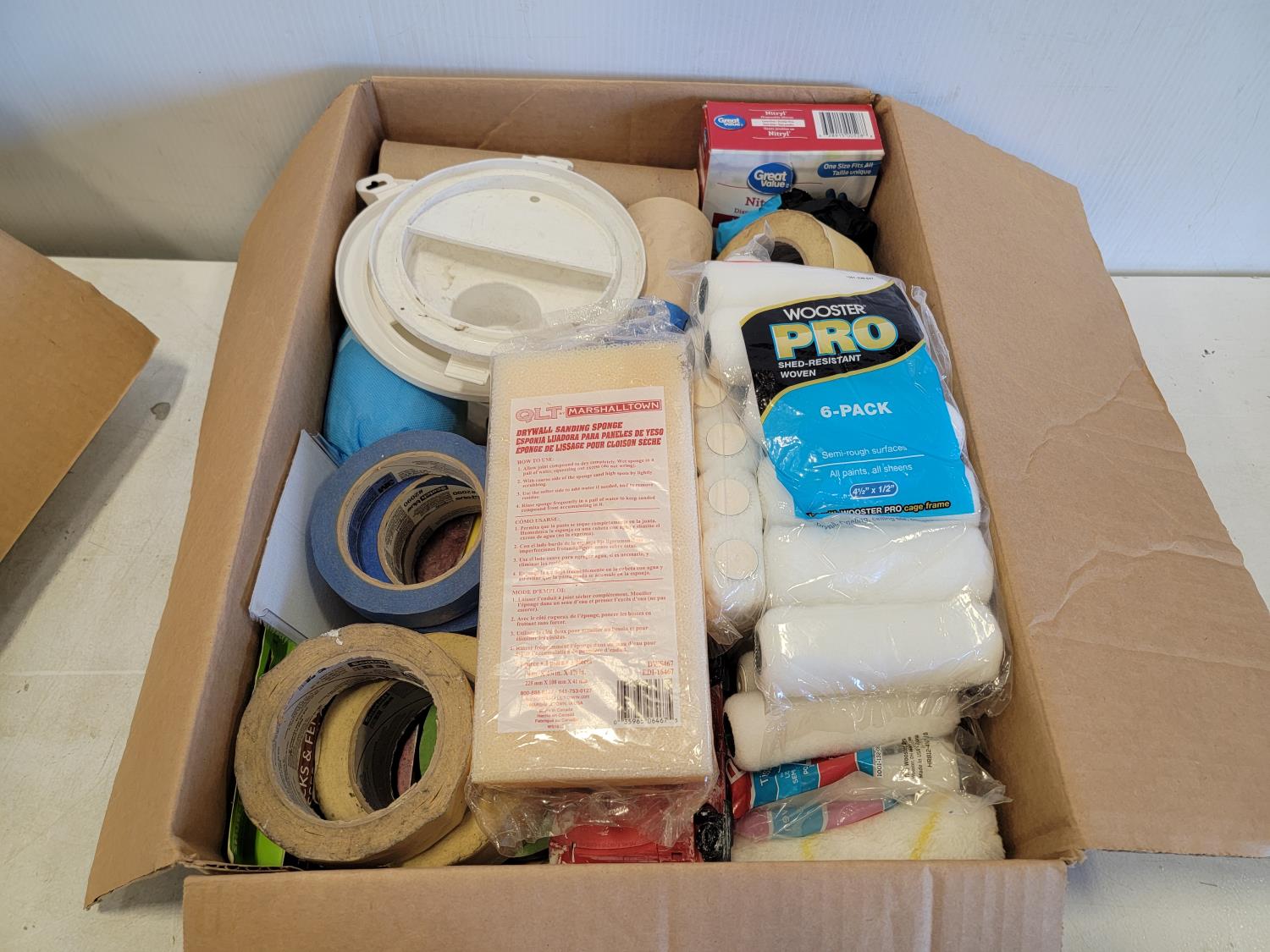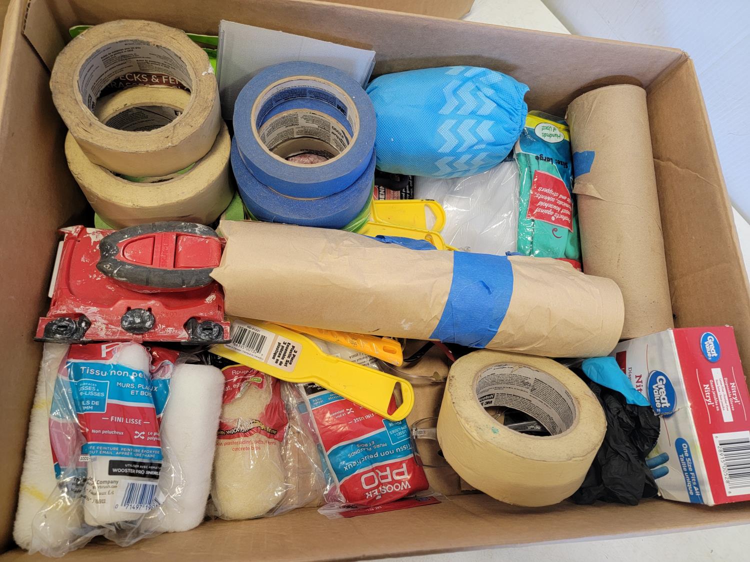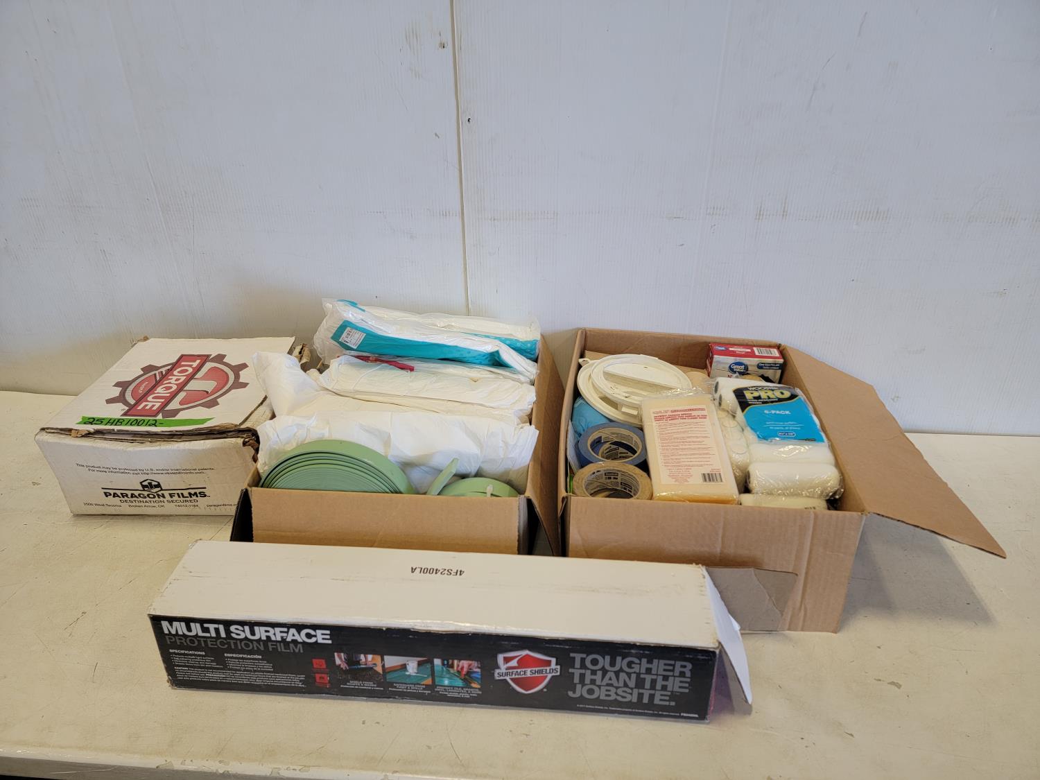 Multi surface protection film, hooded coveralls, roller refills, sanding sponges, painters tape