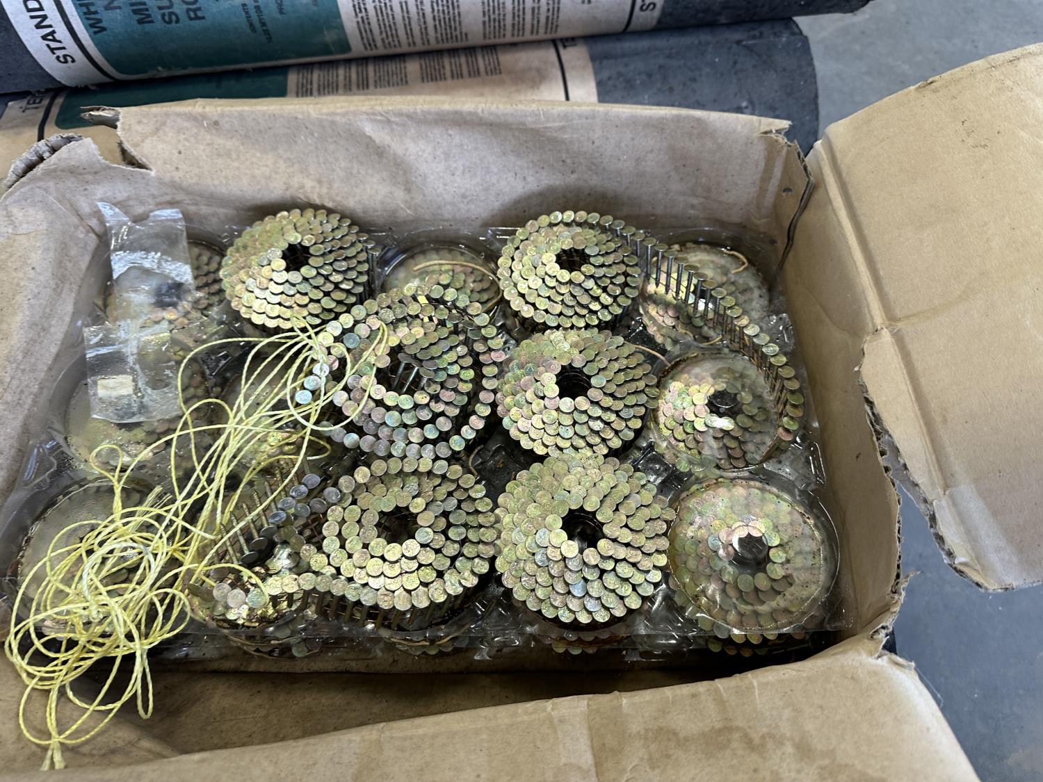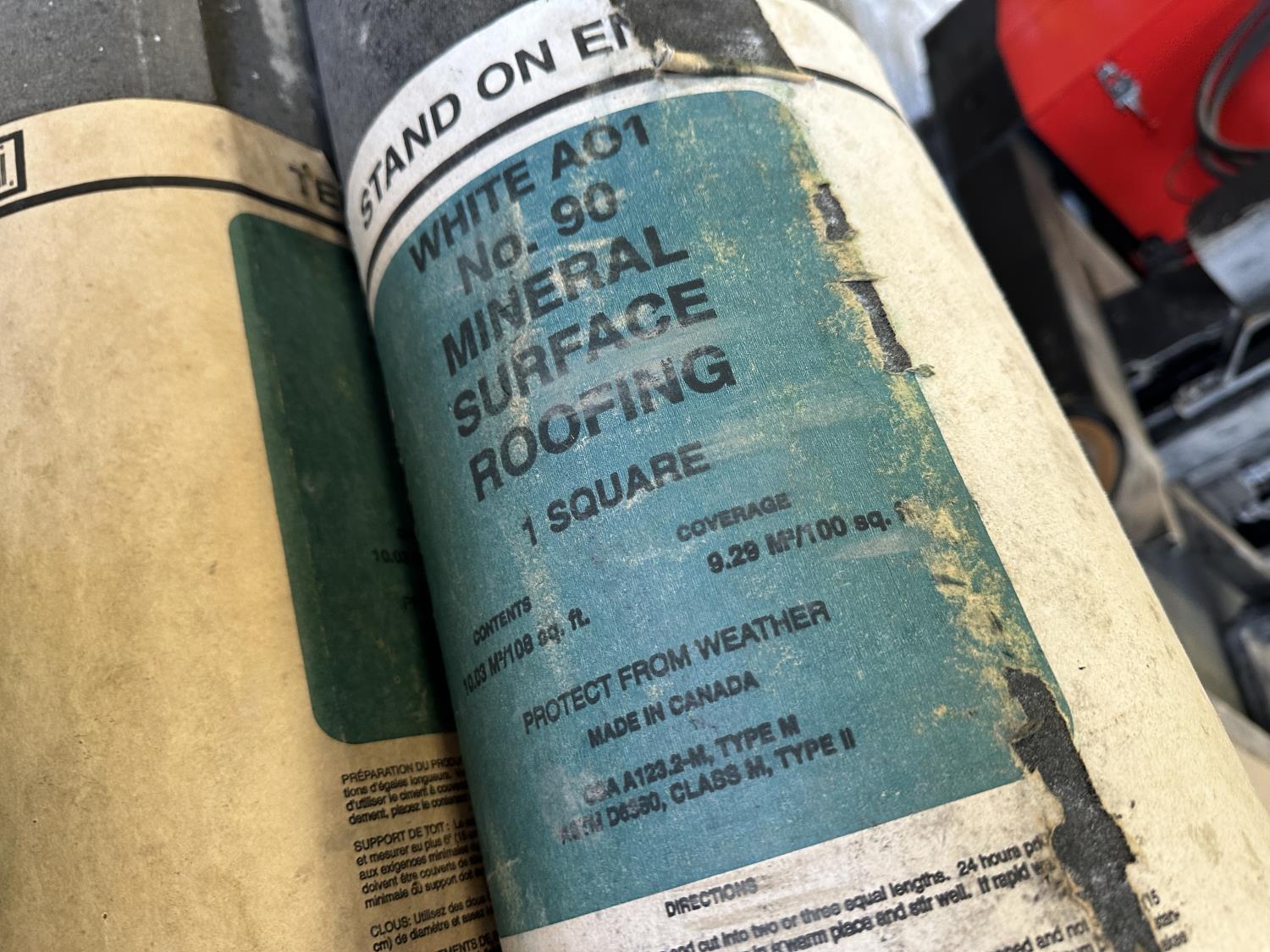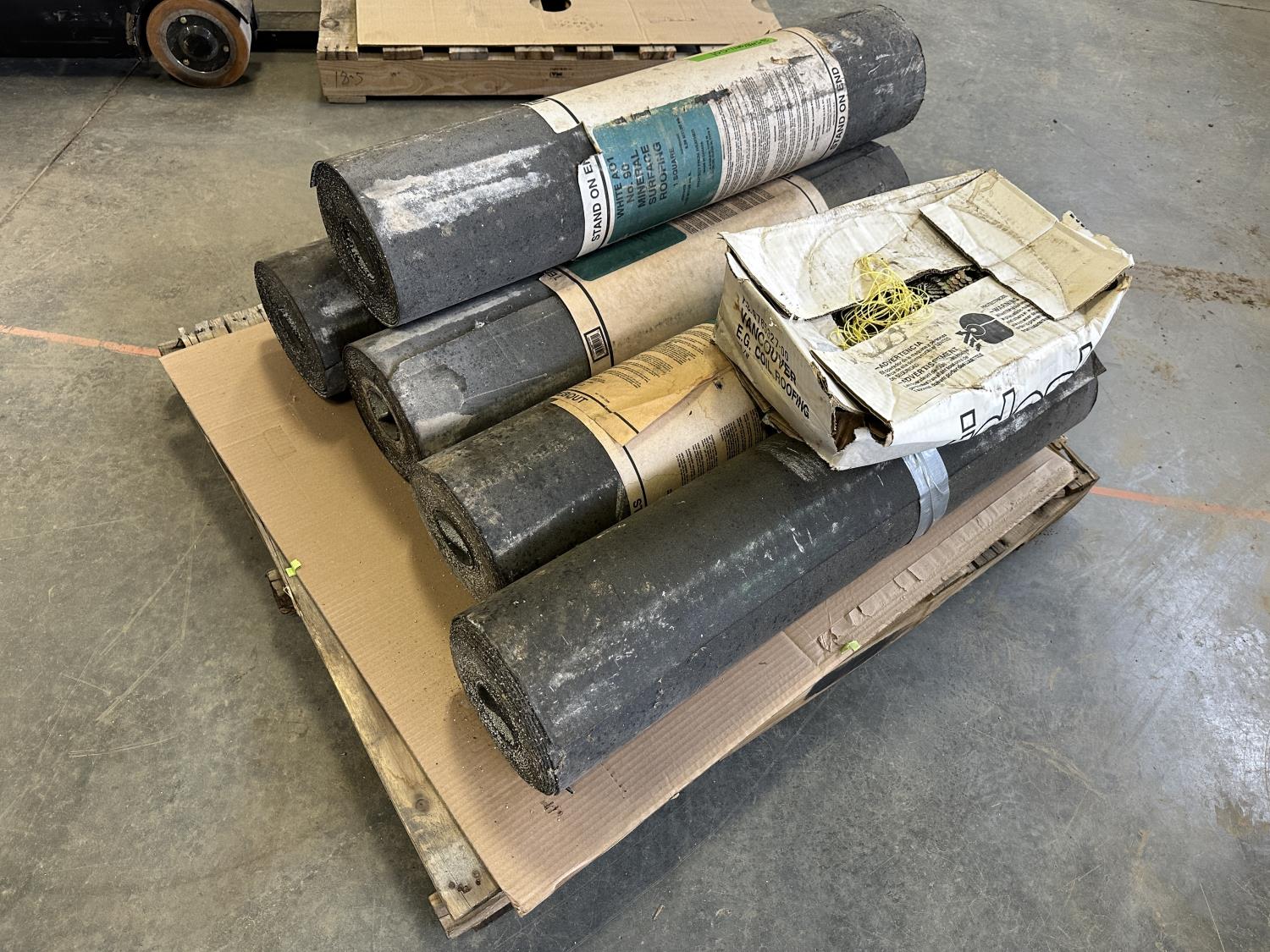 (5) rolls of white No. 90 mineral surface roofing and 1/2 box of 1-1/4 inch coil nails