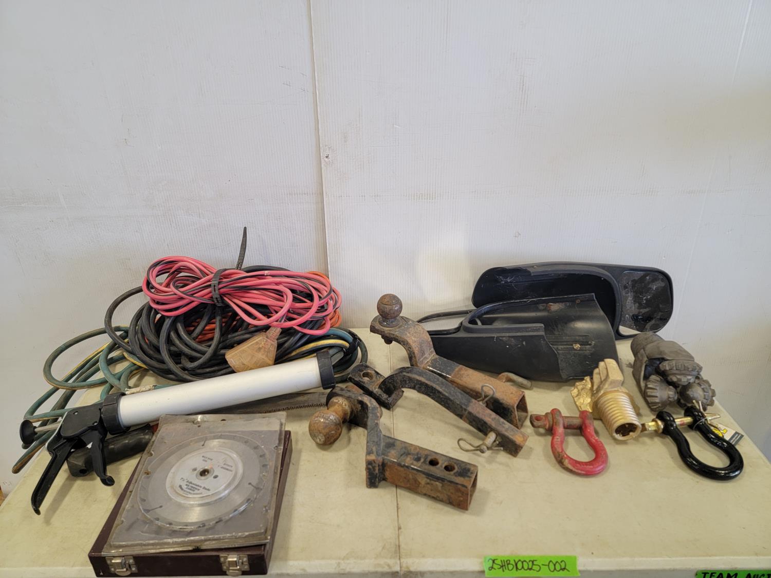 Hitches, shackles, saw blades, extension cords, mirror extensions
