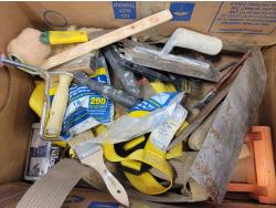 Paint brushes, trowels, shop fluids, paint rollers, Bostitch air nailer