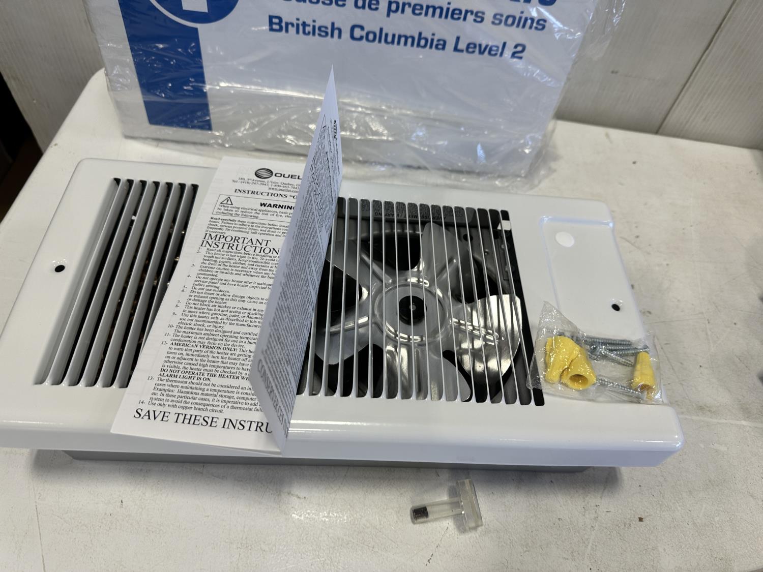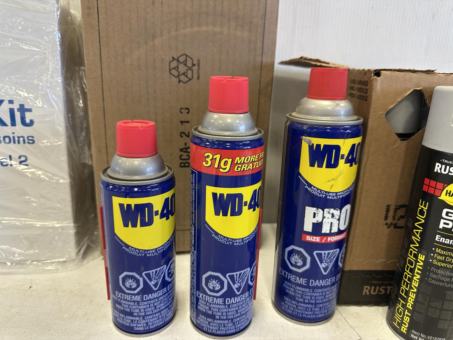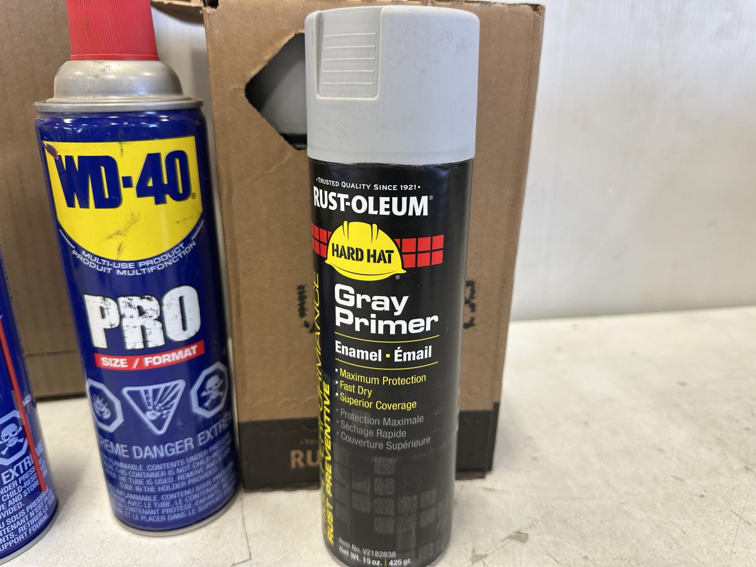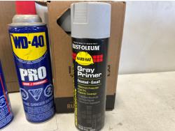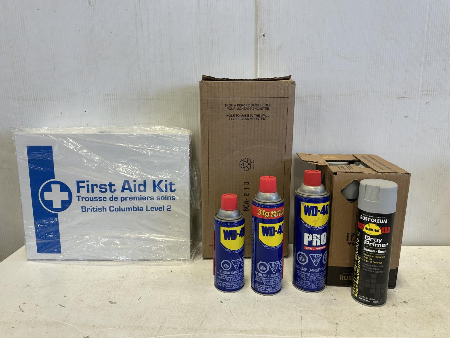 Wall-mount fan heater, First Aid kit, (6) cans of Rust-oleum Grey enamel primer, (3) cans of WD-40