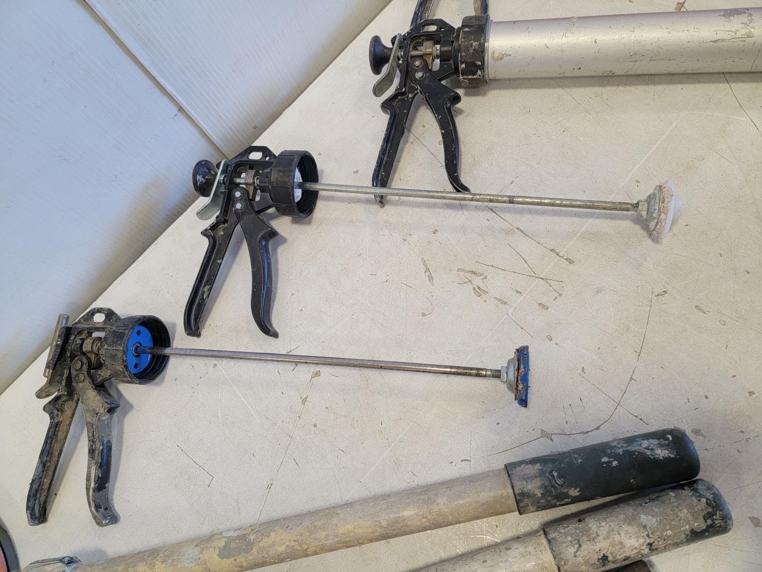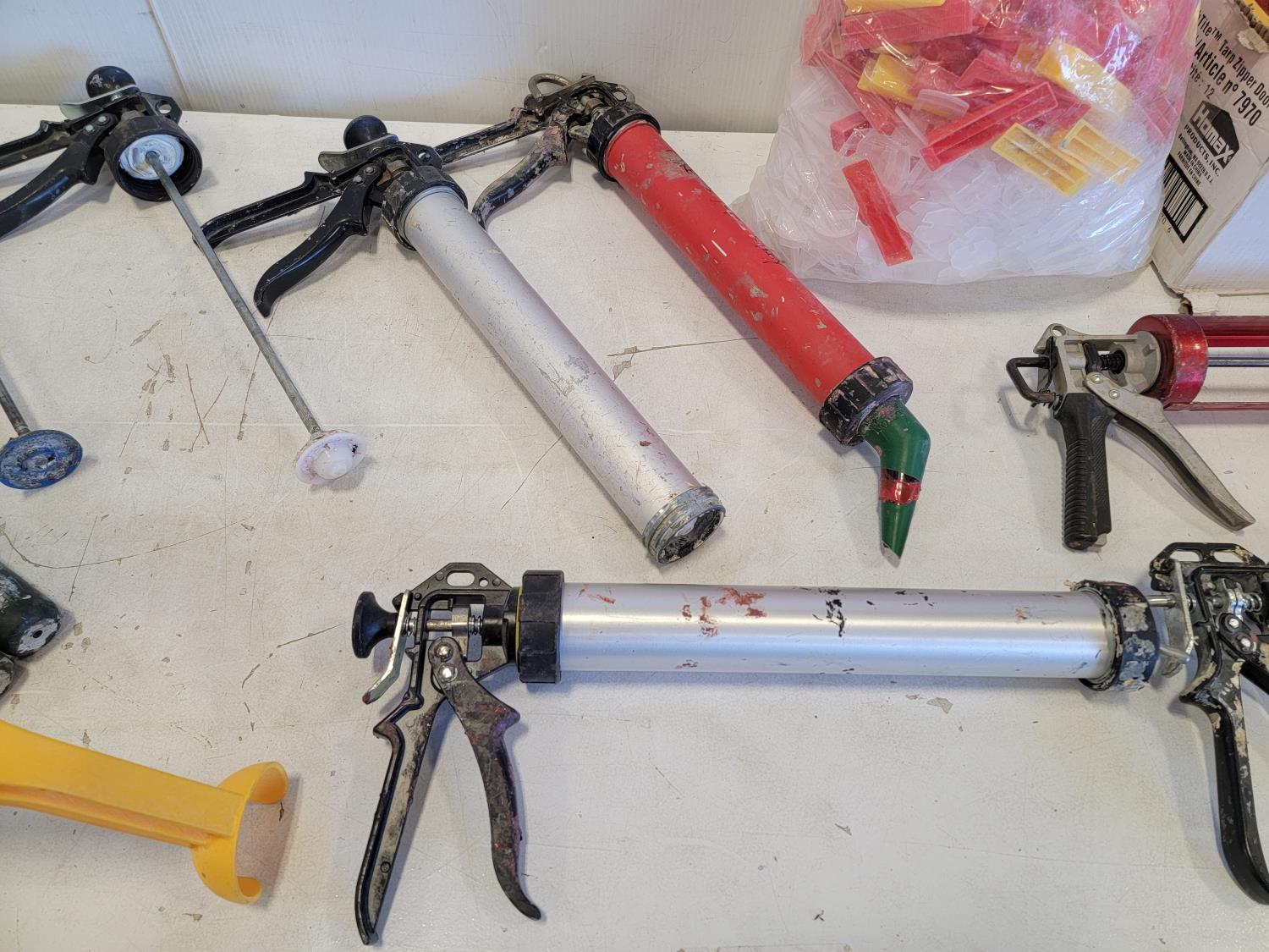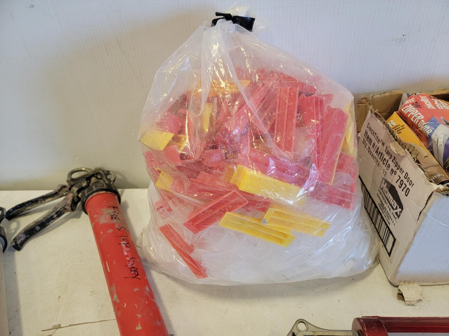 5446 Qty of Silicone/Caulking Guns, Tile Spacers and Tarp Zipper Doors