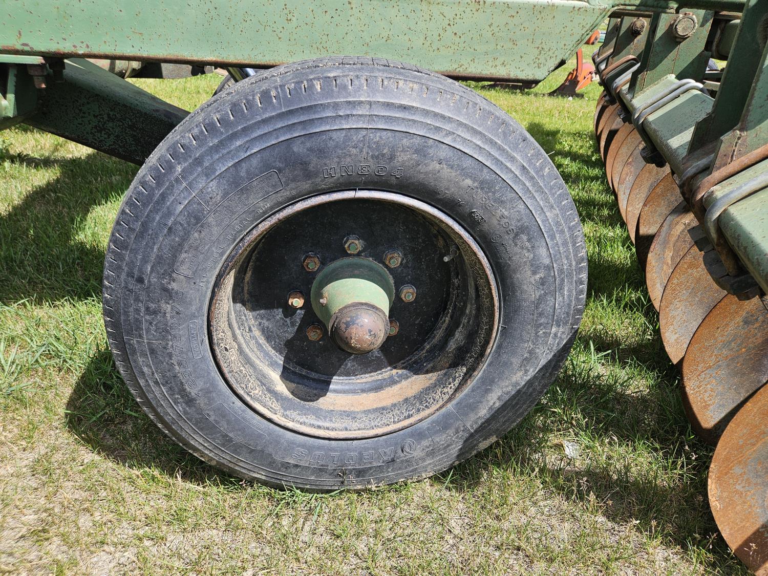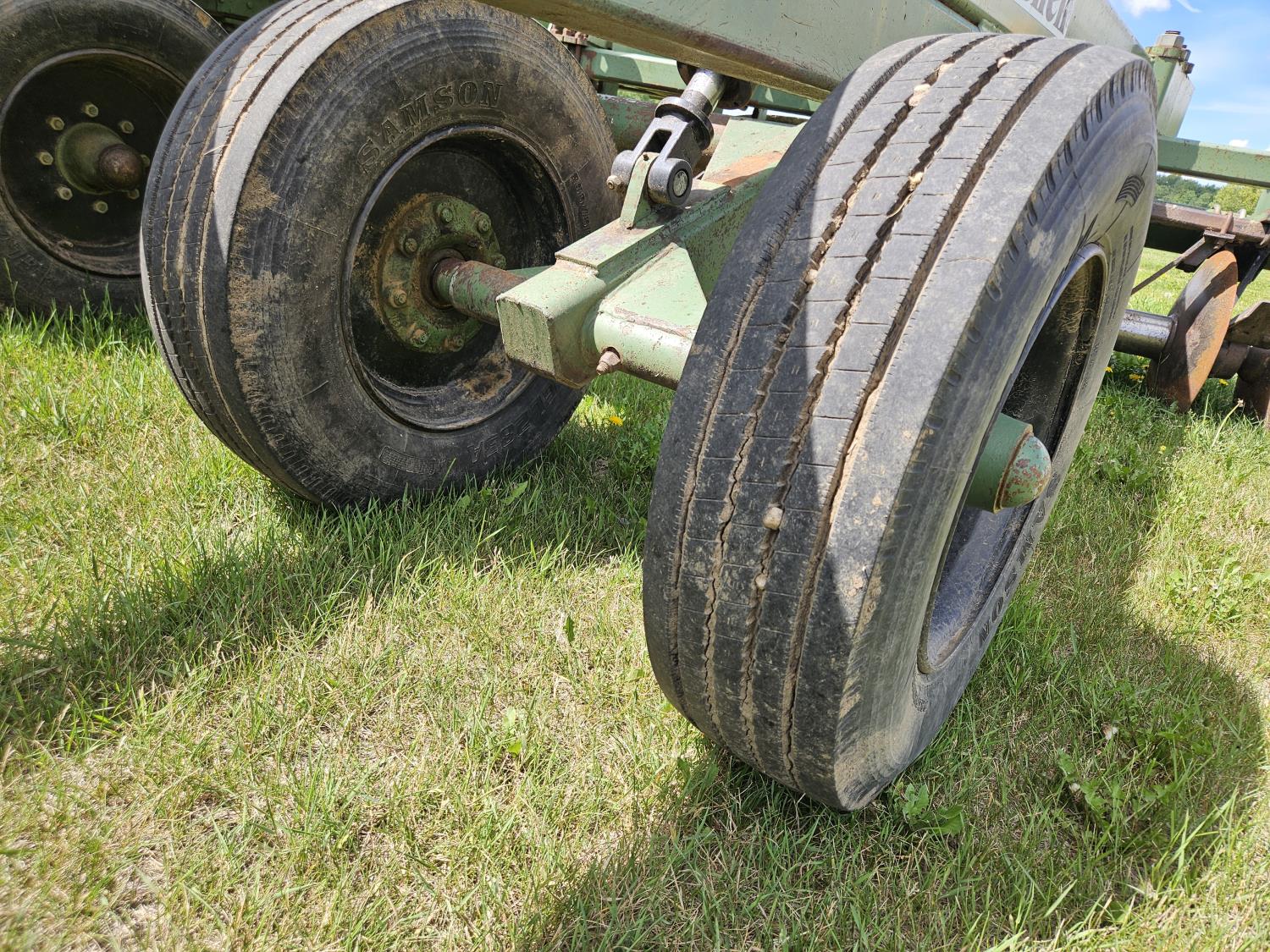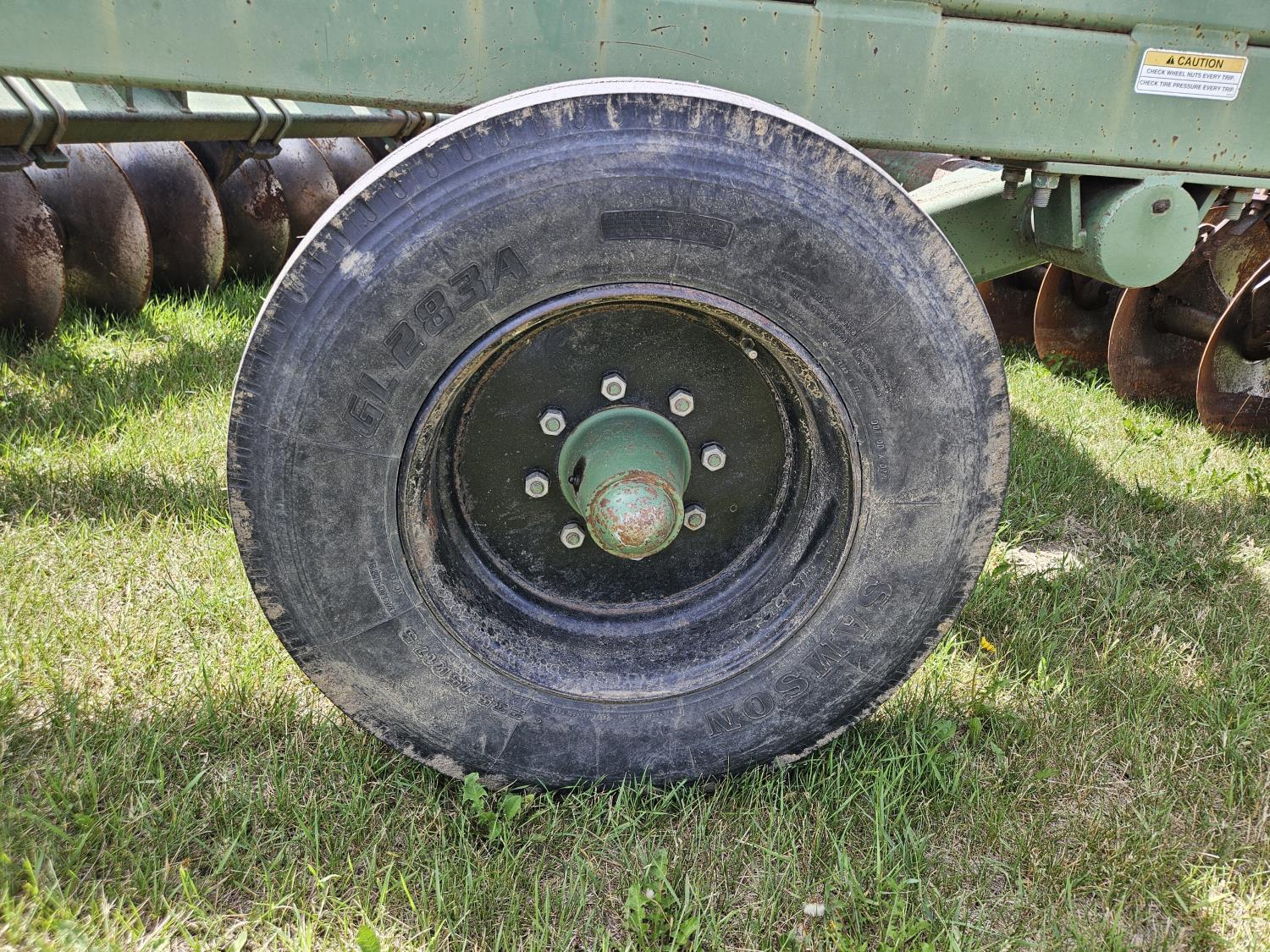 front: 9 inch spacing smooth 24 inch discs, rear: 9 inch spacing smooth 25 inch discs, scrapers, duals main frame, 235/75R17.5 main frame tires