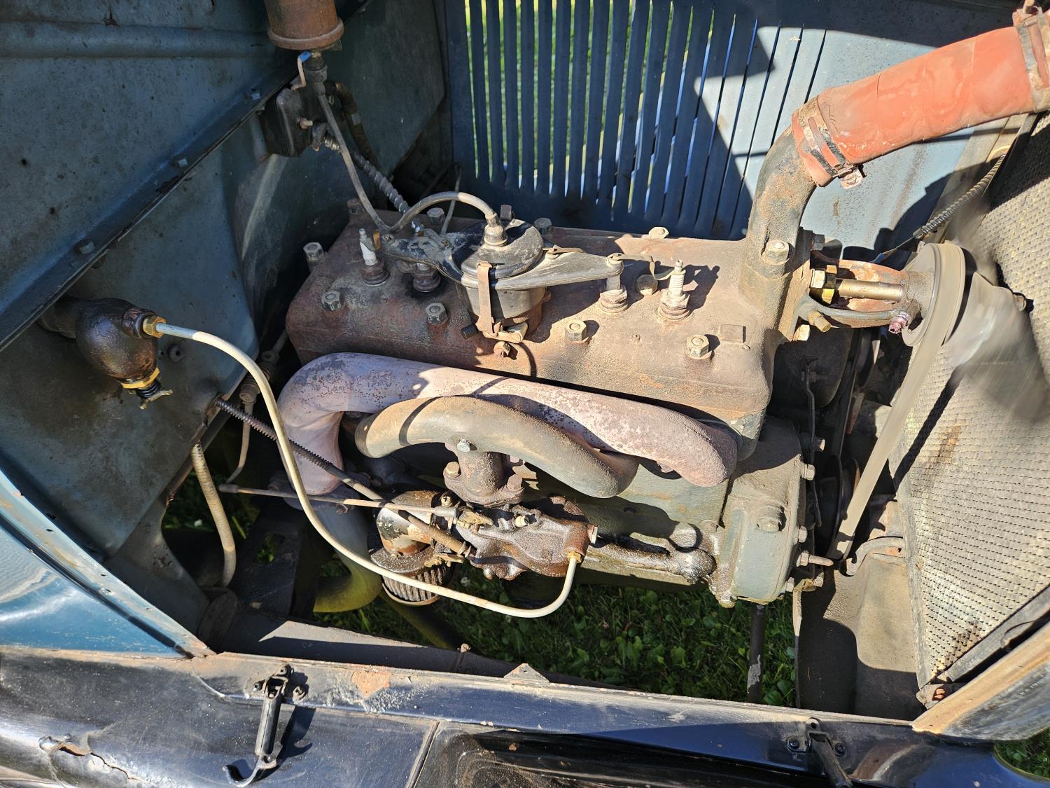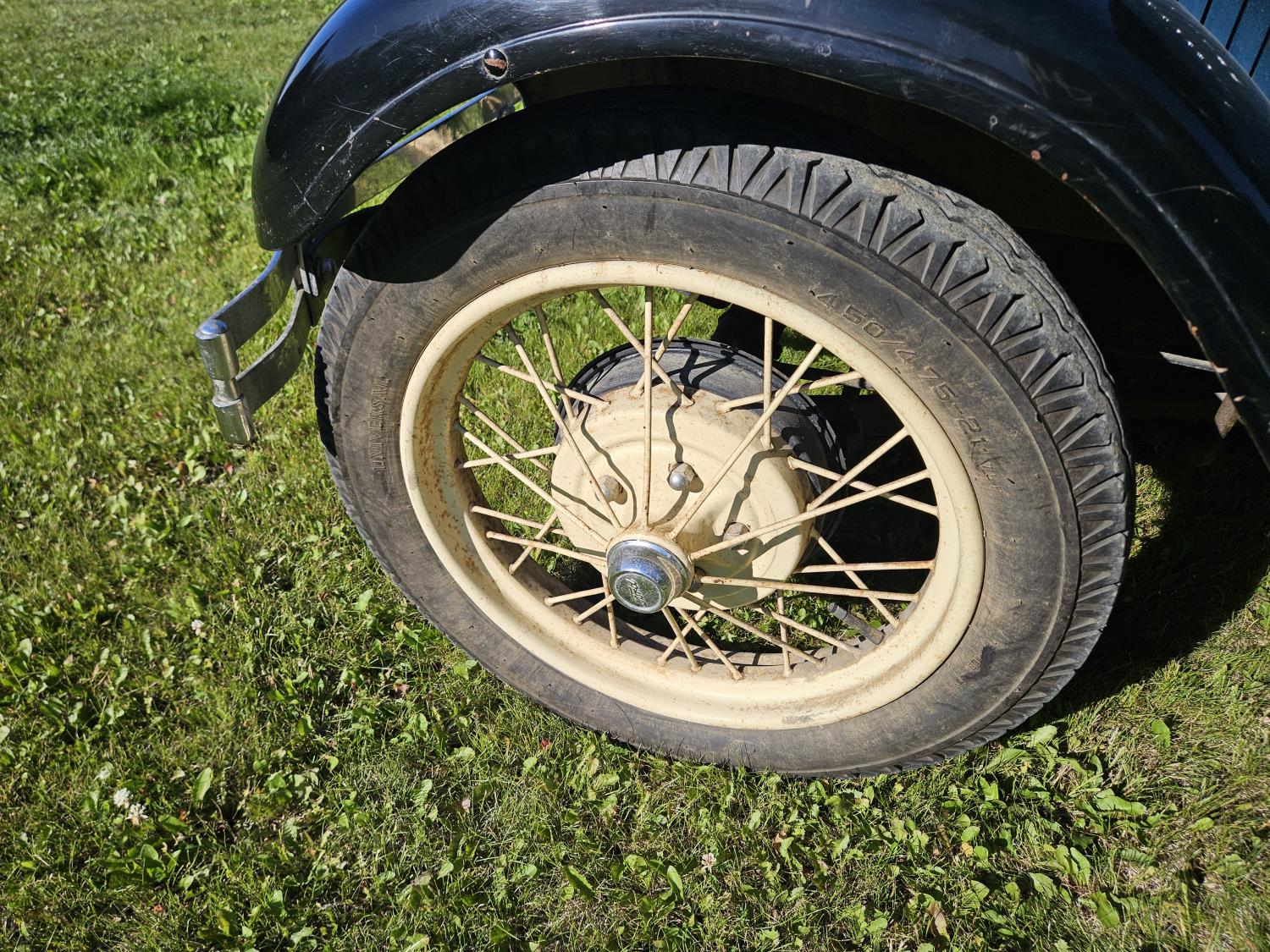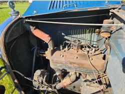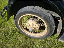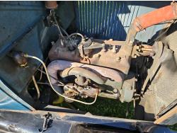 4 cylinder gas engine, 3 speed manual transmission, 2 wd, 6 volt positive ground, spring suspension, (4) roll down windows, 4.50/4.75-21 tires