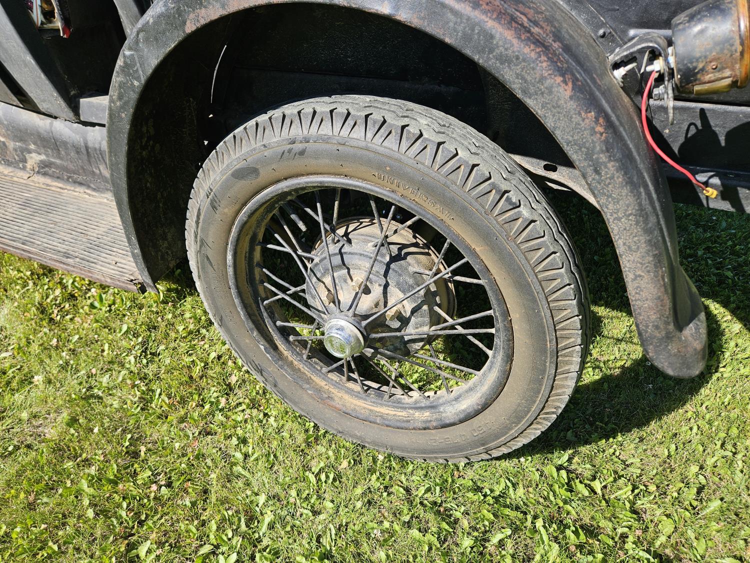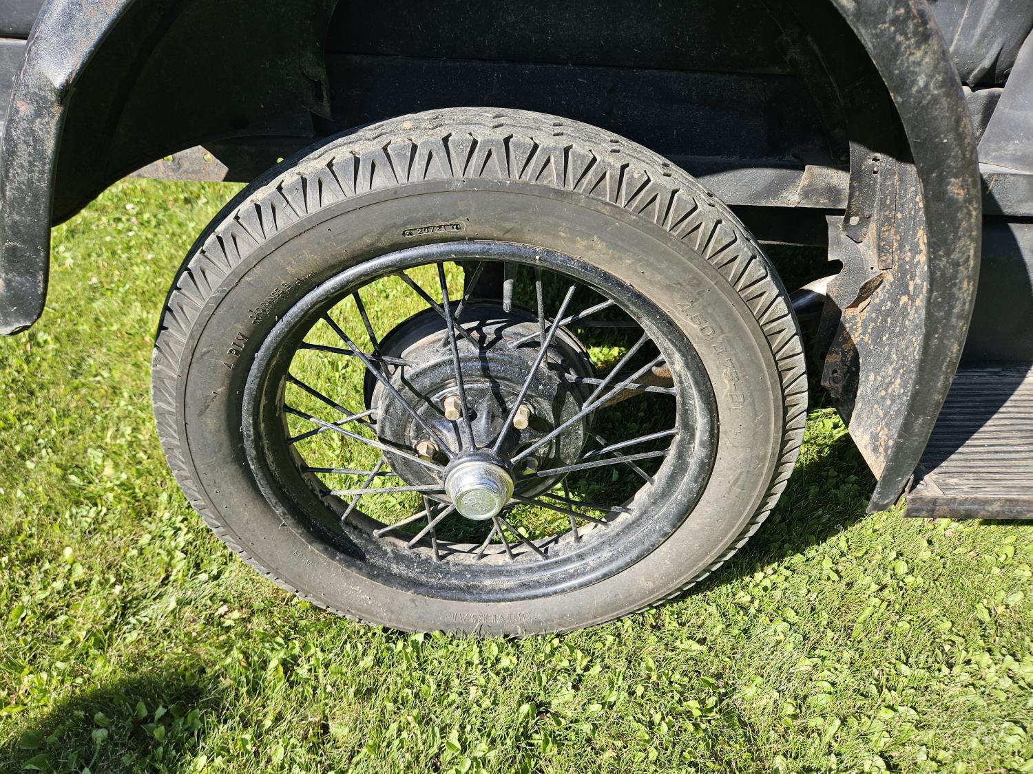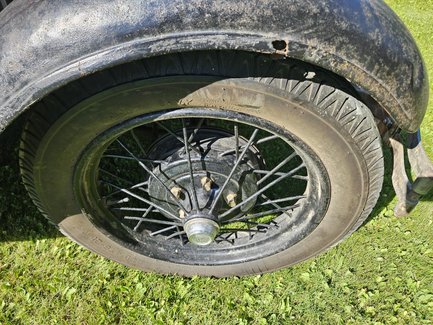 4 cylinder gas engine, 3 speed manual transmission, 2WD, 6 volt positive ground, spring suspension, 4.50/4.75-21 tires