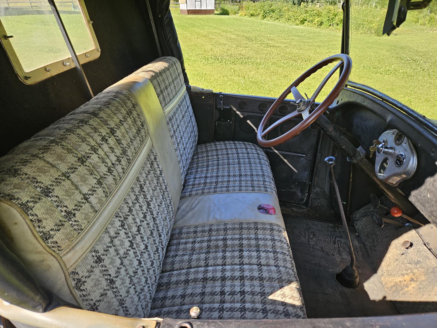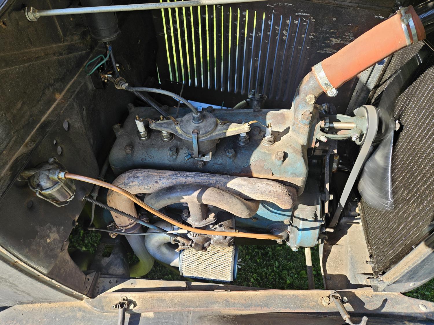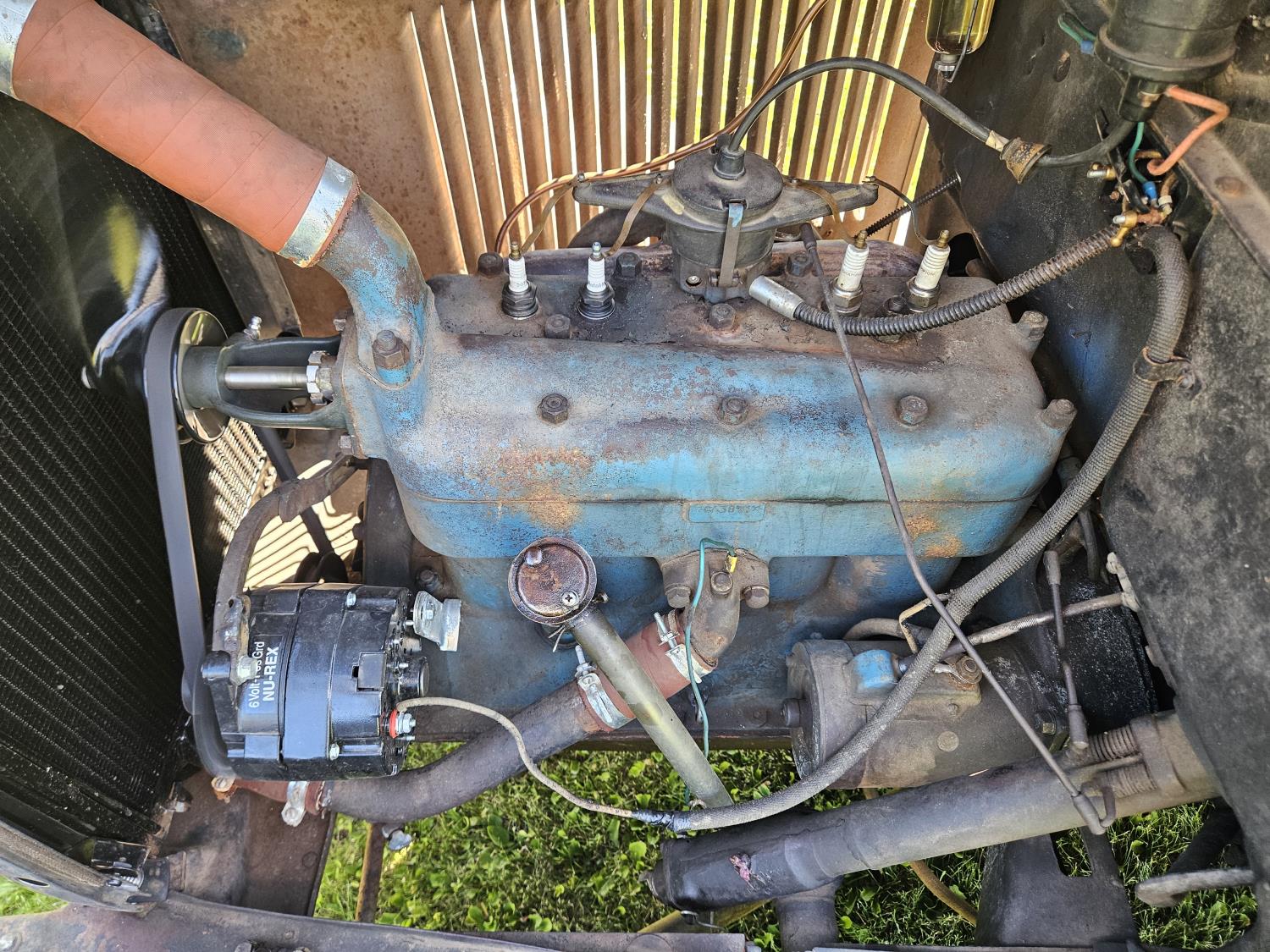 4 cylinder gas engine, 3 speed manual transmission, 2WD, 6 volt positive ground, spring suspension, 4.50/4.75-21 tires