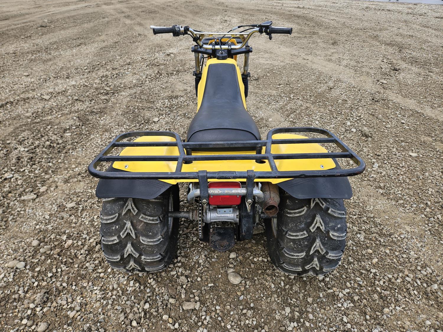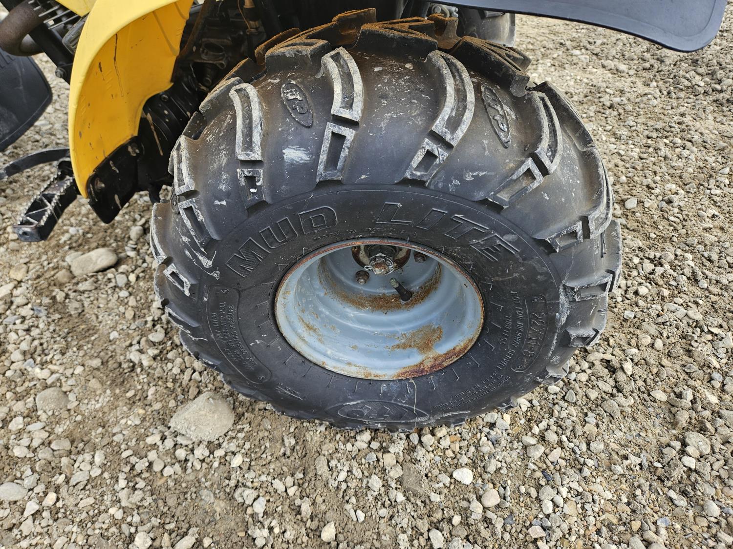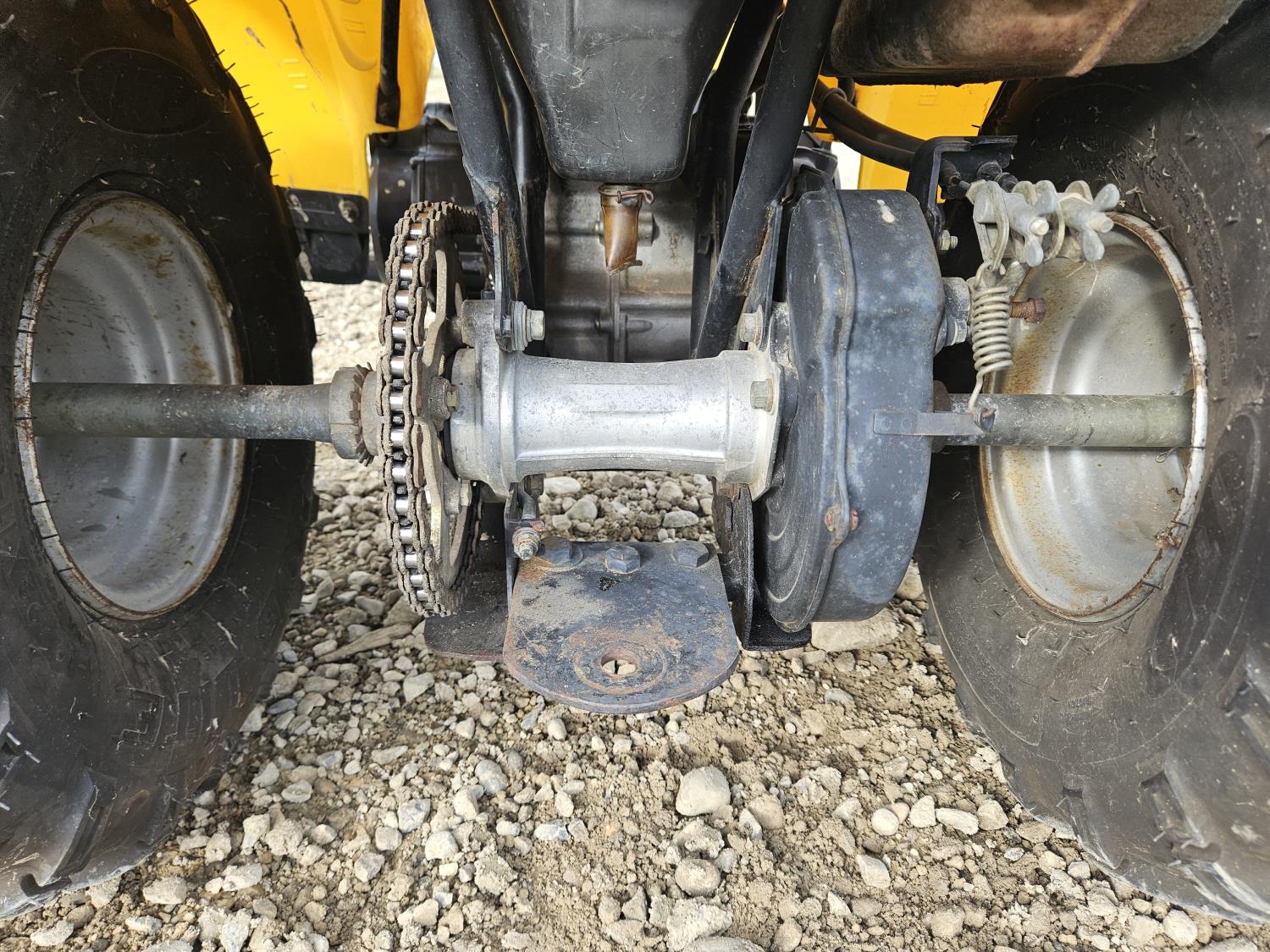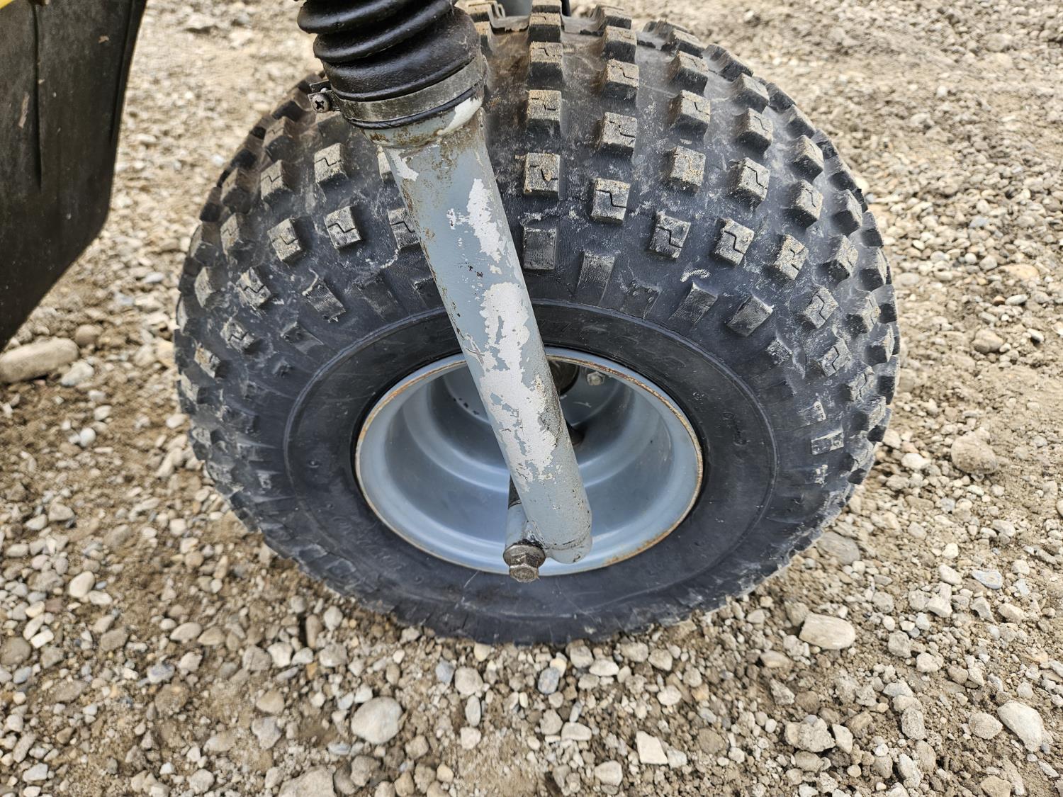 200 cc air cooled gas engine, 5 speed manual transmission, front and rear racks, pull start, 22x11-8 tires