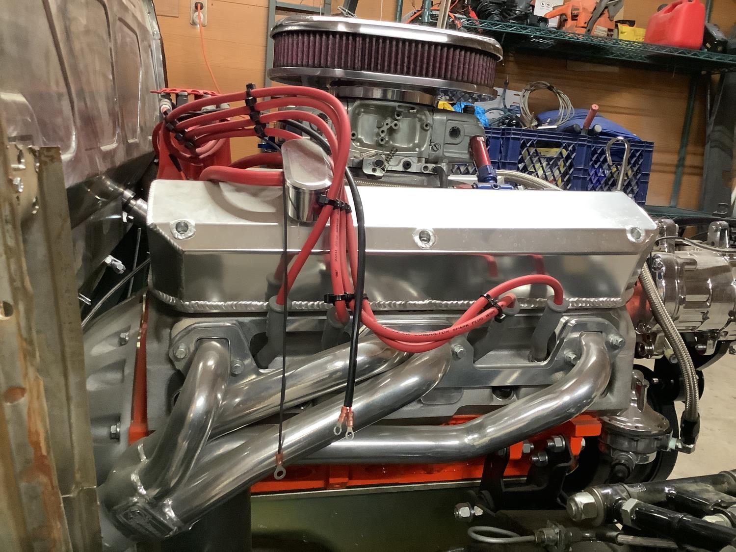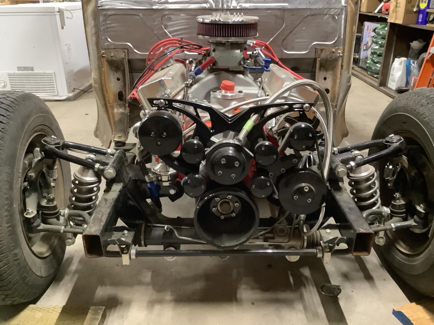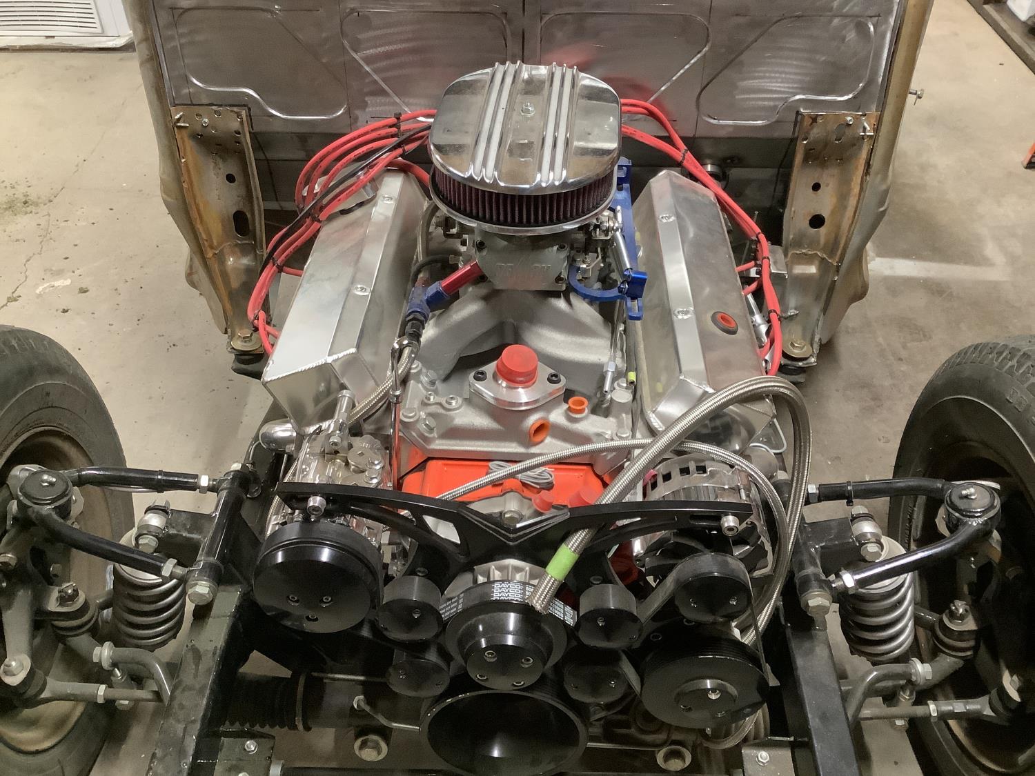 Total rebuilt Chrysler 340 Stocker Kit engine board out to 418 CI that has not been started yet. New TKO 5 speed manual transmission, new Clutch, rear end is a GM 12 Bolt posy rebuilt. Front end is a new Mustang 2 front suspension, power steering. As seen in the pictures there are body parts doors almost everything is there to finish up the restoration project
