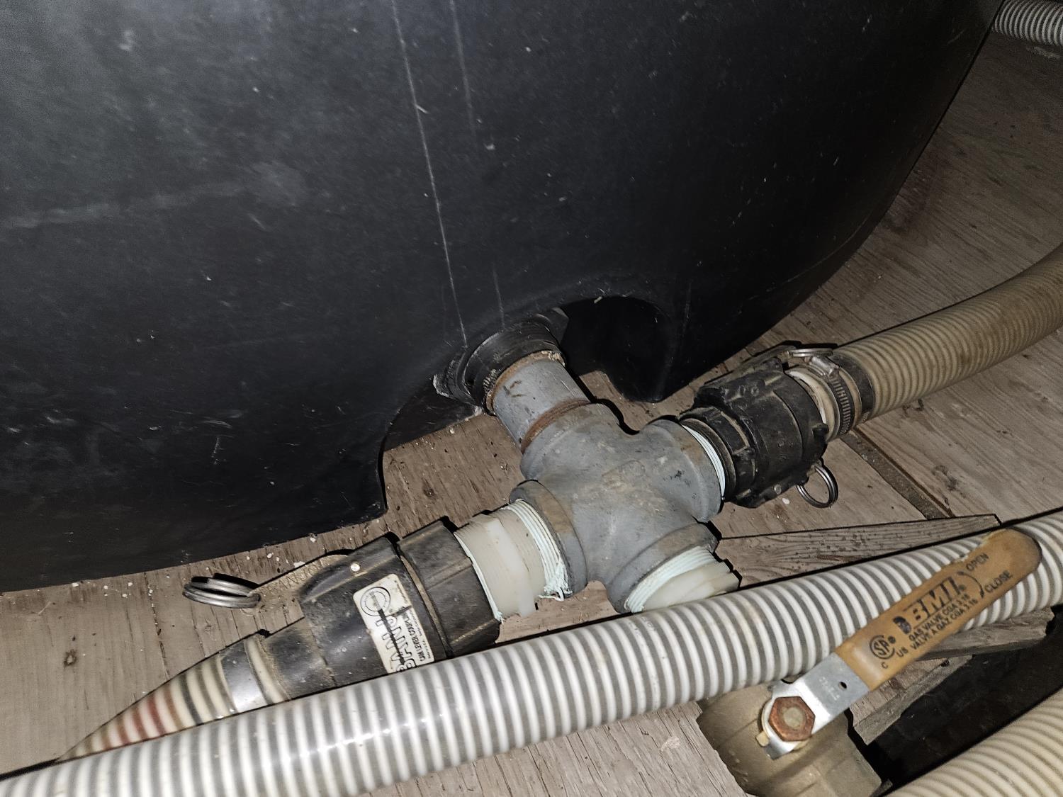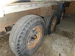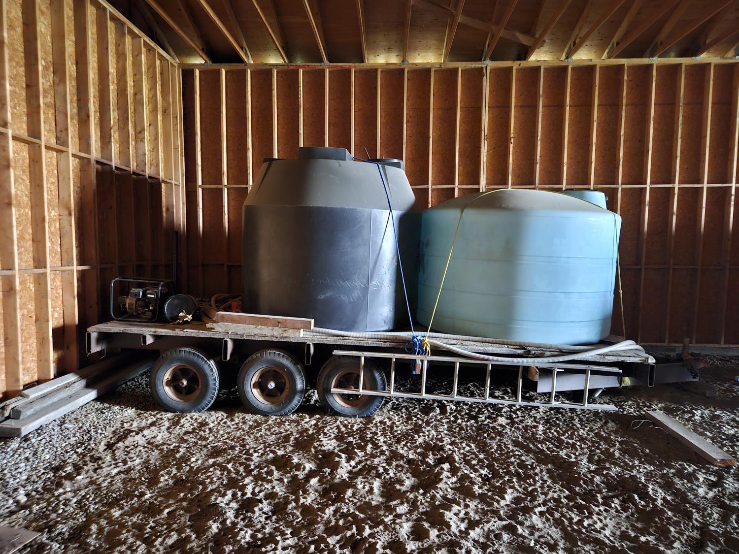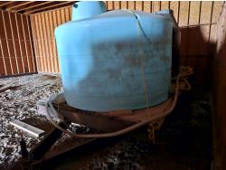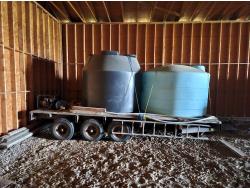 wood deck, electric brakes, spring suspension, 1500 gallon & 1100 gallon poly tanks, ladder, Powerease 2" water pump, 8-14.5 tires