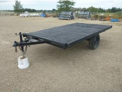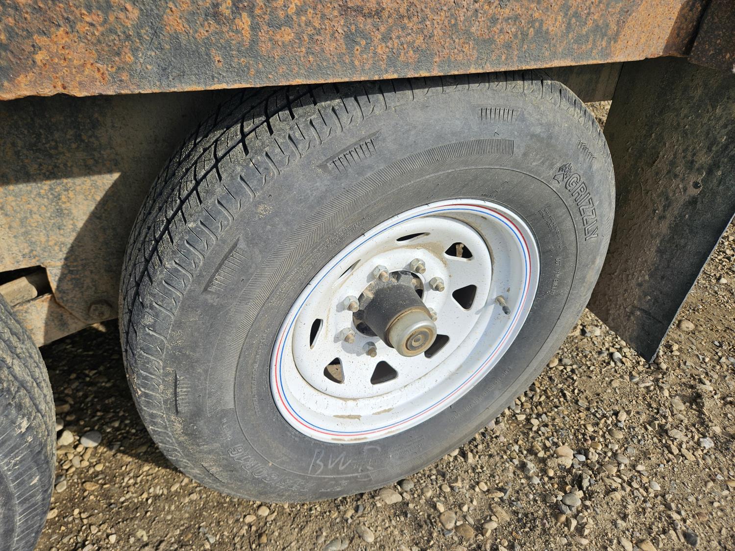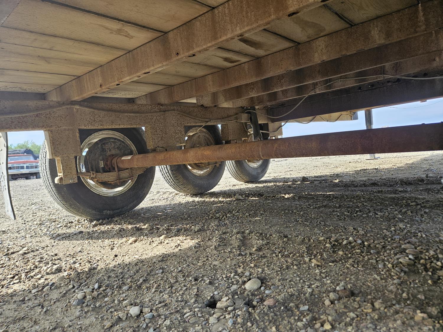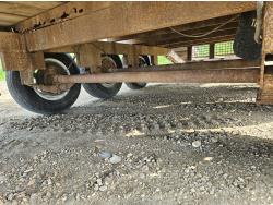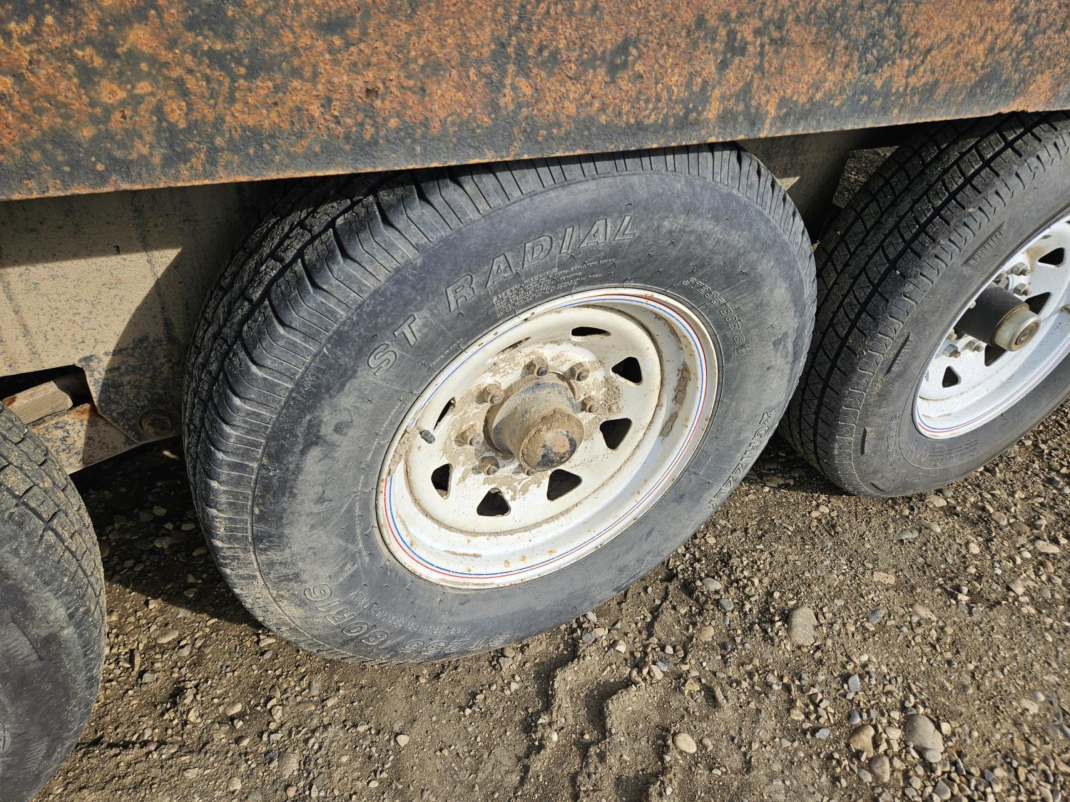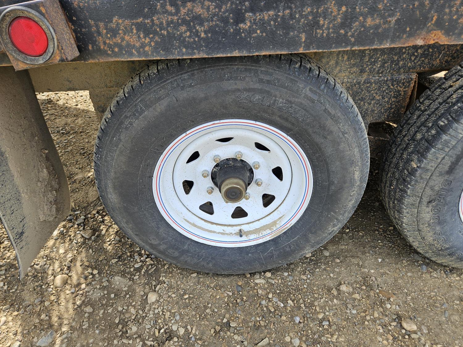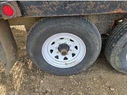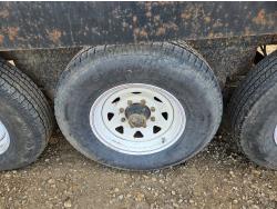 96 inch wide deck, 36 inch beaver tails, wood deck, flip over ramps, spring suspension, rub rails, stake pockets, 235/80R16 tires