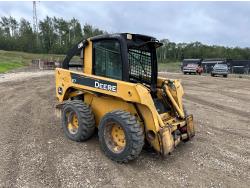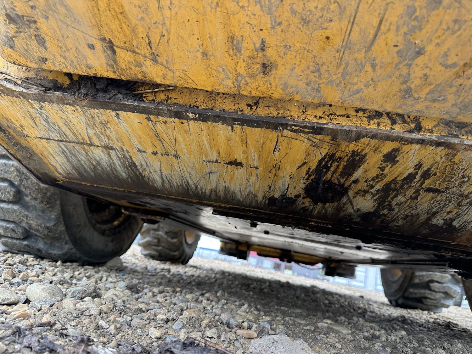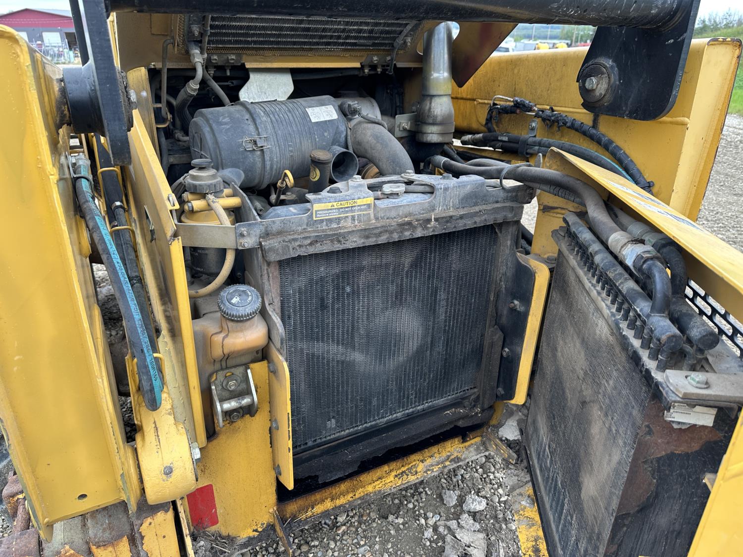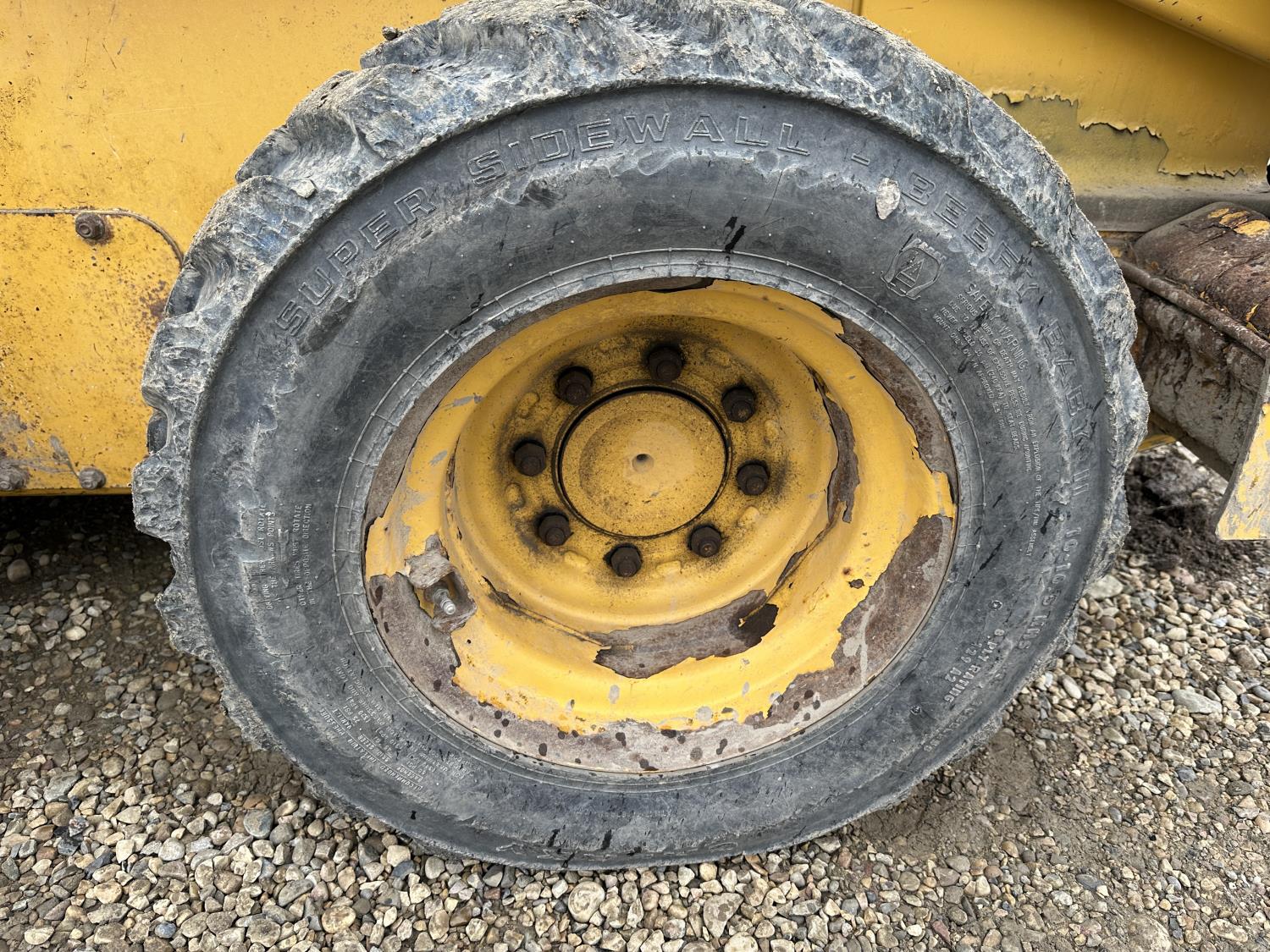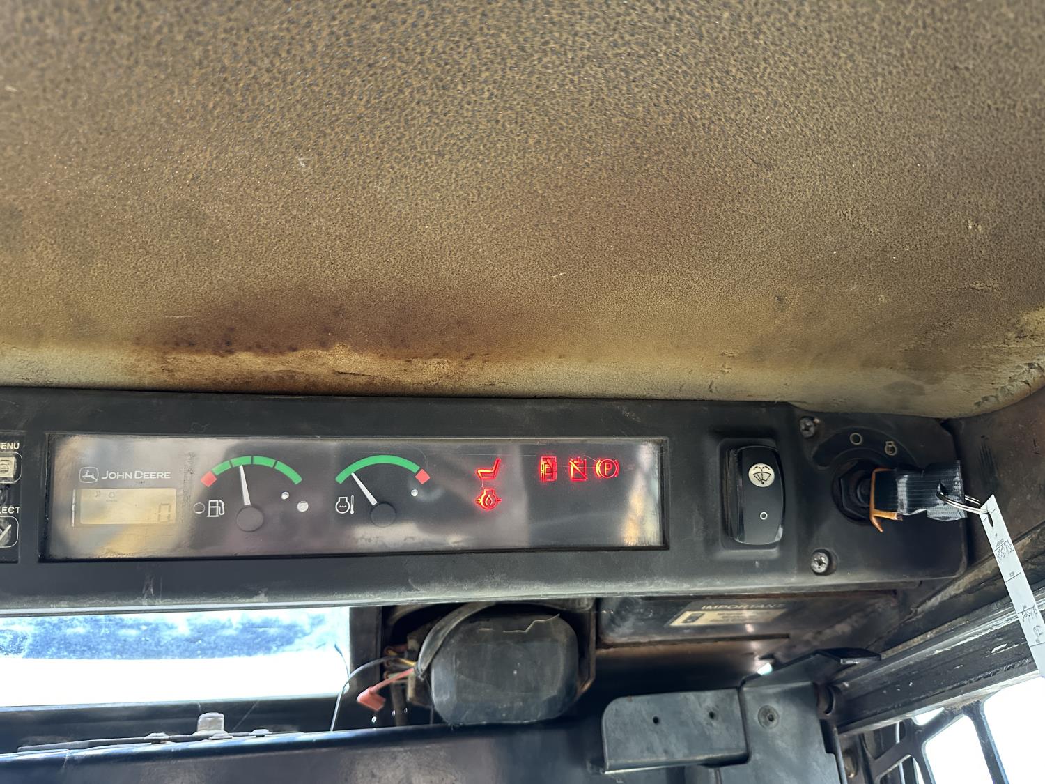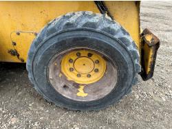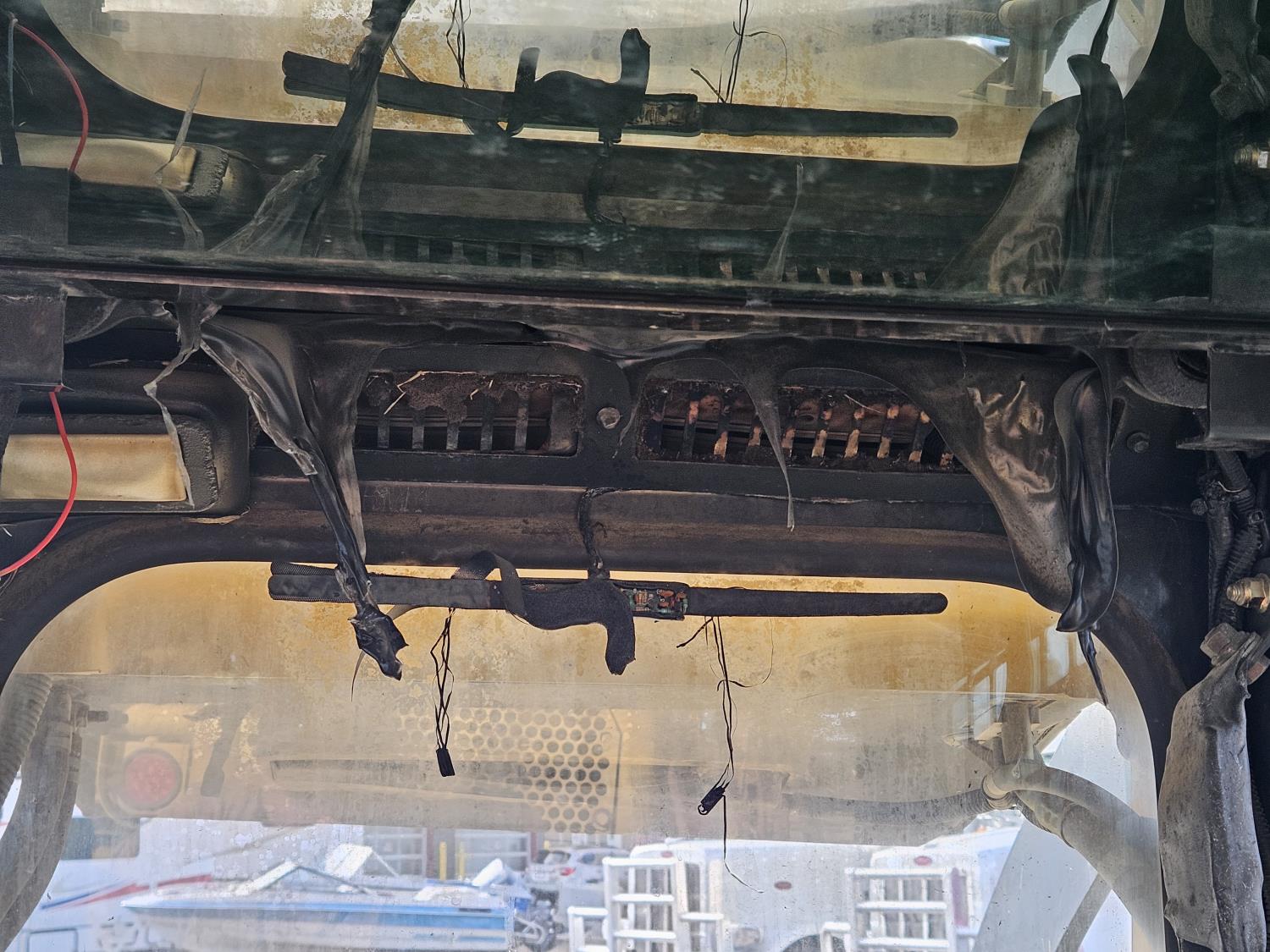 Enclosed cab, A/C, diesel engine, foot & lever control, cab screens, hydraulic Q/C coupler, counter weight, has some fire damage, 10-16.5 tires