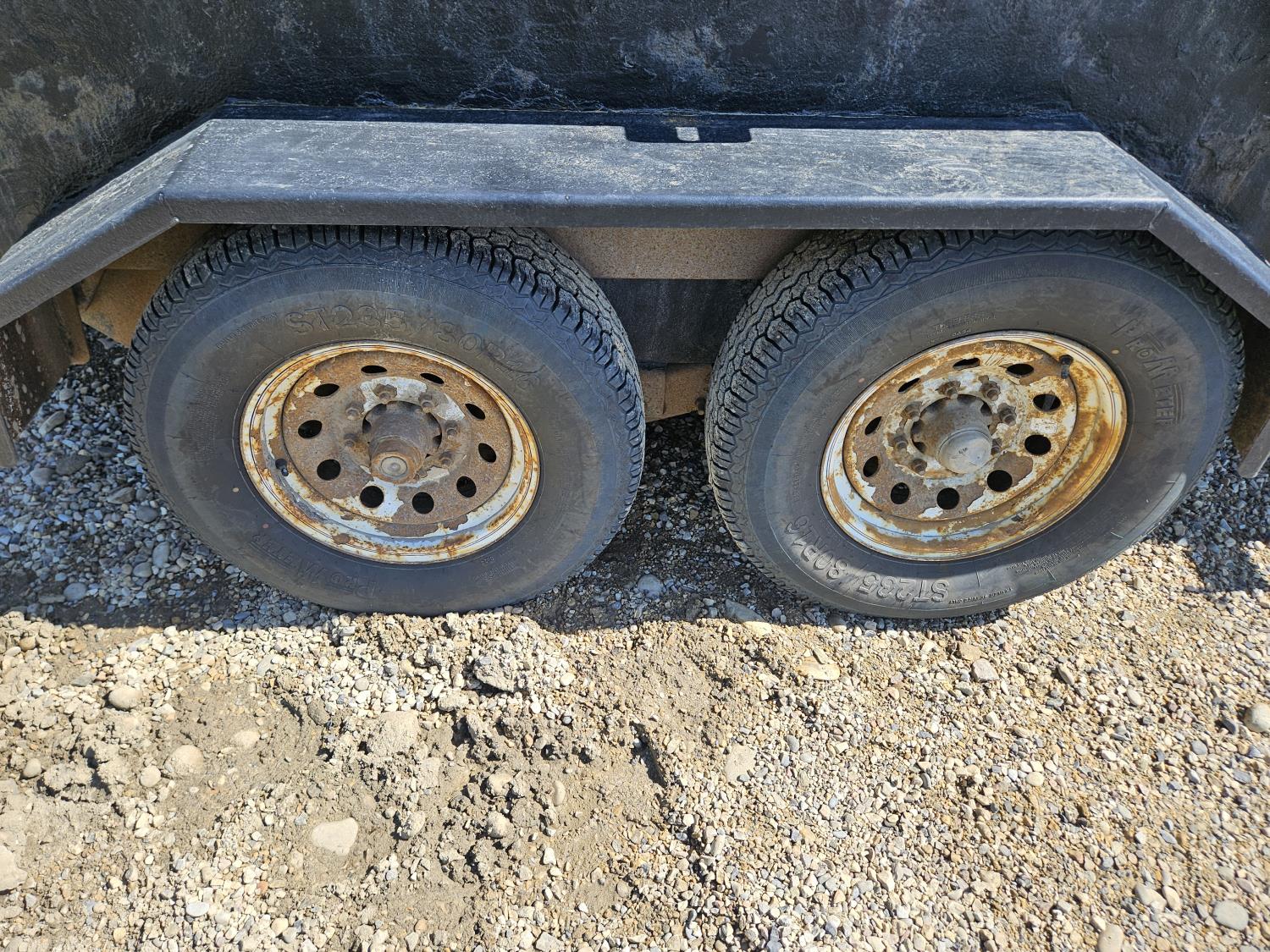 Ball hitch, 83 inch box width, electric brakes, spring suspension, 7,000 lb axles, needs battery, 235/80R16 tires
