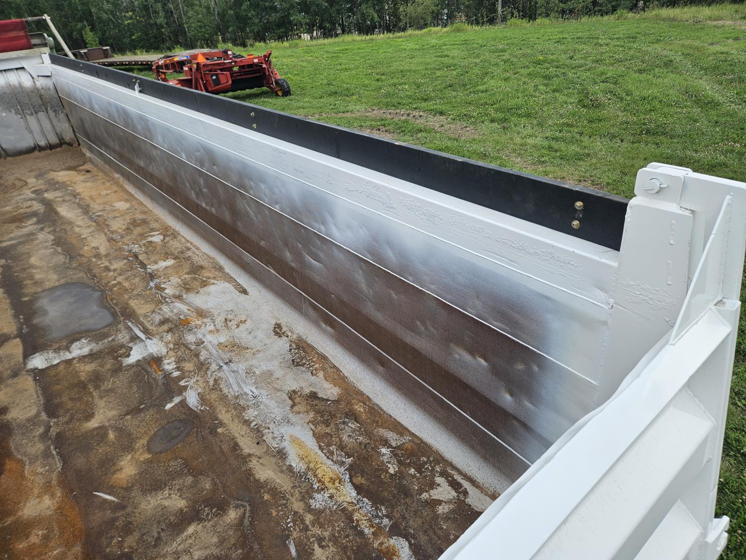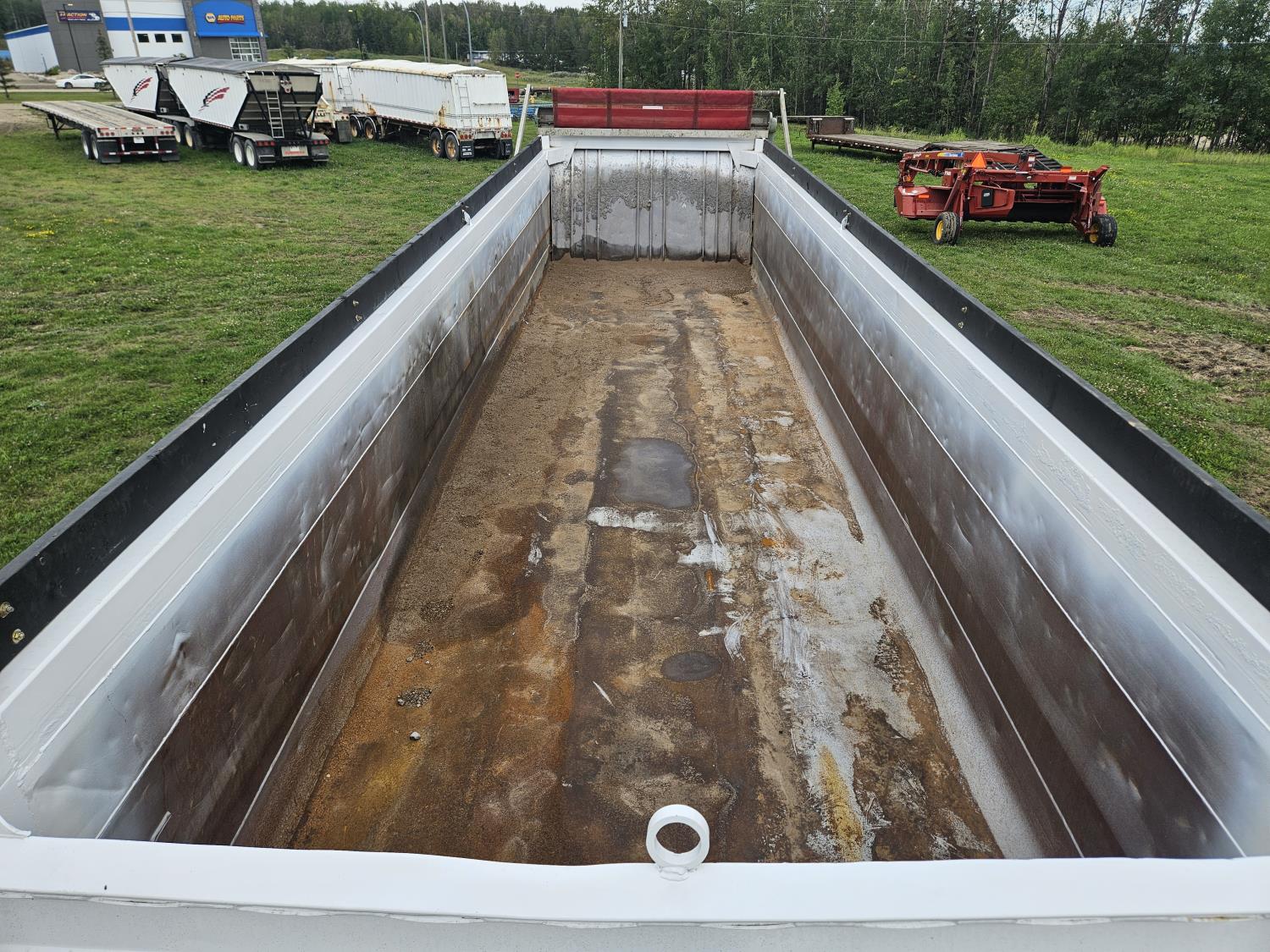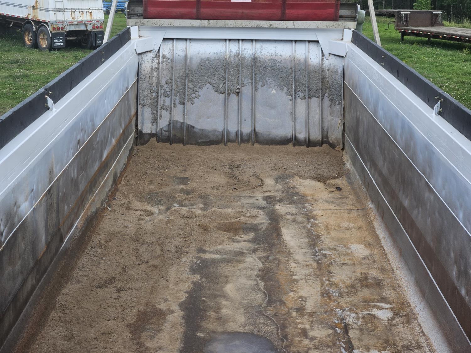 8 ft box width, 54 inch side wall height, roll tarp, spreader chains, air tail gate, air brakes, air ride suspension, 22,500 lb axles, 11R24.5 tires