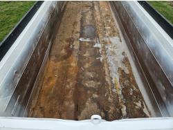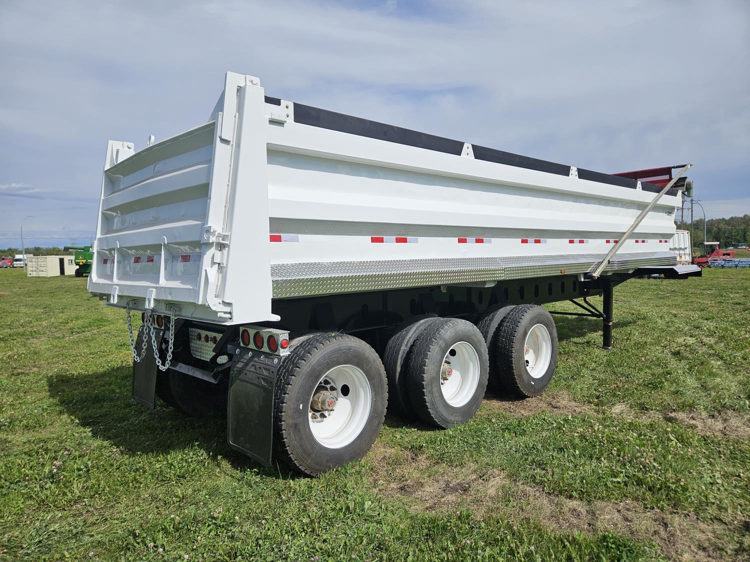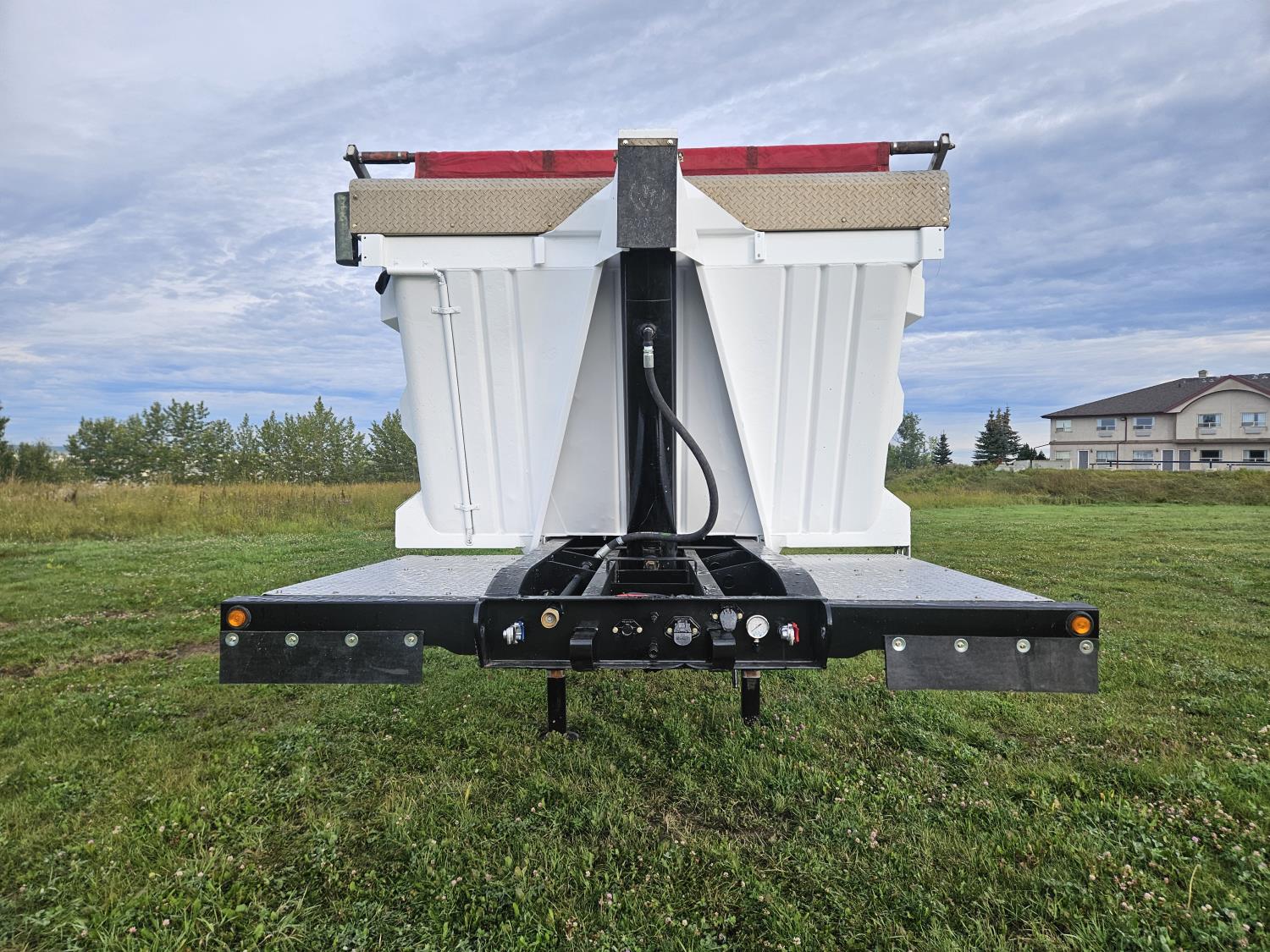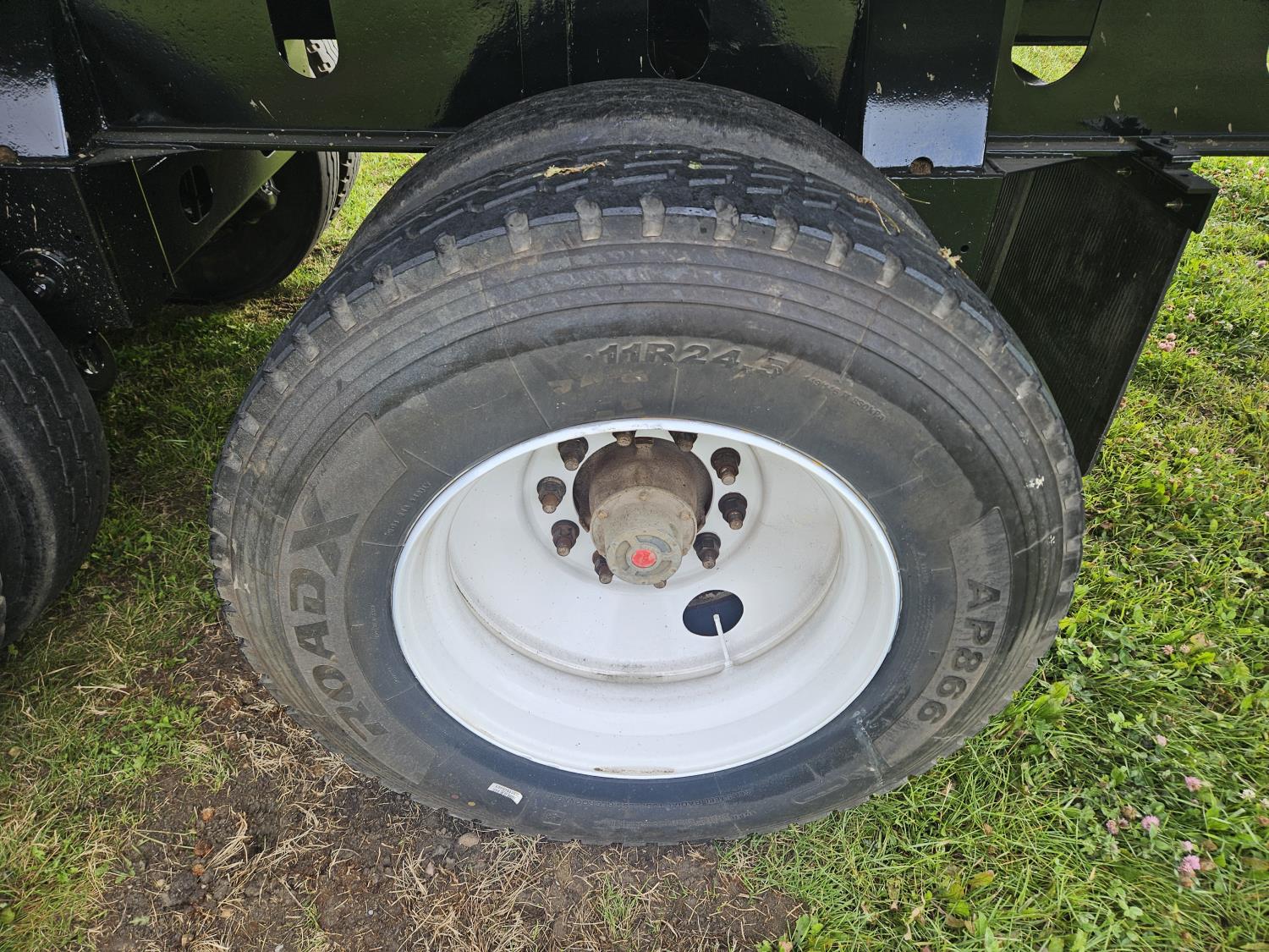 8 ft box width, 54 inch side wall height, roll tarp, spreader chains, air tail gate, air brakes, air ride suspension, 22,500 lb axles, 11R24.5 tires