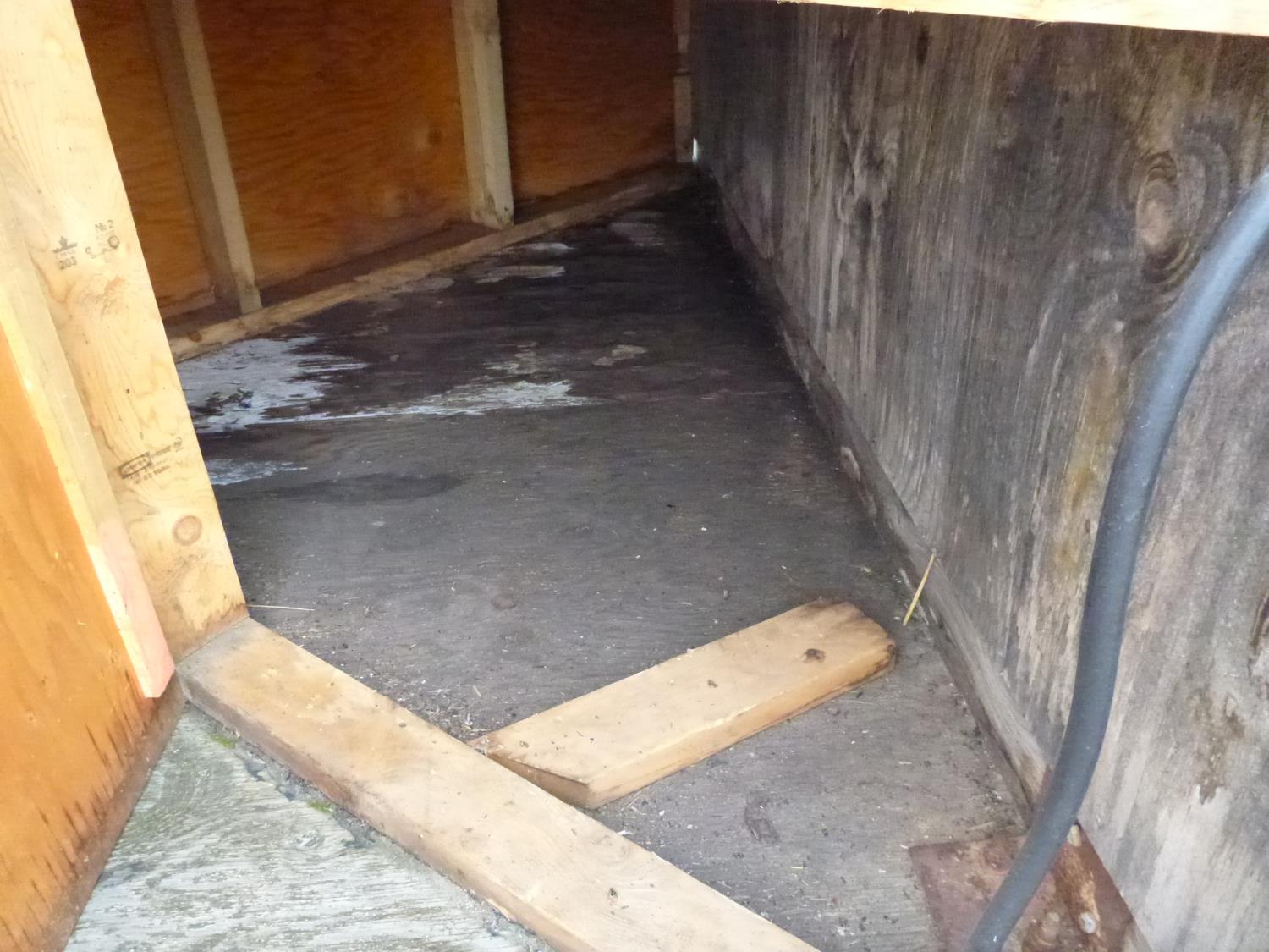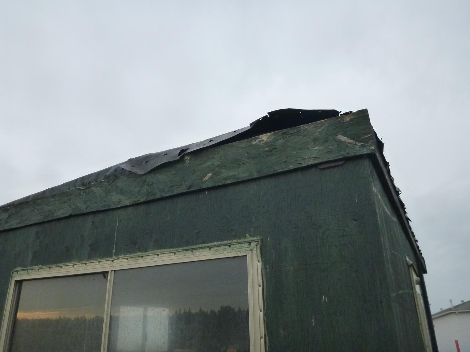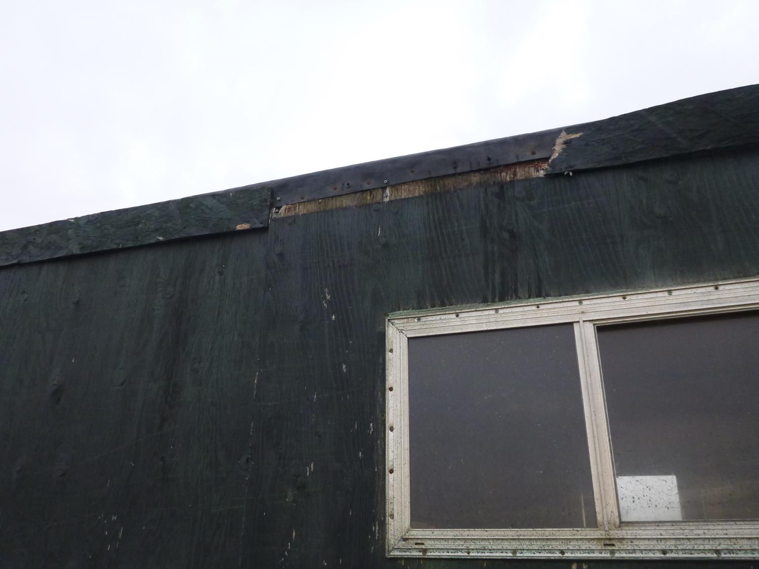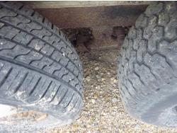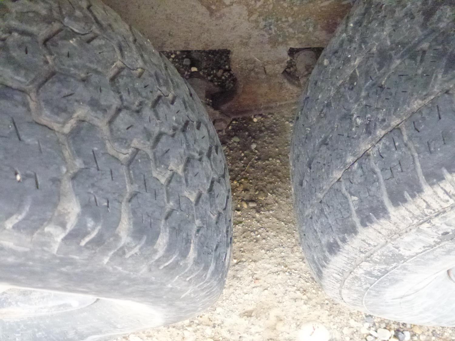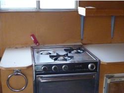 bunkbeds, stove, fridge, table, 4 ft deck on rear, mixed tires, front storage, spring suspension, water damage