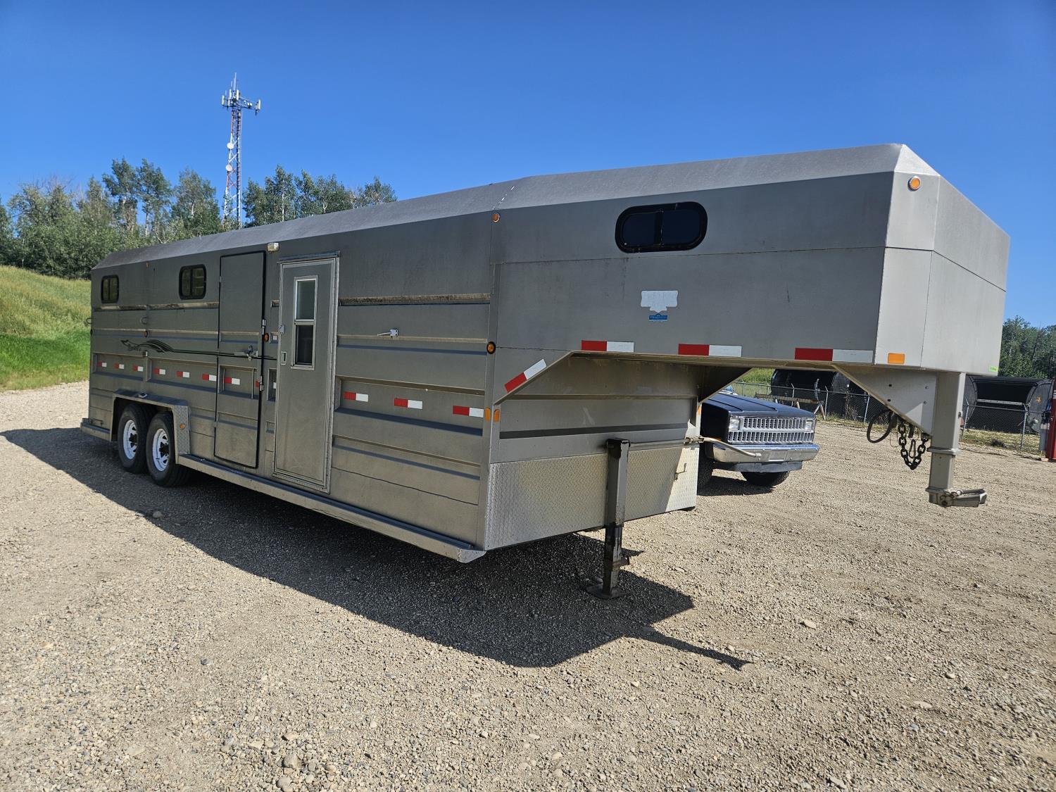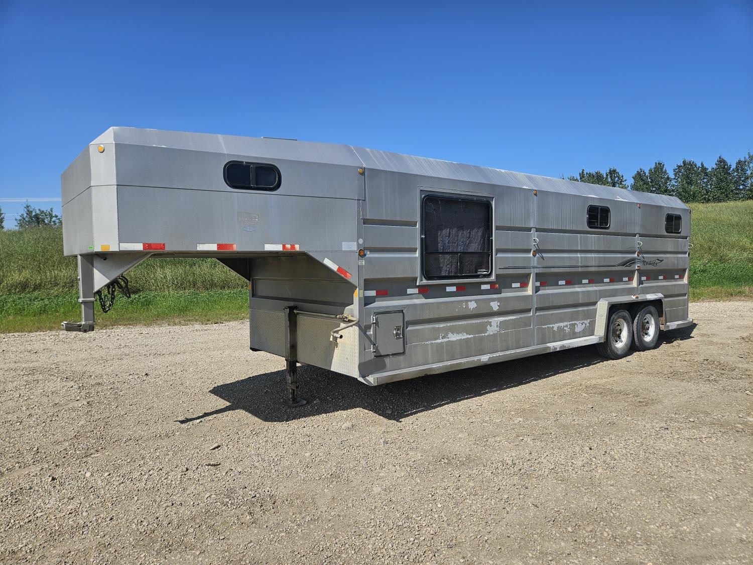 12 ft livestock section, 88 inch high, 95 inch wide, rear swinging door, tack room, saddle racks, storage/living area, windows, vents, 7000 lb axles, torsion suspension, 235/85R16 tires