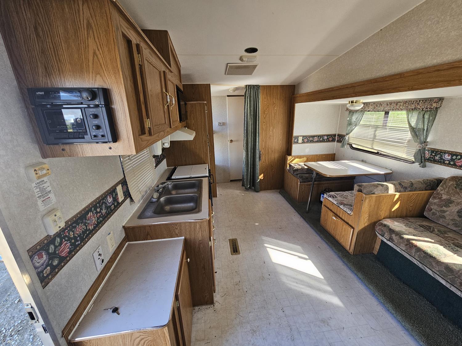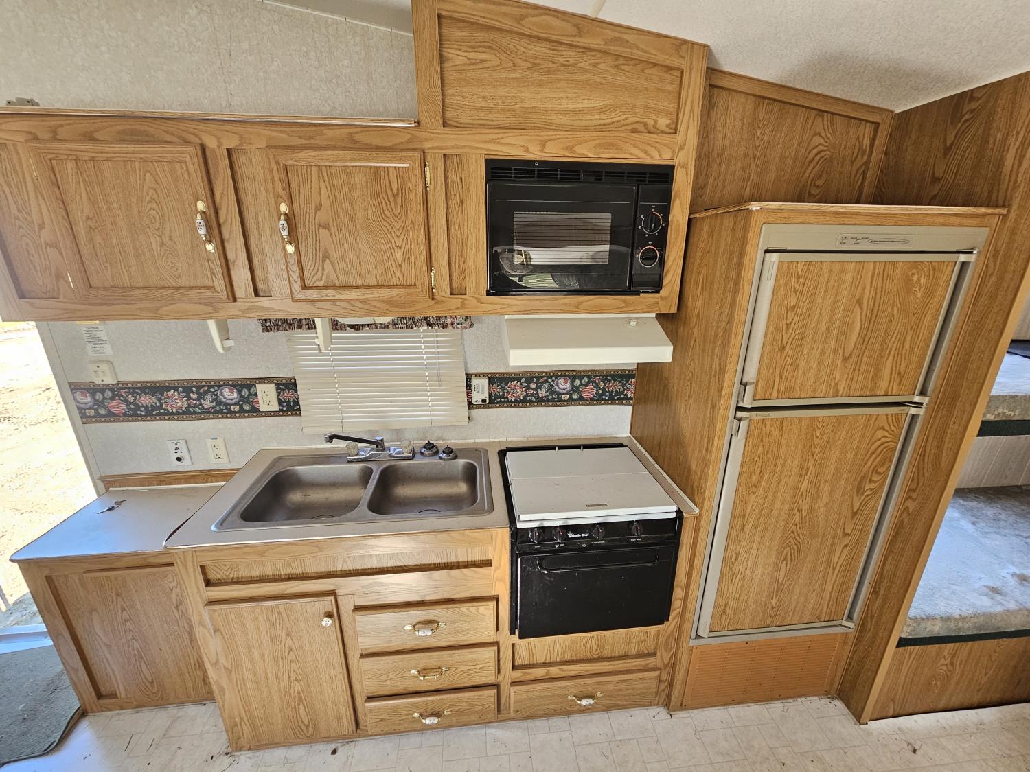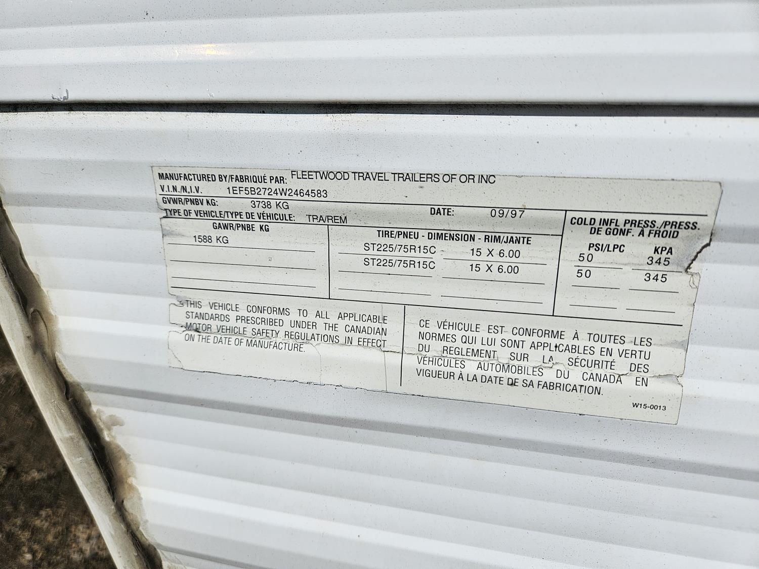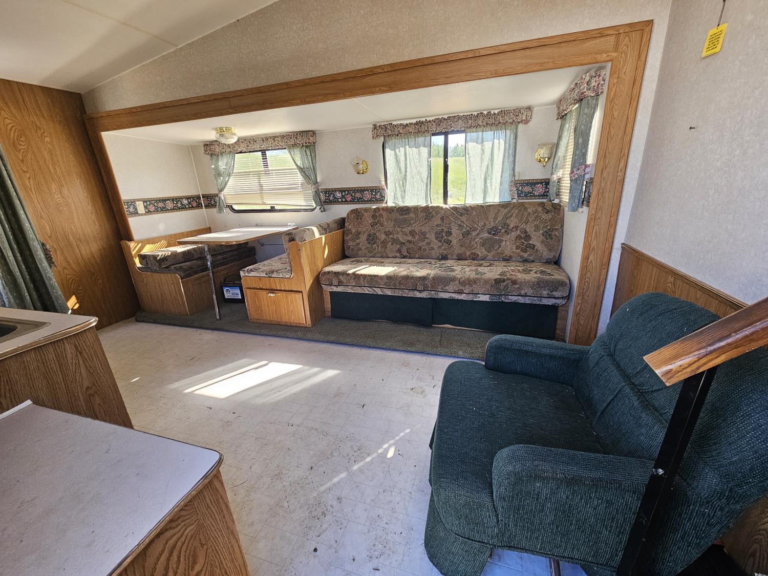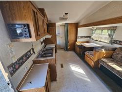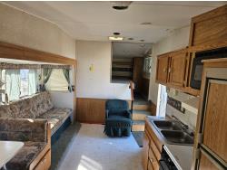 Sleeps 8, stove, fridge, microwave, full bath, bunk beds, A/C, 1 slide, manual awning, spring suspension, 225/75R15 tires