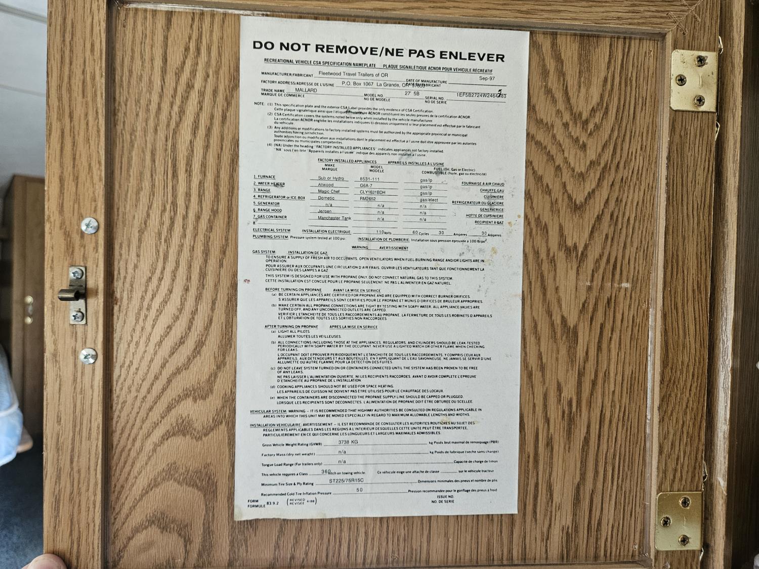 Selling with Bill of Sale only! Consult your local registry office for registration requirements as provinces differ.