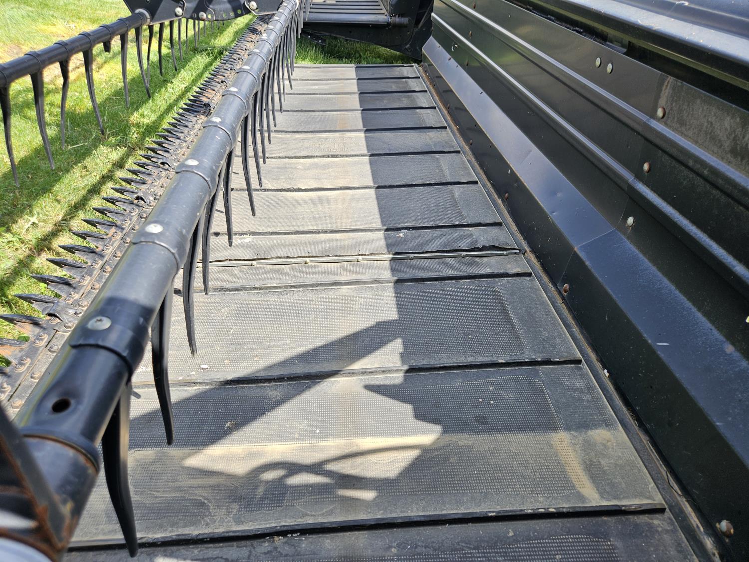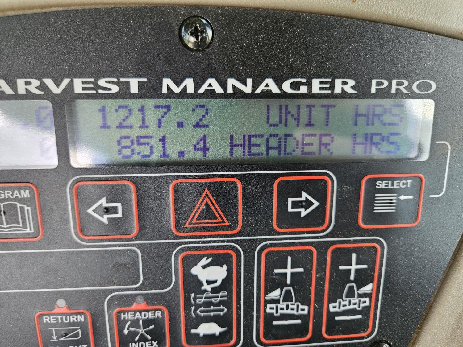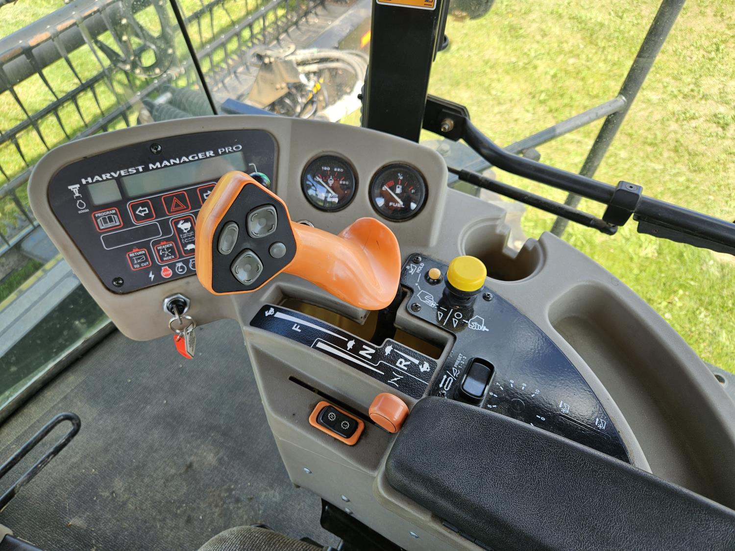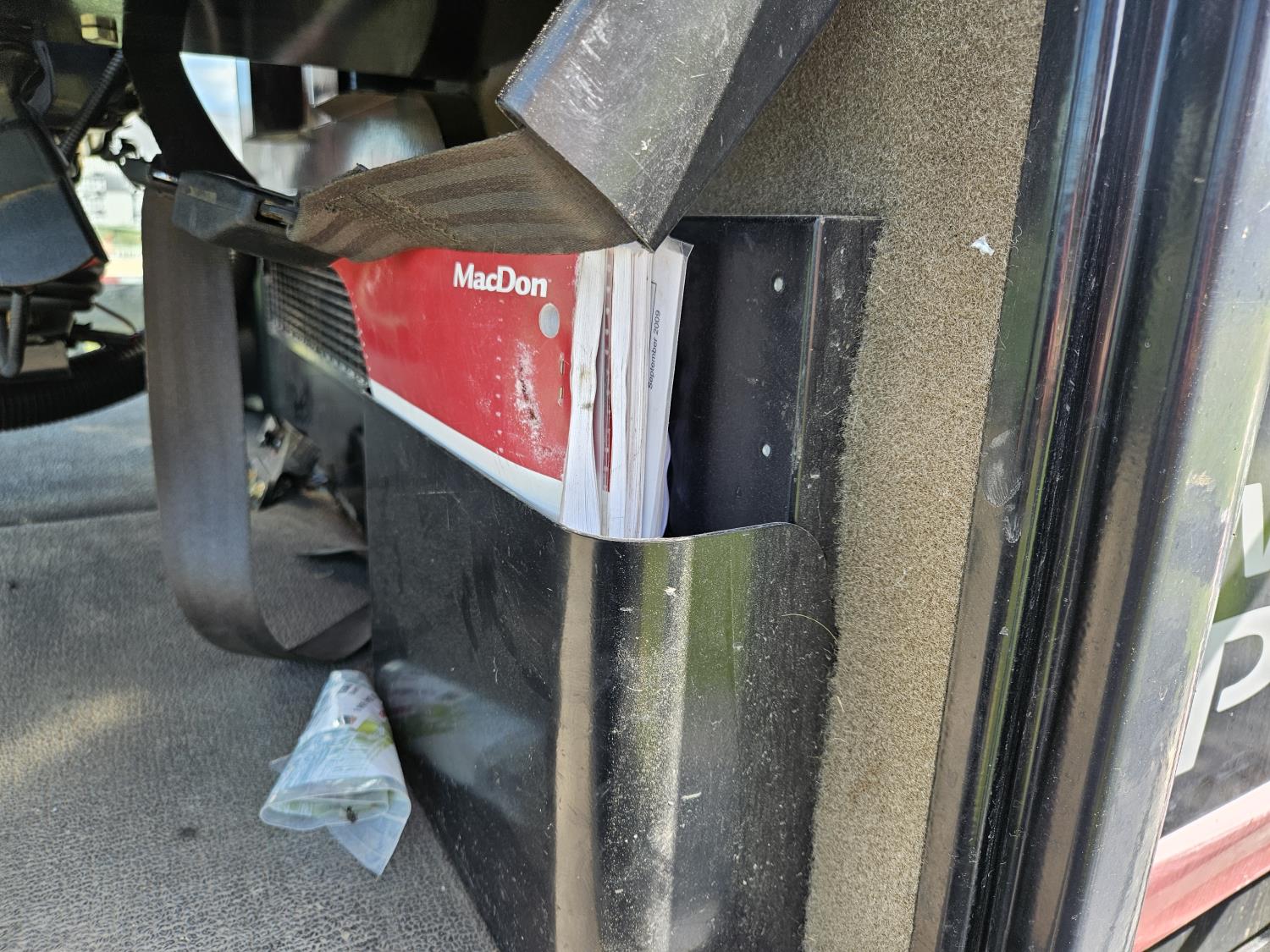 2010 MacDon D60-S triple delivery rigid draper header, pickup reel, double knife drive, fore & aft, gauge wheels, skid plates, crop dividers, Cummins 4.5 L 4 cylinder diesel engine, A/C, radio, air ride seat, buddy seat, 600/65R28 front tires, 16.5L-16.1 rear tires