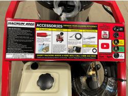 3.5 GPM at 4000 PSI, 15 HP, gasoline engine, electric start, 12 volt burner, oil/diesel fired burned/thermostat, schedule 80 coil with stainless steel housing, fully welded, powder coated frame, 10 gallon poly fuel tank, 30' hose and wand