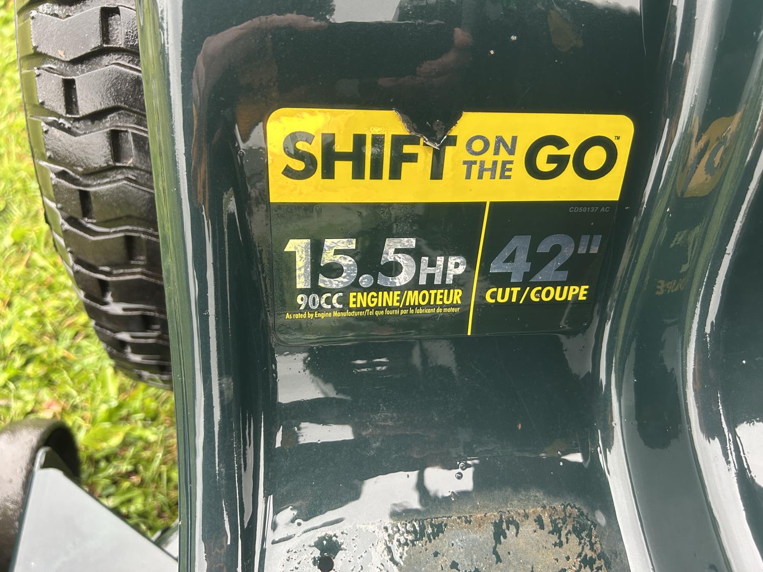 Shift on the go transmission, 15.5HP Tecumseh, 42 inch deck