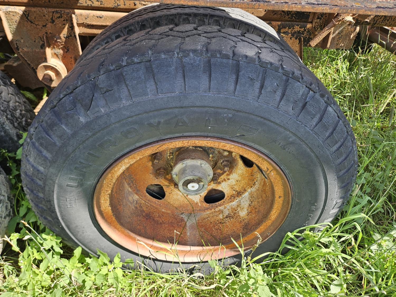 96 inch wide deck, wood deck, stake pockets, cargo winches, Bale decks sold separately, spring suspension, 10.00-22 tires
