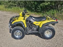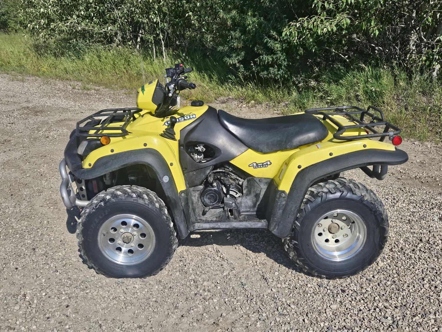 500 cc engine, manual transmission, Hi/Lo range, reverse, hitch, front and rear racks, front winch