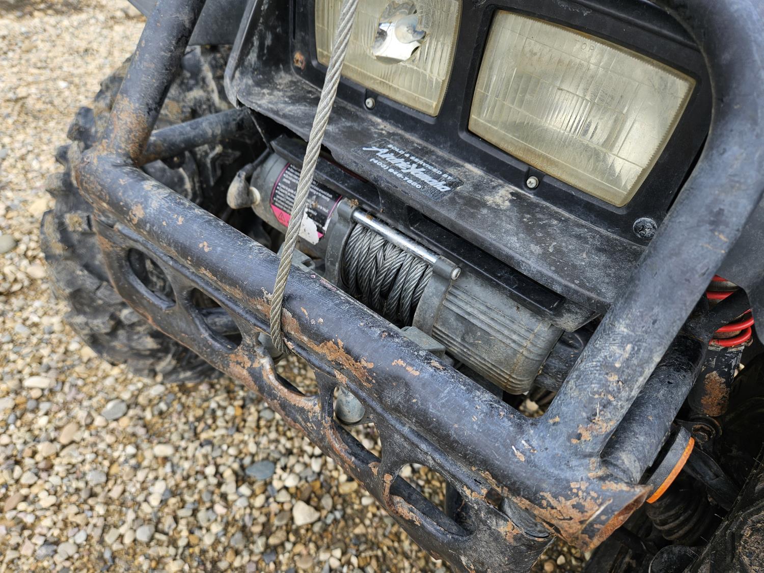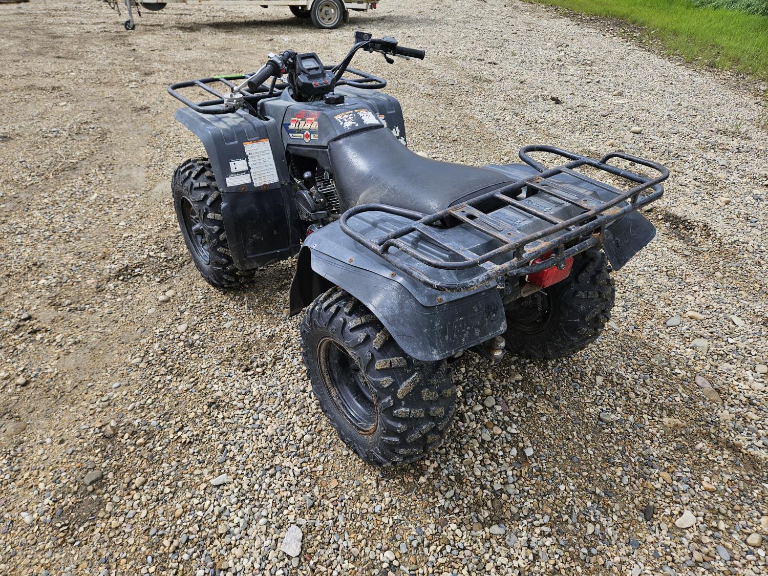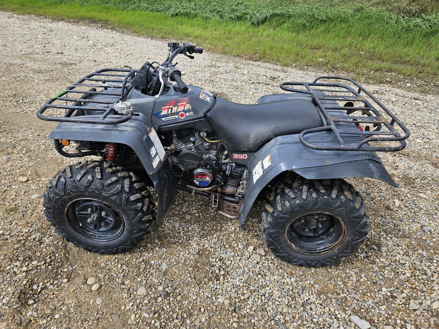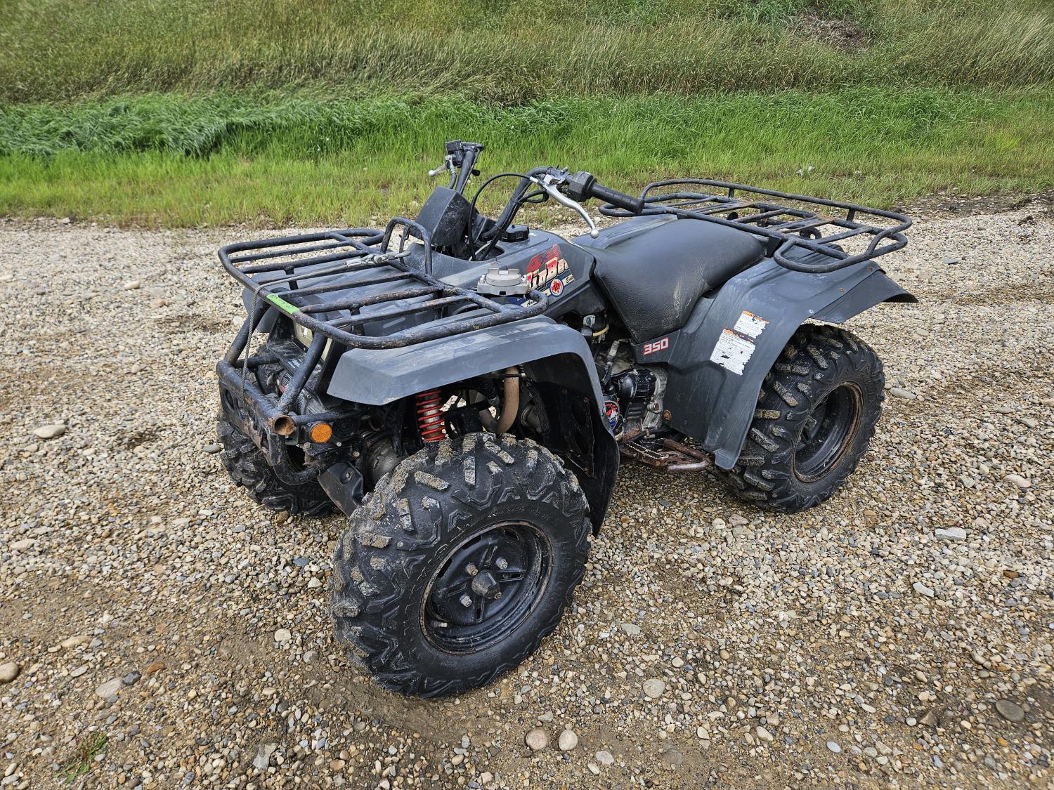 350 cc engine, manual transmission, Hi/Lo range, reverse, hitch, front and rear racks, front winch, 25X8.00-12 front tires, 25X10.00-12 rear tires