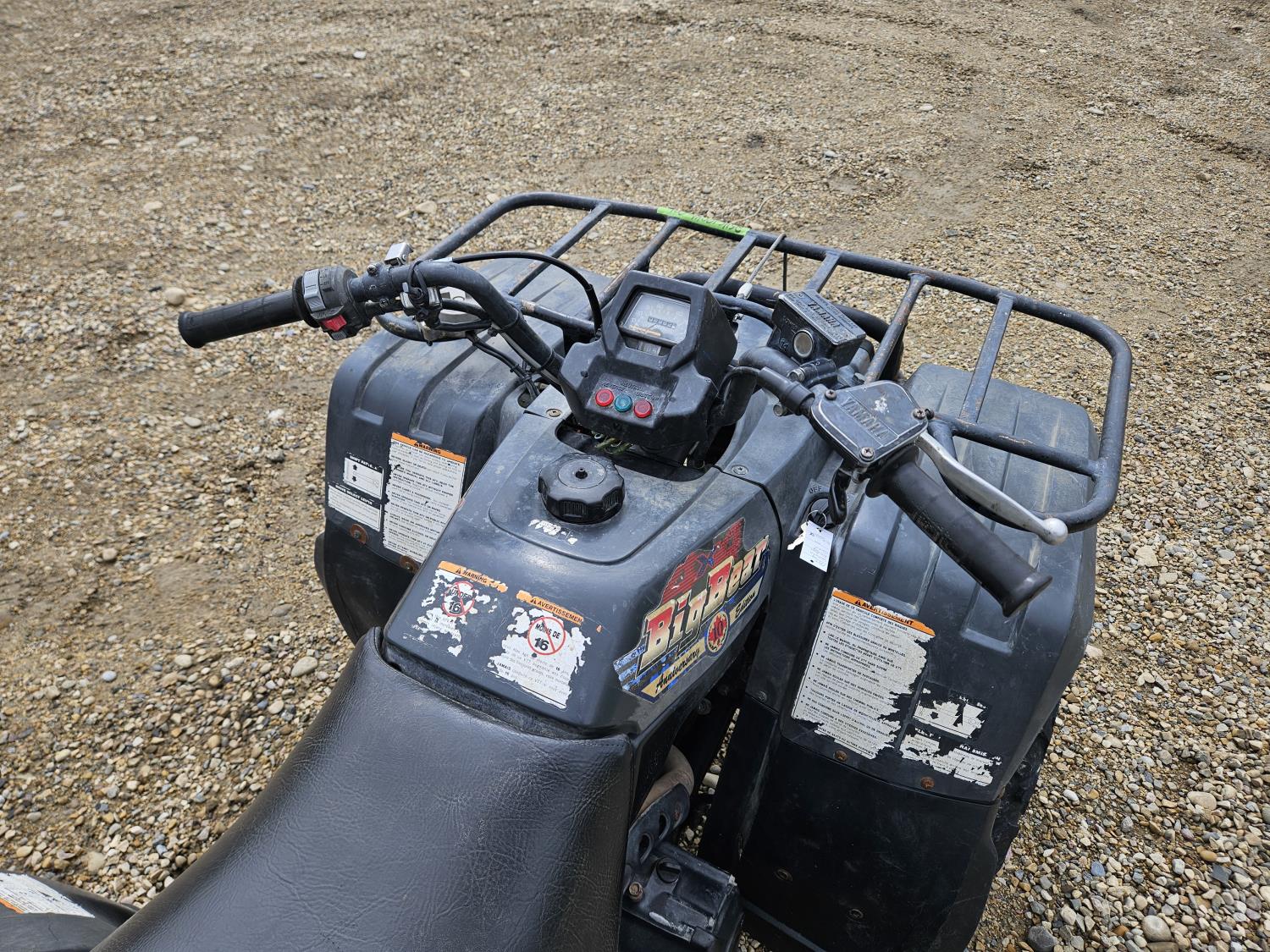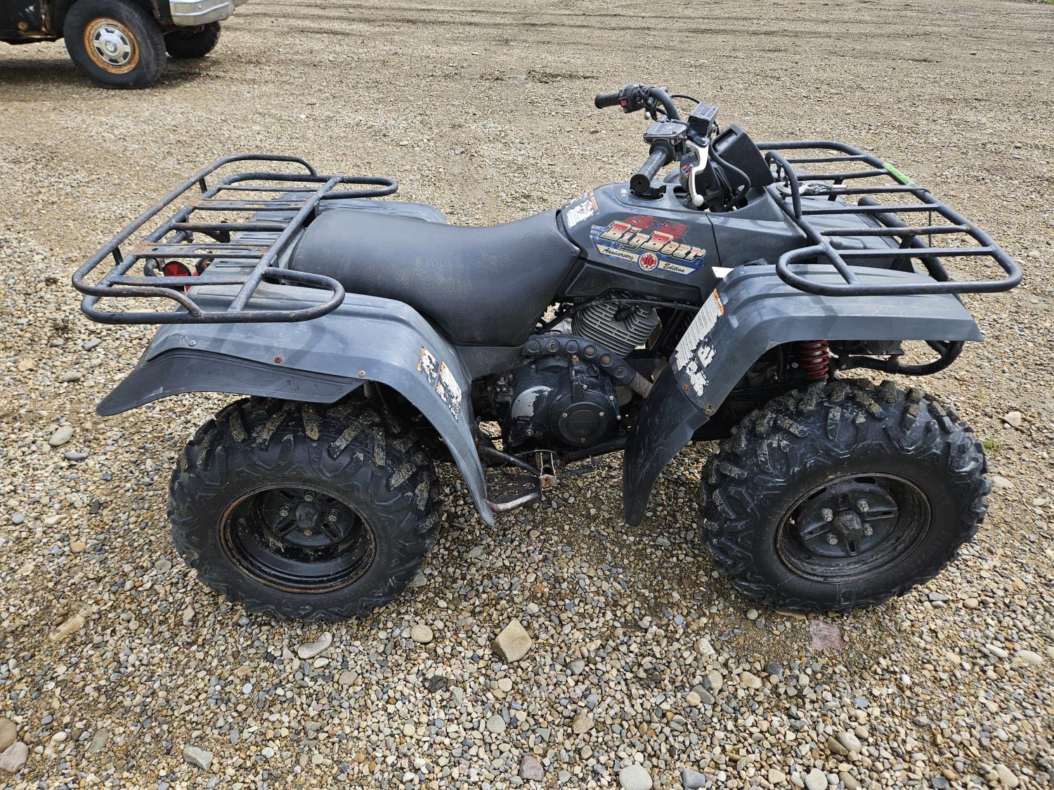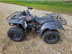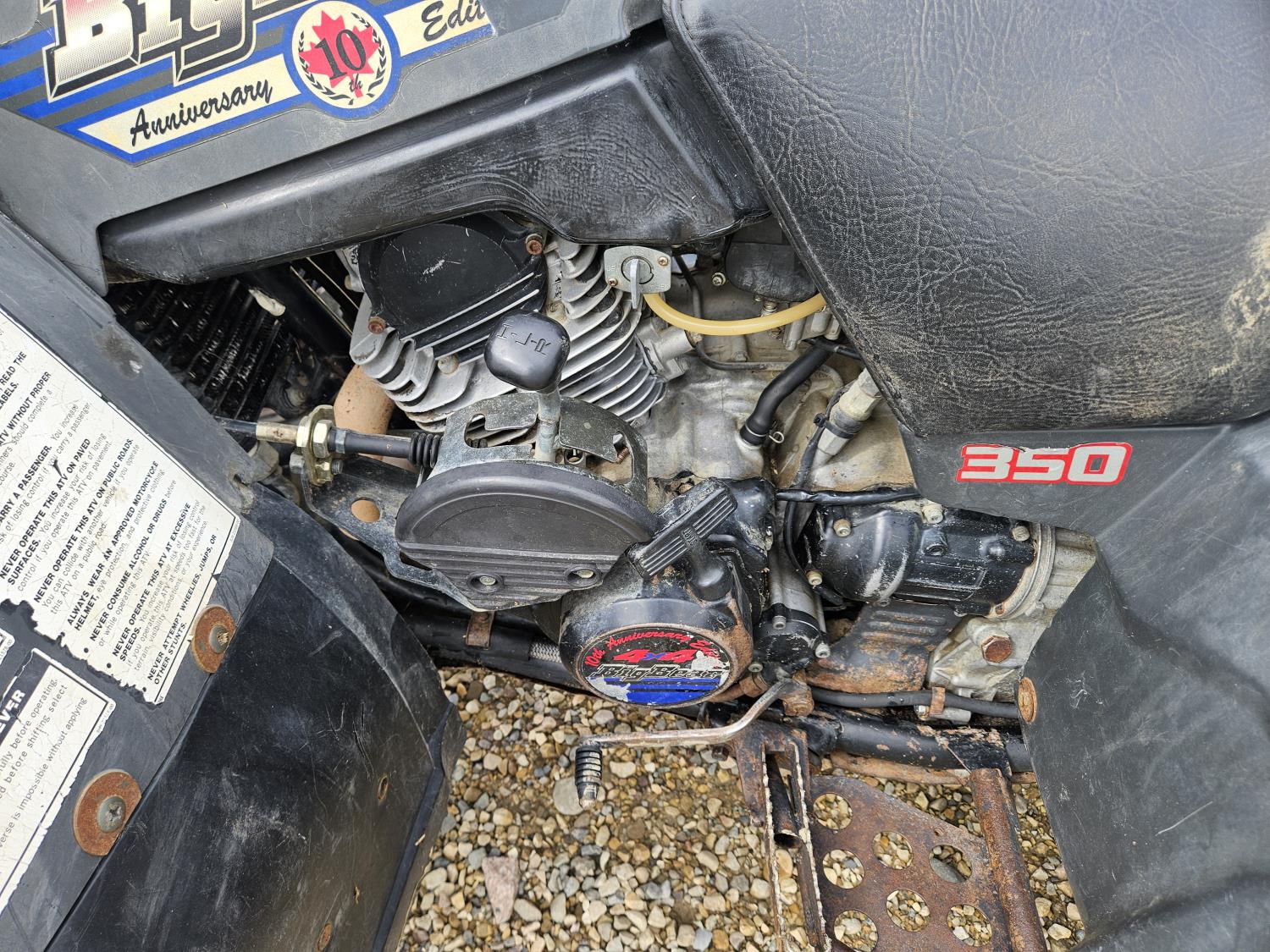 350 cc engine, manual transmission, Hi/Lo range, reverse, hitch, front and rear racks, front winch, 25X8.00-12 front tires, 25X10.00-12 rear tires