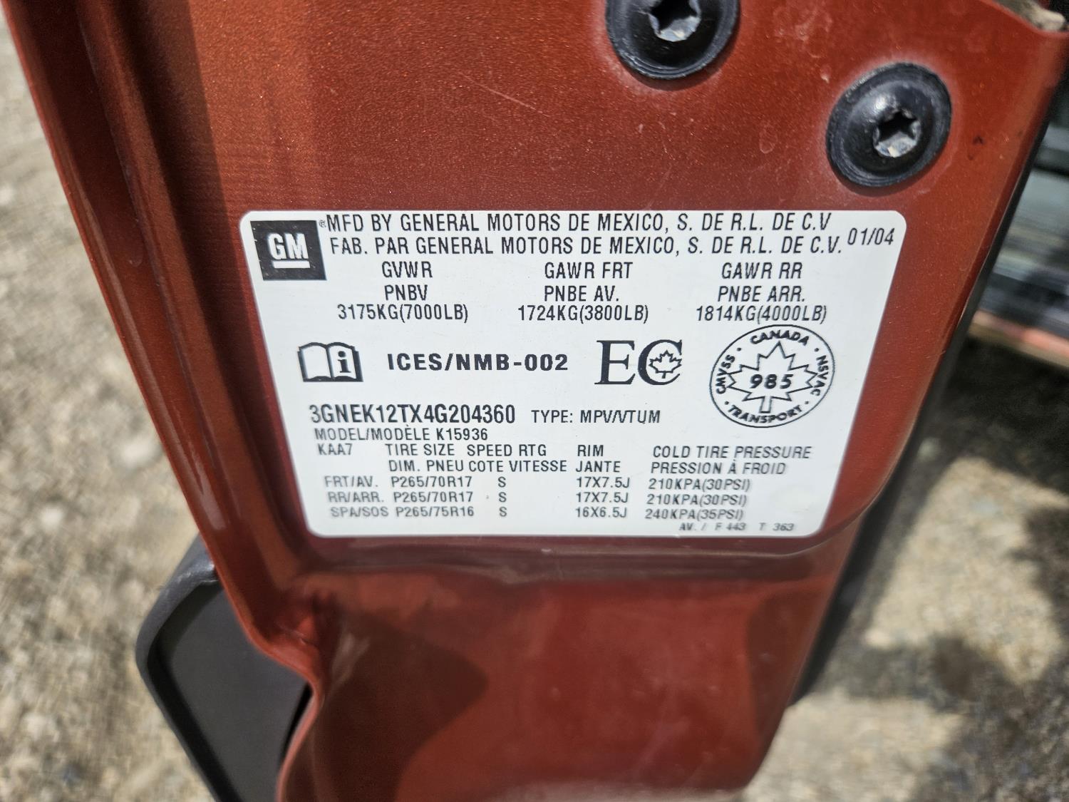 - 3GNEK12TX4G204360