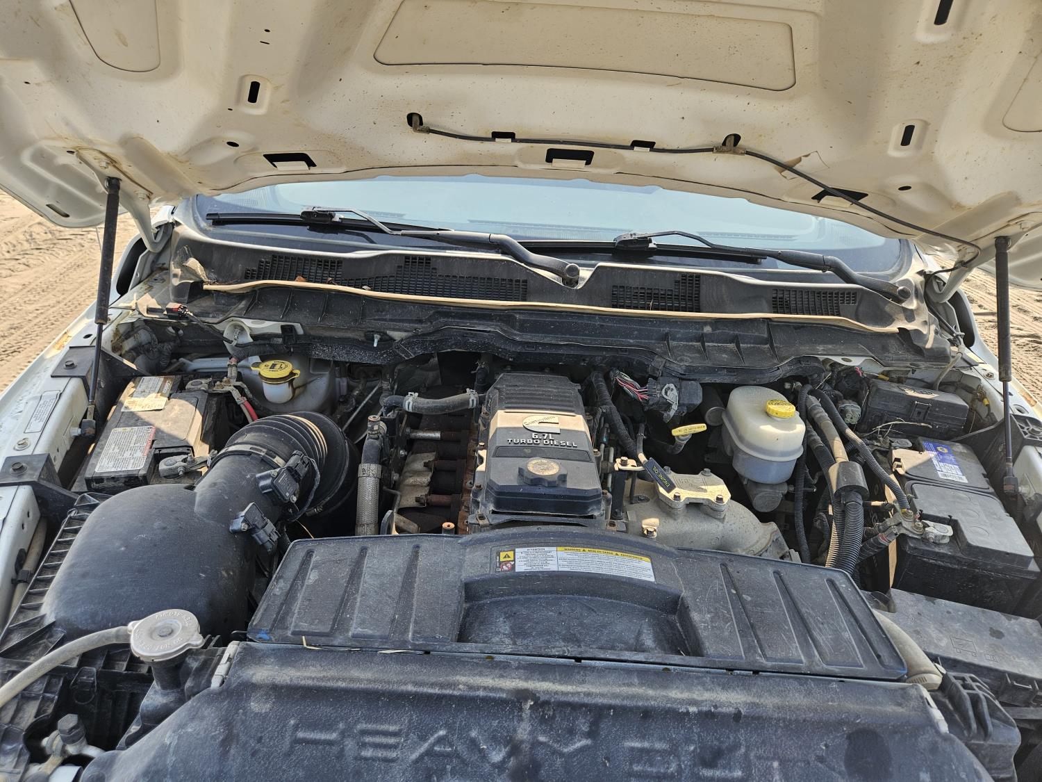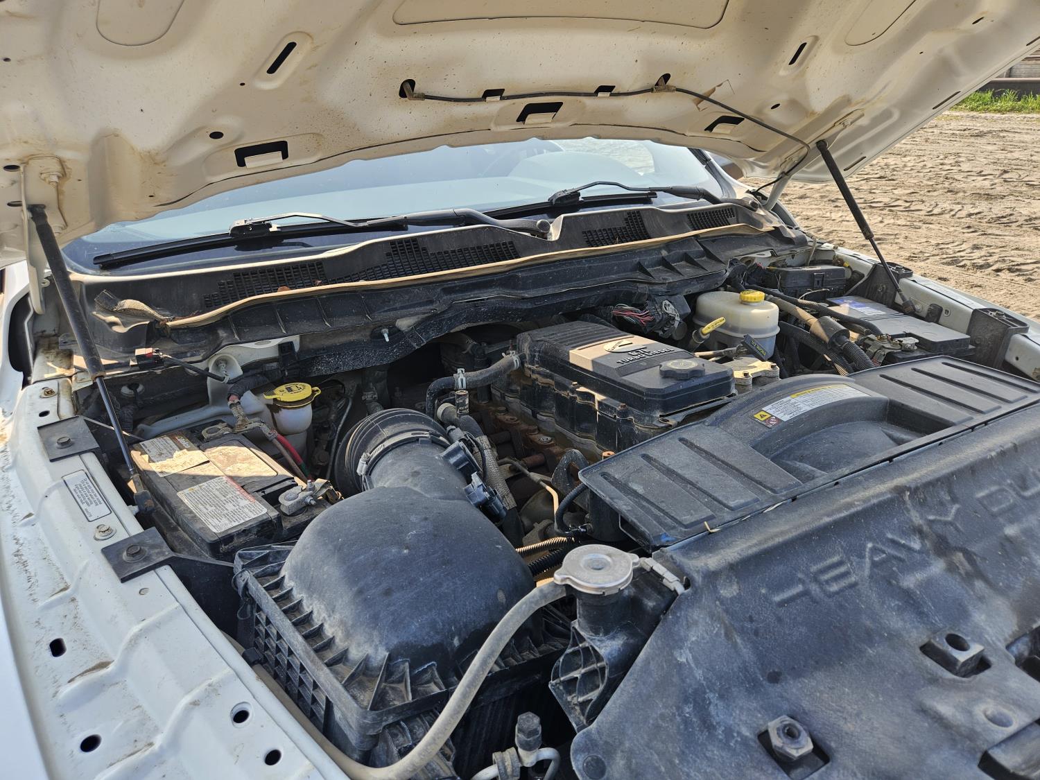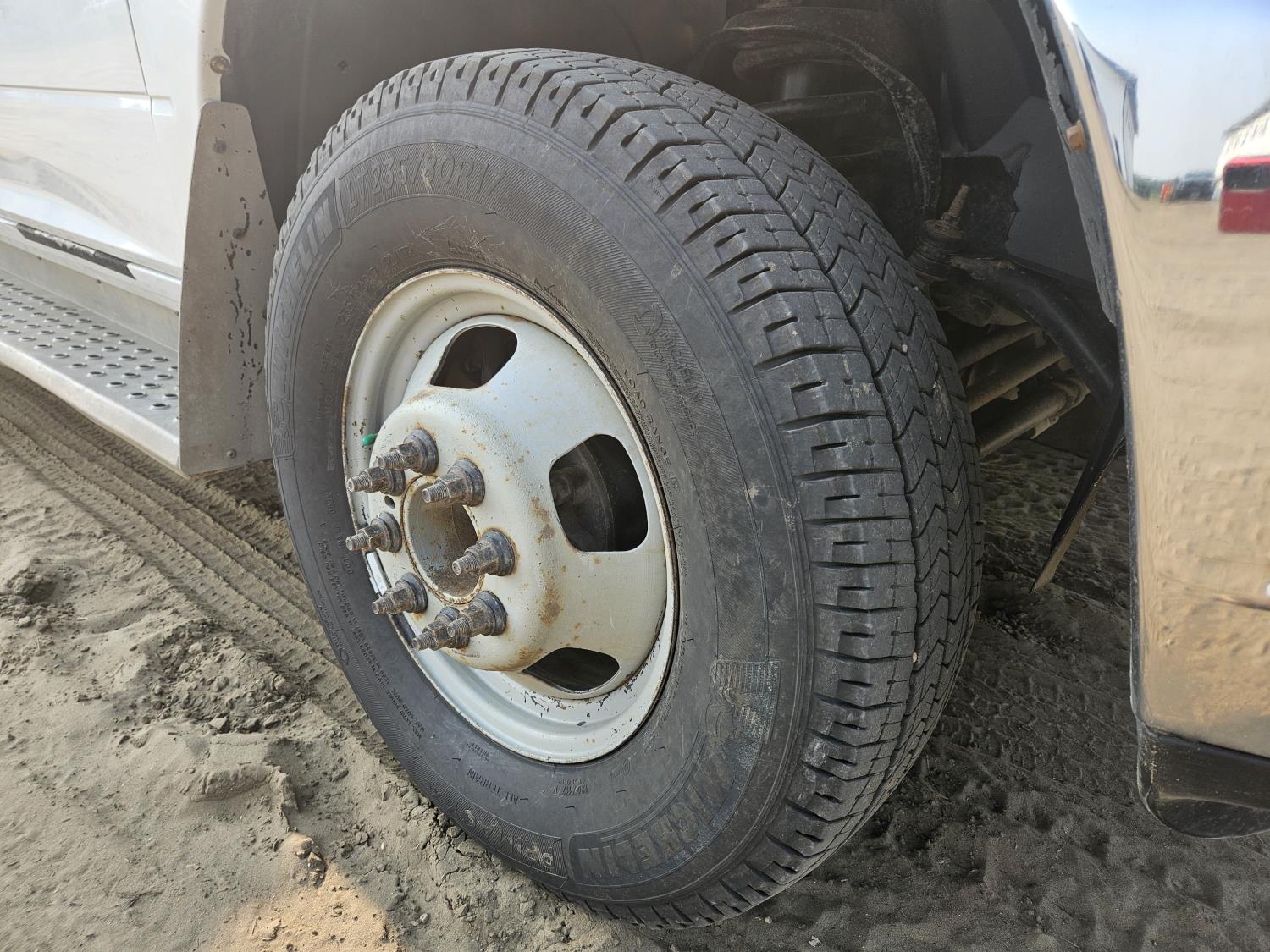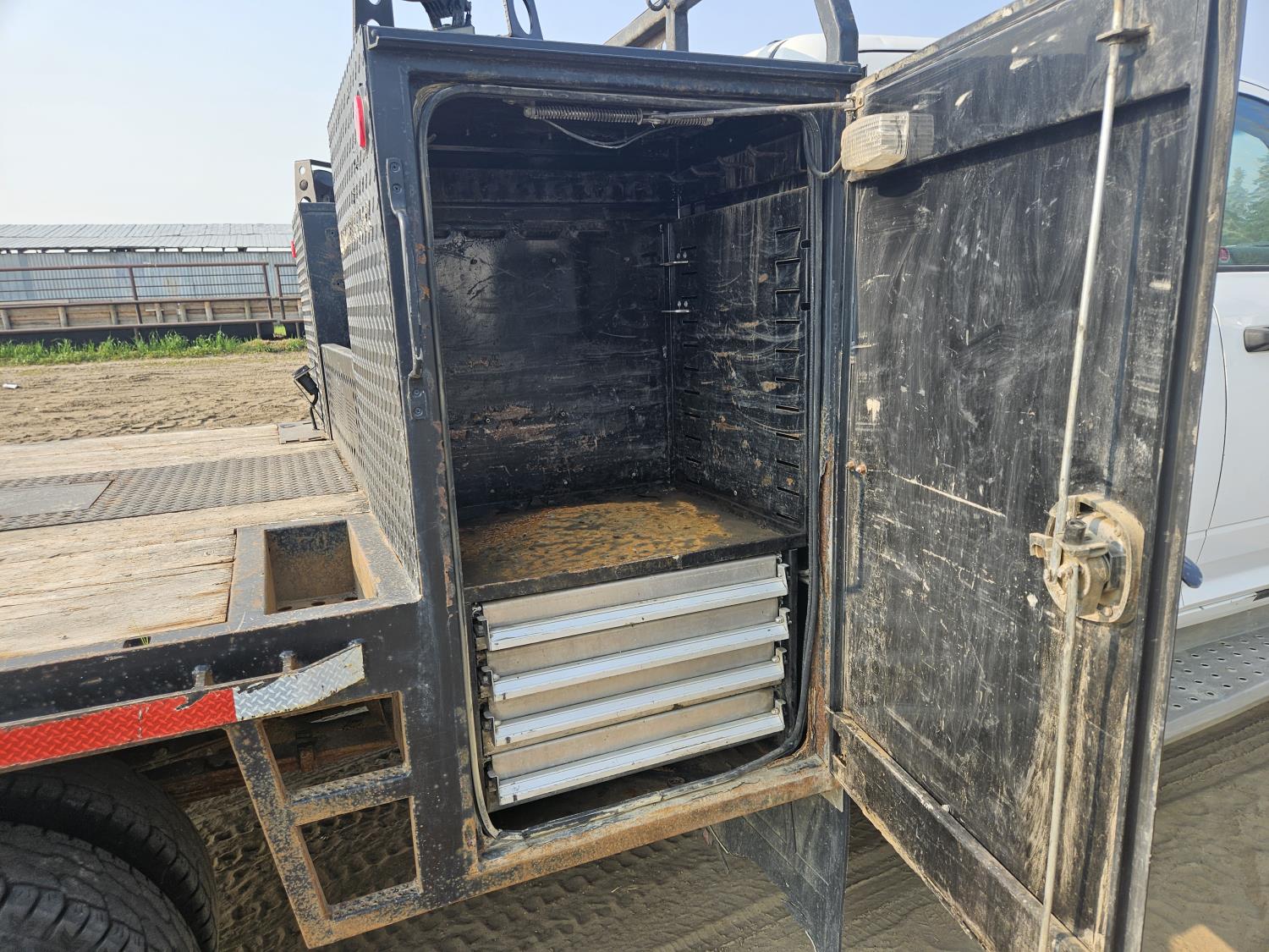 Cummins 6.7 L diesel engine, DEF deleted, engine brake, positive air shutoff, automatic transmission, A/C, P/L, cruise control, running boards, 5th wheel ball hitch, 29" x 24" x 48" steel tool boxes, 7 ft 10 inch x 6 ft 11 inch deck, Tow Tune, heated power mirrors, 235/80R17 tires