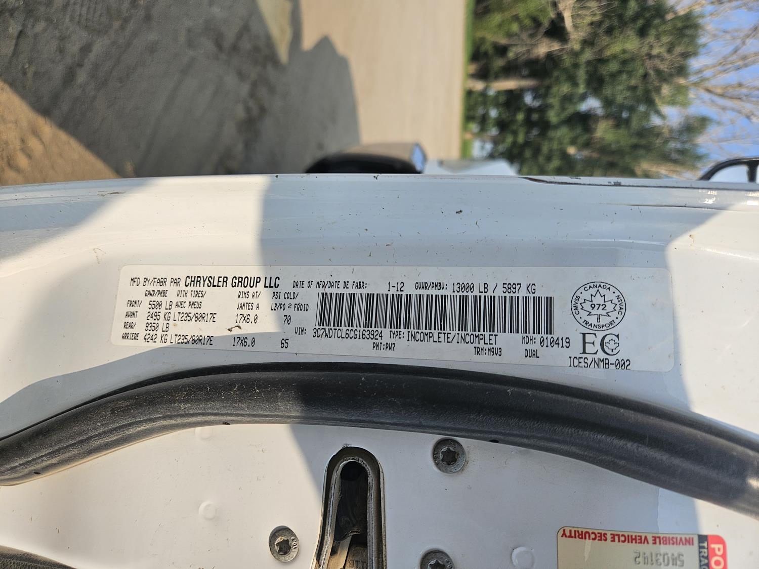 - 3C7WDTCL6CG163924