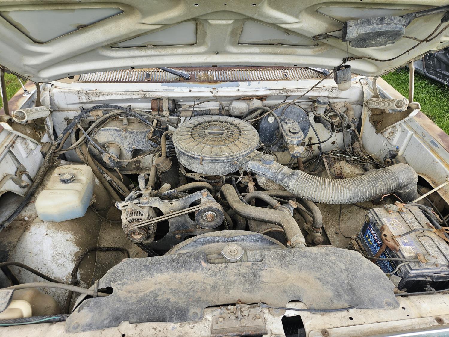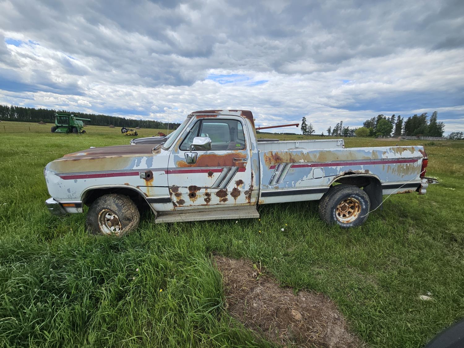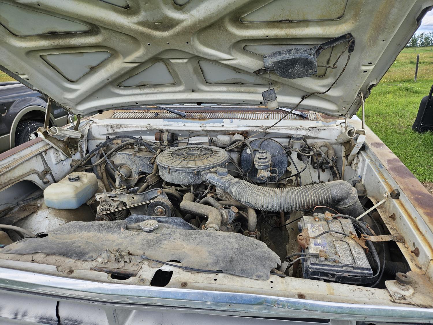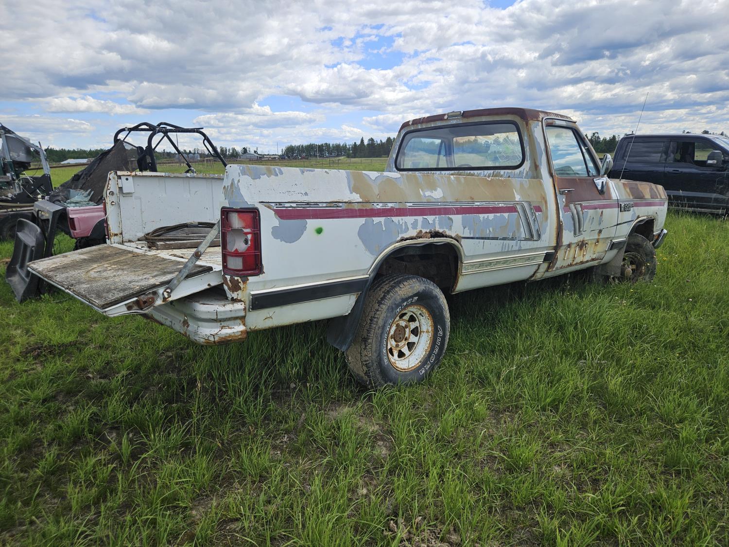 318 cu in, V8, gas, 4 speed manual transmission, 8 ft box, 31X10.5R15 tires