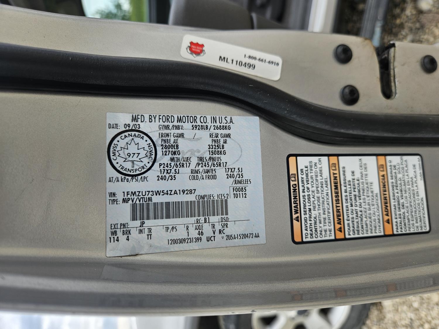 1FMZU73W54ZA19287
