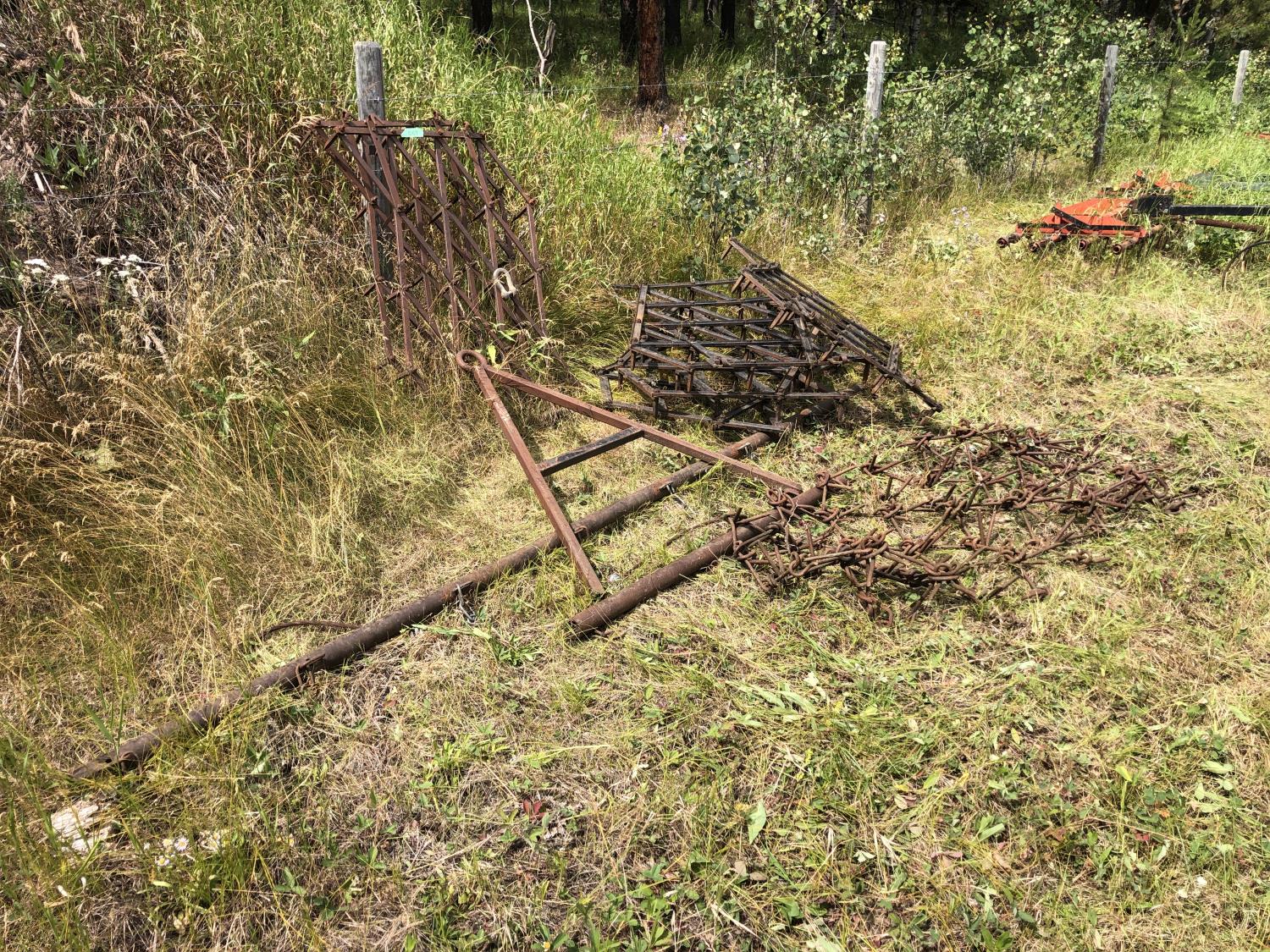 504 (6) Diamond Harrows & (1) Chain Harrow with Drawbar